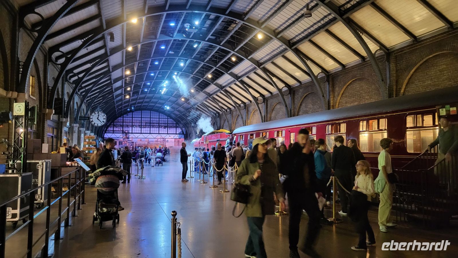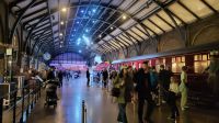 Nächster Halt ist der berühmte Bahnhof King's Cross. Natürlich darf ein Foto an der Barriere zu Gleis 9 ¾ nicht fehlen. Wir sehen auch, wie viele andere Fans sich für ein Bild mit dem Gepäckwagen anstellen, der scheinbar durch die Wand verschwindet – ein beliebter Fotospot!