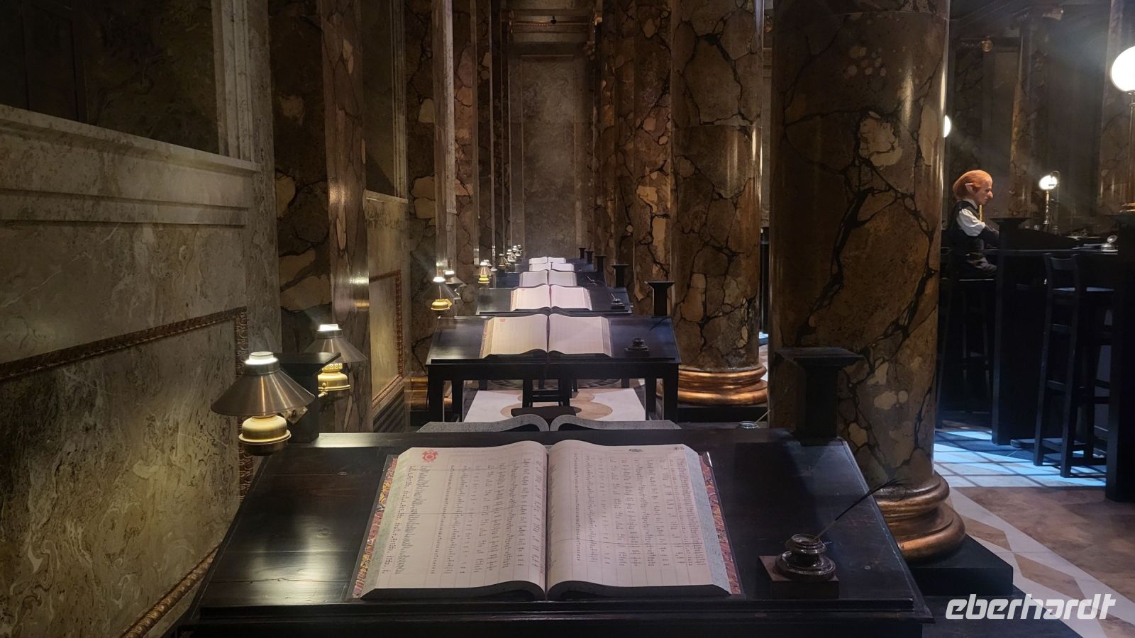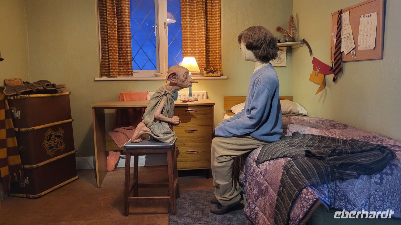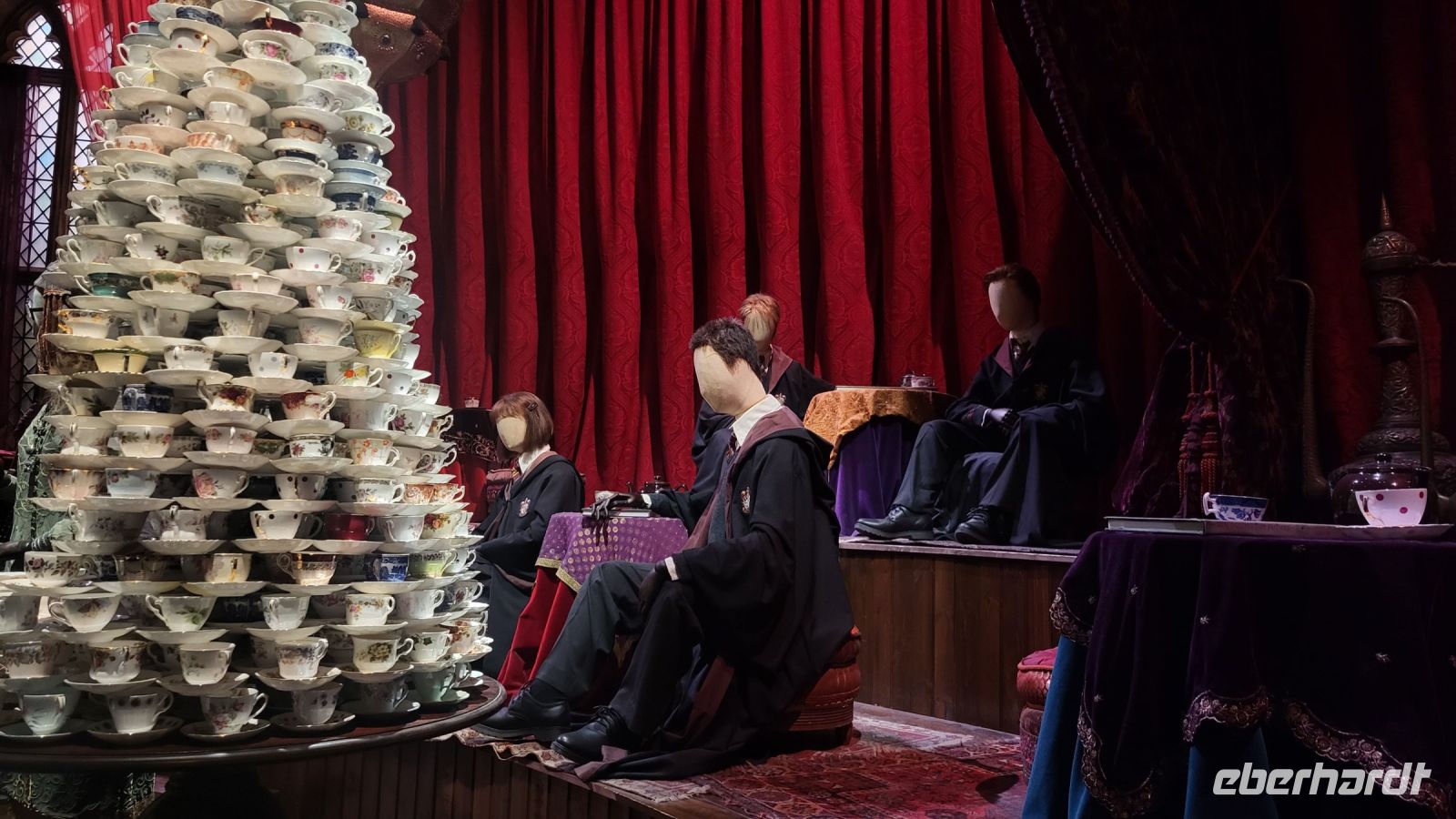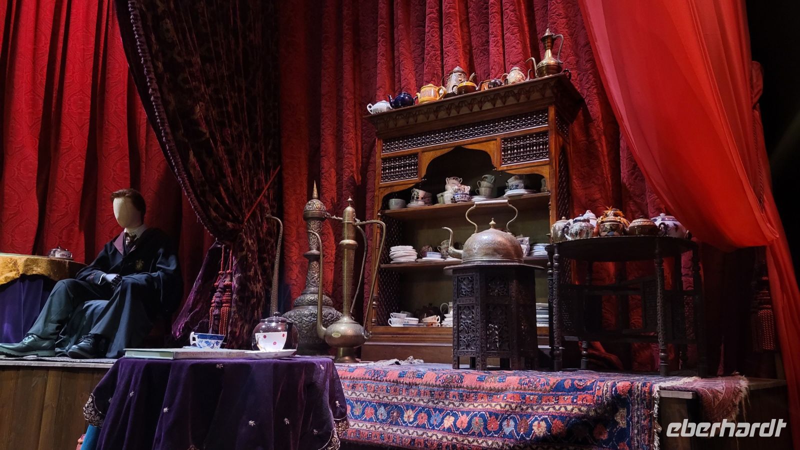 Drinnen erwarten uns unzählige Filmsets, Kostüme und Requisiten, die in den verschiedenen Harry Potter Filmen eine Rolle gespielt haben. Wir bestaunen die Großen Halle von Hogwarts, wandern durch die Winkelgasse und stehen mitten im Klassenzimmer für Verteidigung gegen die Dunklen Künste. Auch das düstere Set für den Wahrsageunterricht von Professor Trelawney lässt uns in Erinnerungen an die magischen Momente der Filme schwelgen.