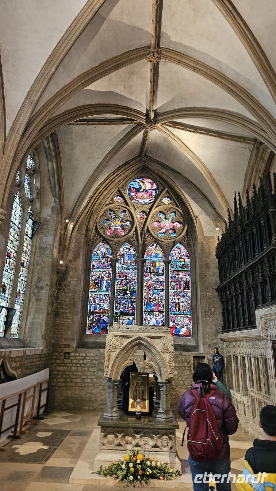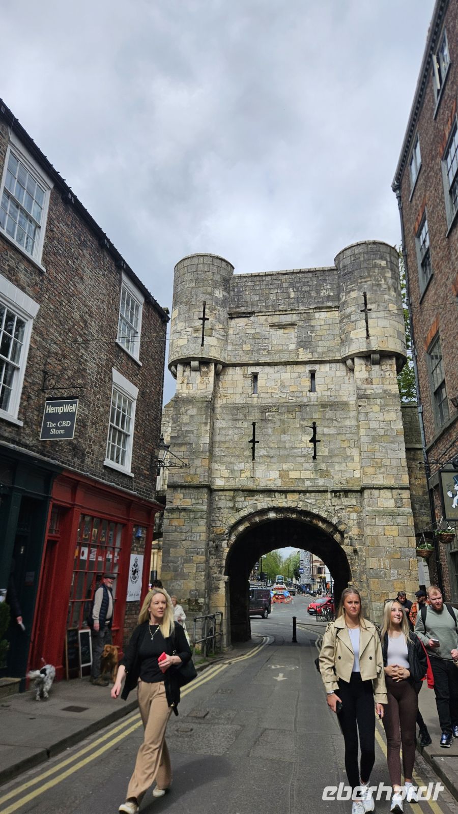 Unsere Fahrt geht heute weiter in Richtung Norden. In York erwartet uns unsere Stadtführerin Tess, mit einem wunderschönen Hut und Outfit. Mit ihr gehen wir gemeinsam zur Stadtmauer von York, vorbei am beeindruckenden Münster durch schöne Gassen, direkt zur Winkelgasse.