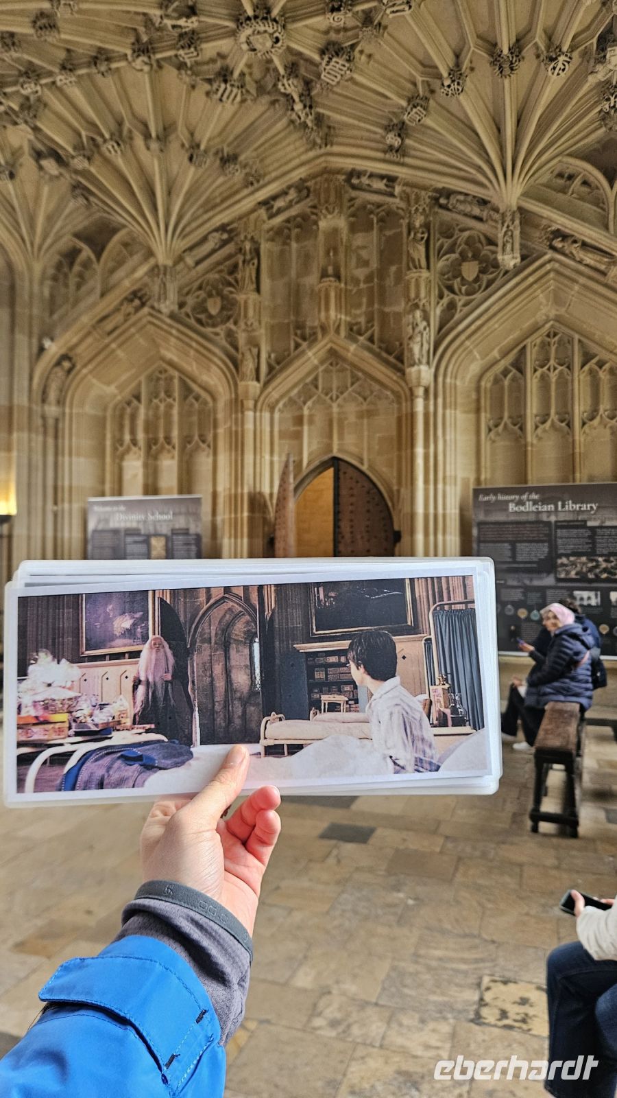 Mit vielen Informationen gehen wir in die wohlverdiente Mittagspause und wärmen uns in Cafés oder Restaurants etwas auf. Anschließend treffen wir uns alle noch einmal vor der Divinity School und der Duke Humfrey´s Library. Die Bibliothek diente auch als Drehort, ist aber leider nicht öffentlich zugänglich. Dafür gehen wir aber in die Divinity School, die als Drehort für den Krankenflügel und für die Tanzstunde verwendet wurde.