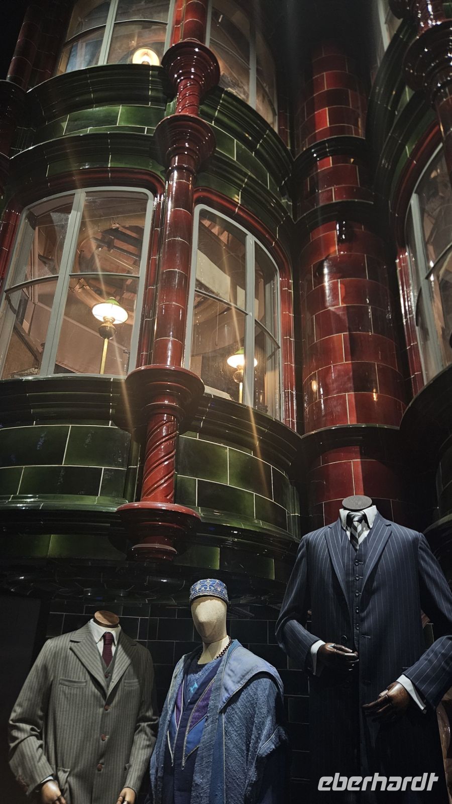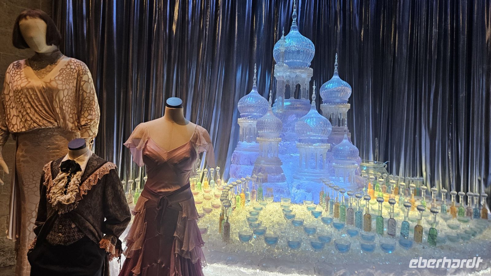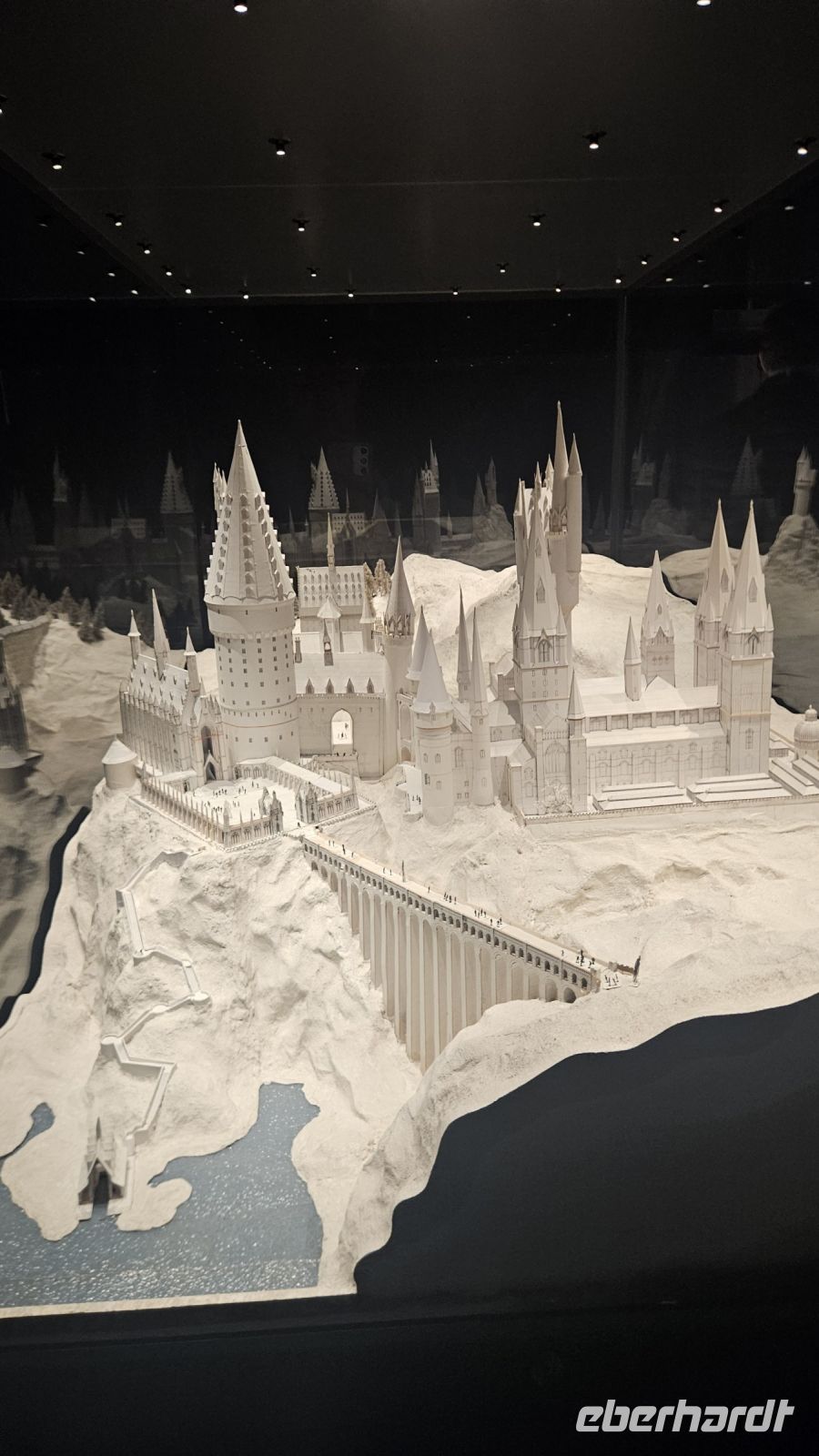 Danach geht es weiter in die zweite Halle, Halle K. Hier lernen wir viel über Maskendesign und allgemein alle Raffinessen hinter unseren geliebten Filmen. Außerdem faszinieren und die Sets von Gingrotts und der Winkelgasse. Schließlich kommen wir am riesigen Hogwarts Modell an und bestaunen es in seiner ganzen Pracht. Diesmal jedoch entzünden Fred und George ein Feuerwerk, was uns ein prächtiges Farbenspiel beschert.