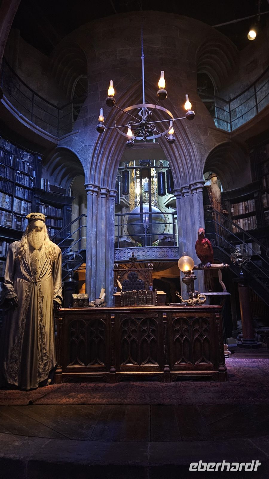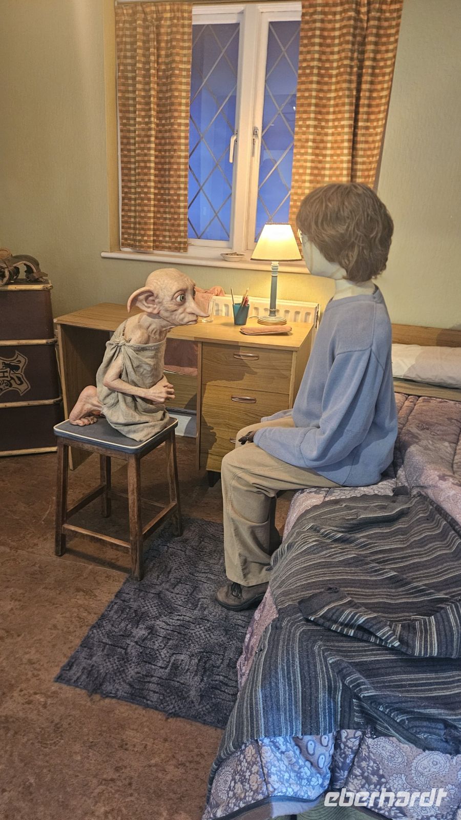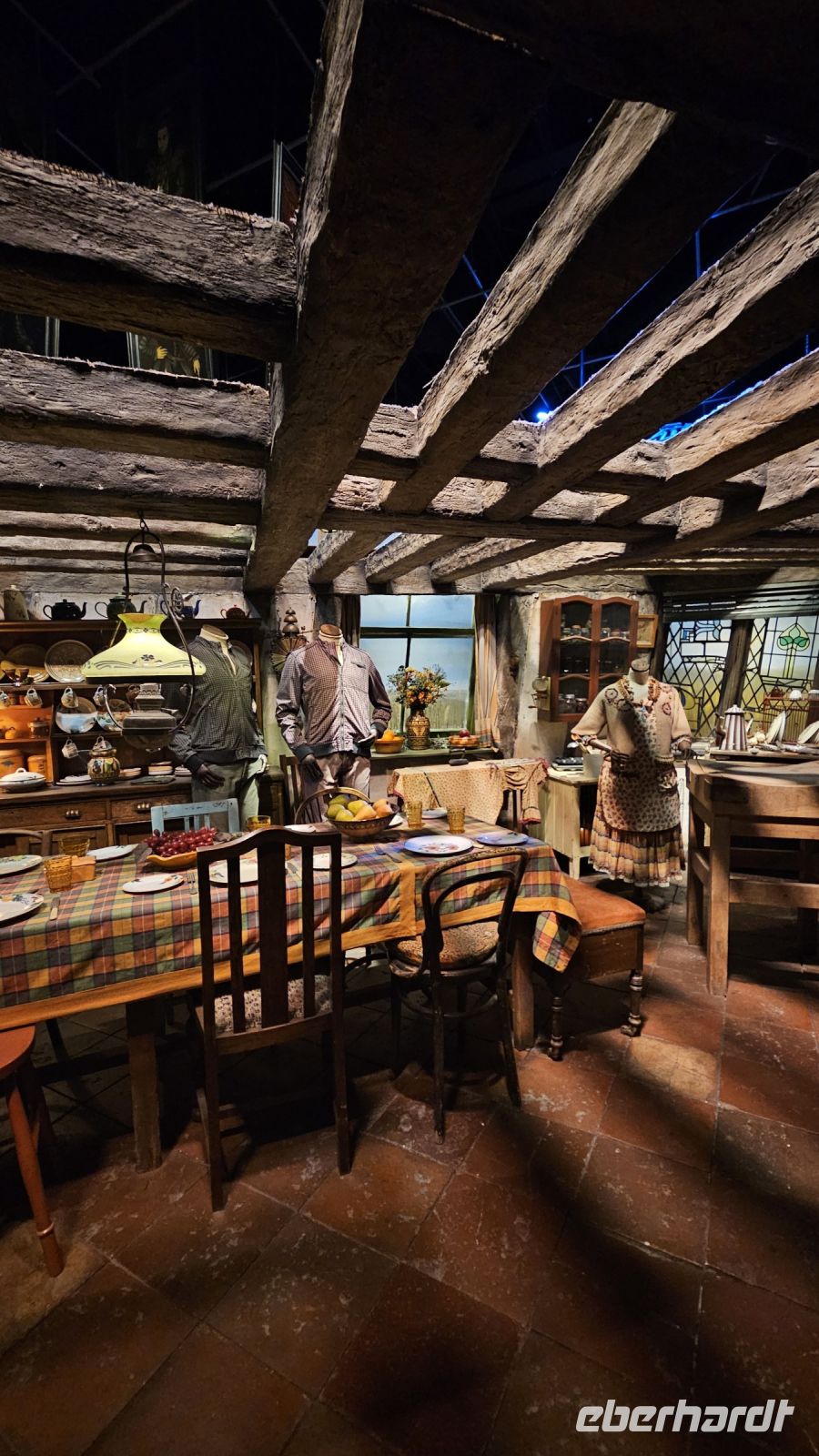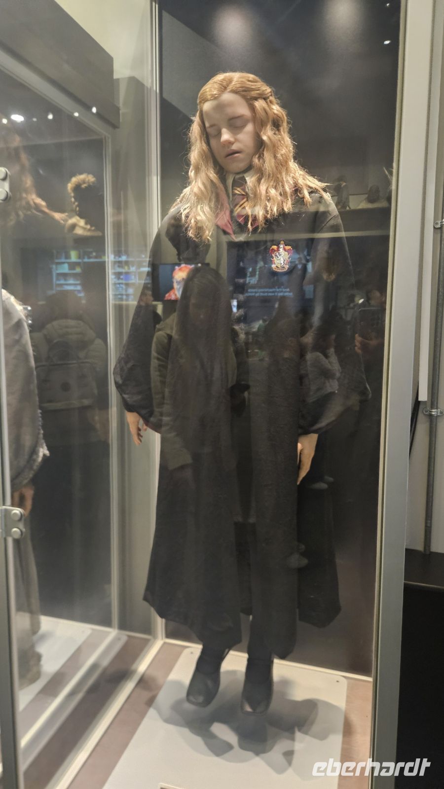 Danach geht es weiter in die zweite Halle, Halle K. Hier lernen wir viel über Maskendesign und allgemein alle Raffinessen hinter unseren geliebten Filmen. Außerdem faszinieren und die Sets von Gingrotts und der Winkelgasse. Schließlich kommen wir am riesigen Hogwarts Modell an und bestaunen es in seiner ganzen Pracht. Diesmal jedoch entzünden Fred und George ein Feuerwerk, was uns ein prächtiges Farbenspiel beschert.