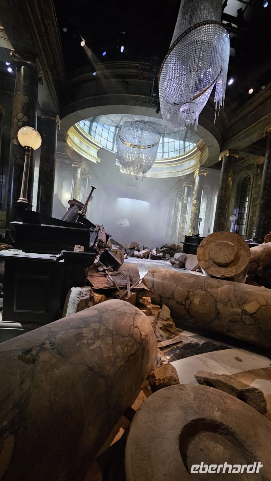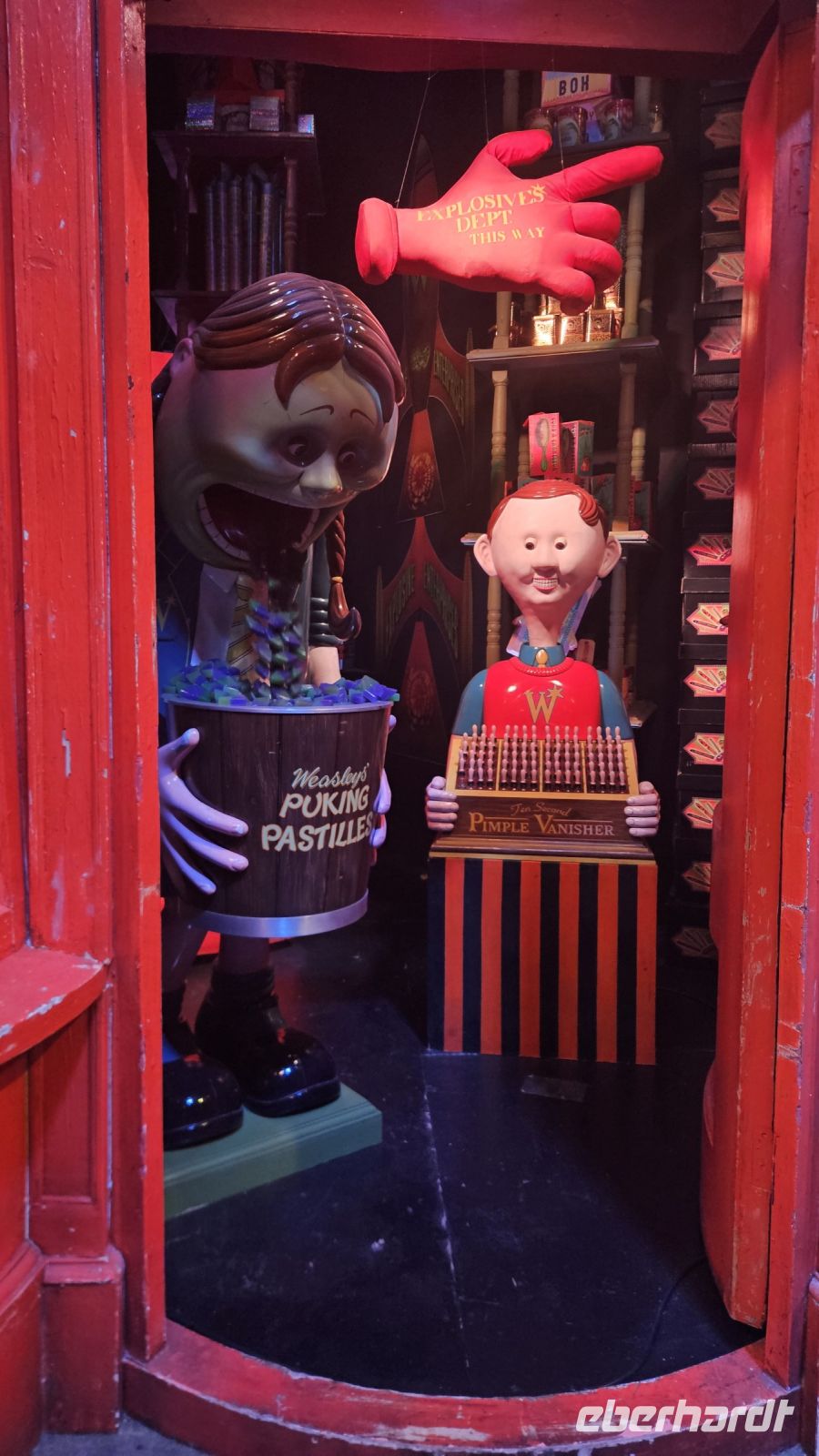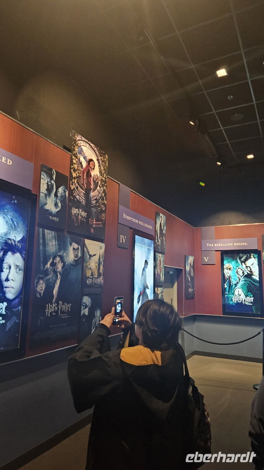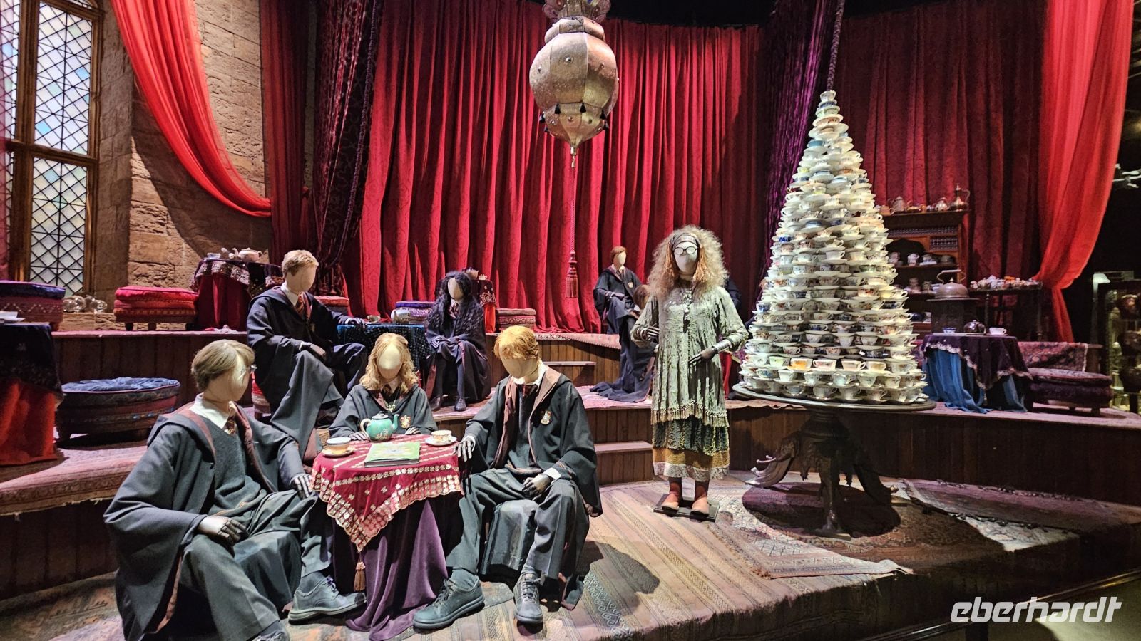 Nach einer kleinen Kinovorstellung werden wir emotional bei unserem Eintritt in die große Halle! Diese ist größer als wir uns vorgestellt haben. Gerade findet die Sonderausstellung "Magical Mischief" statt und wir werden begrüßt von Dolores Umbridge, den Weasley Zwillingen und einem großen Feuerwerk.