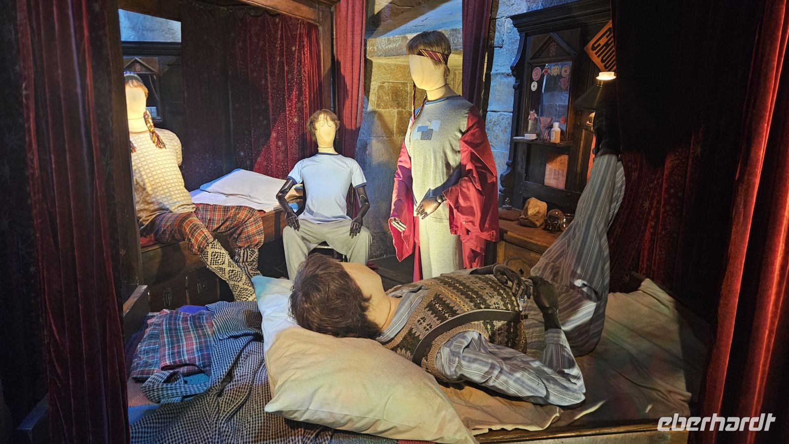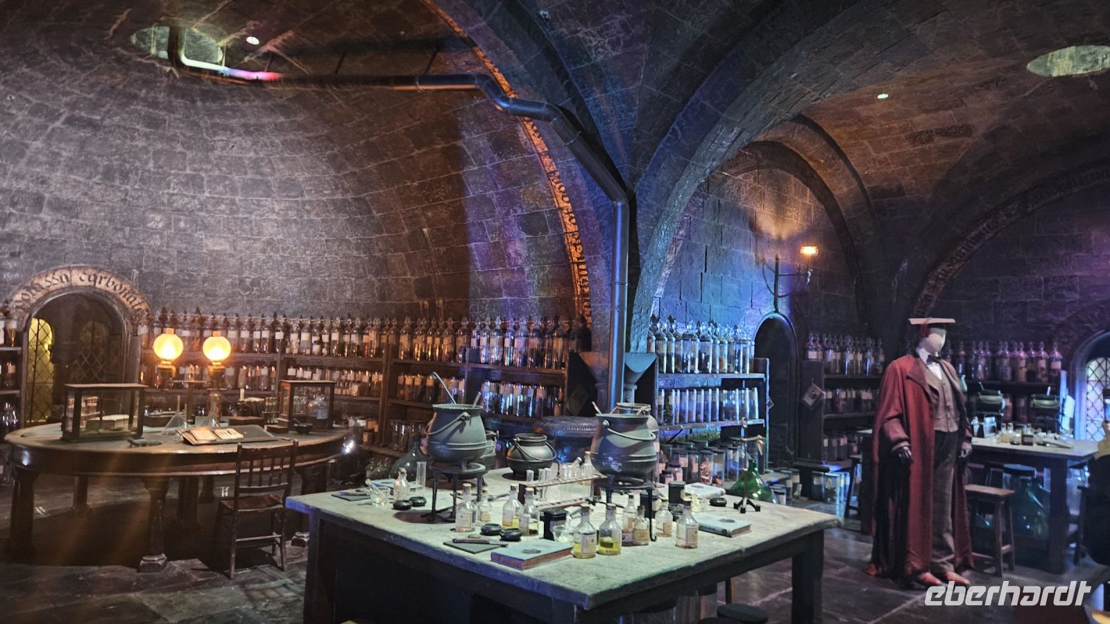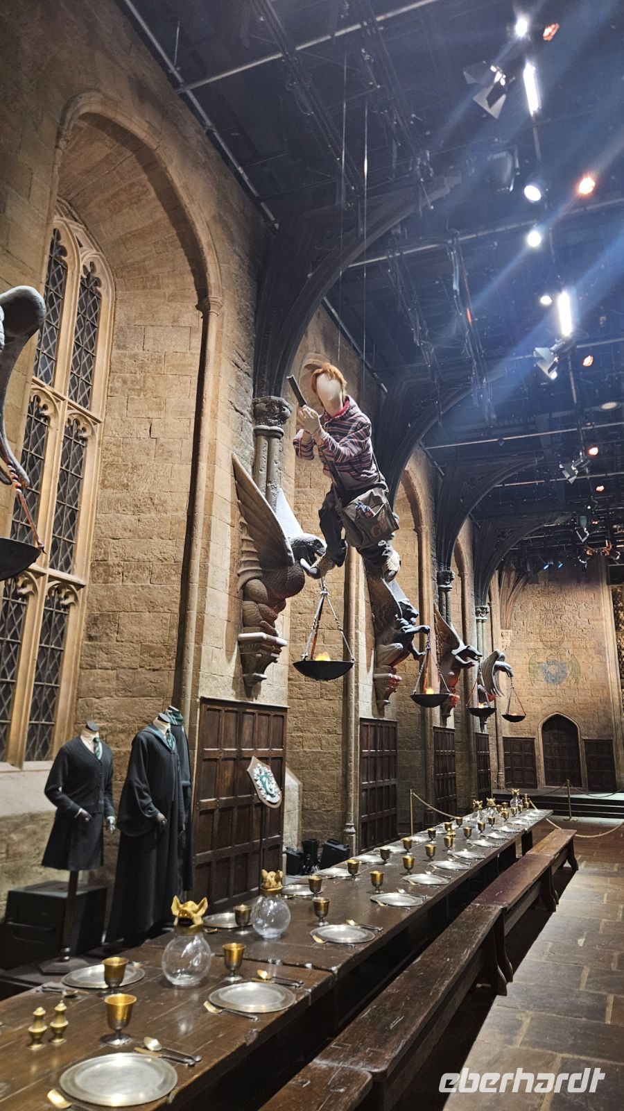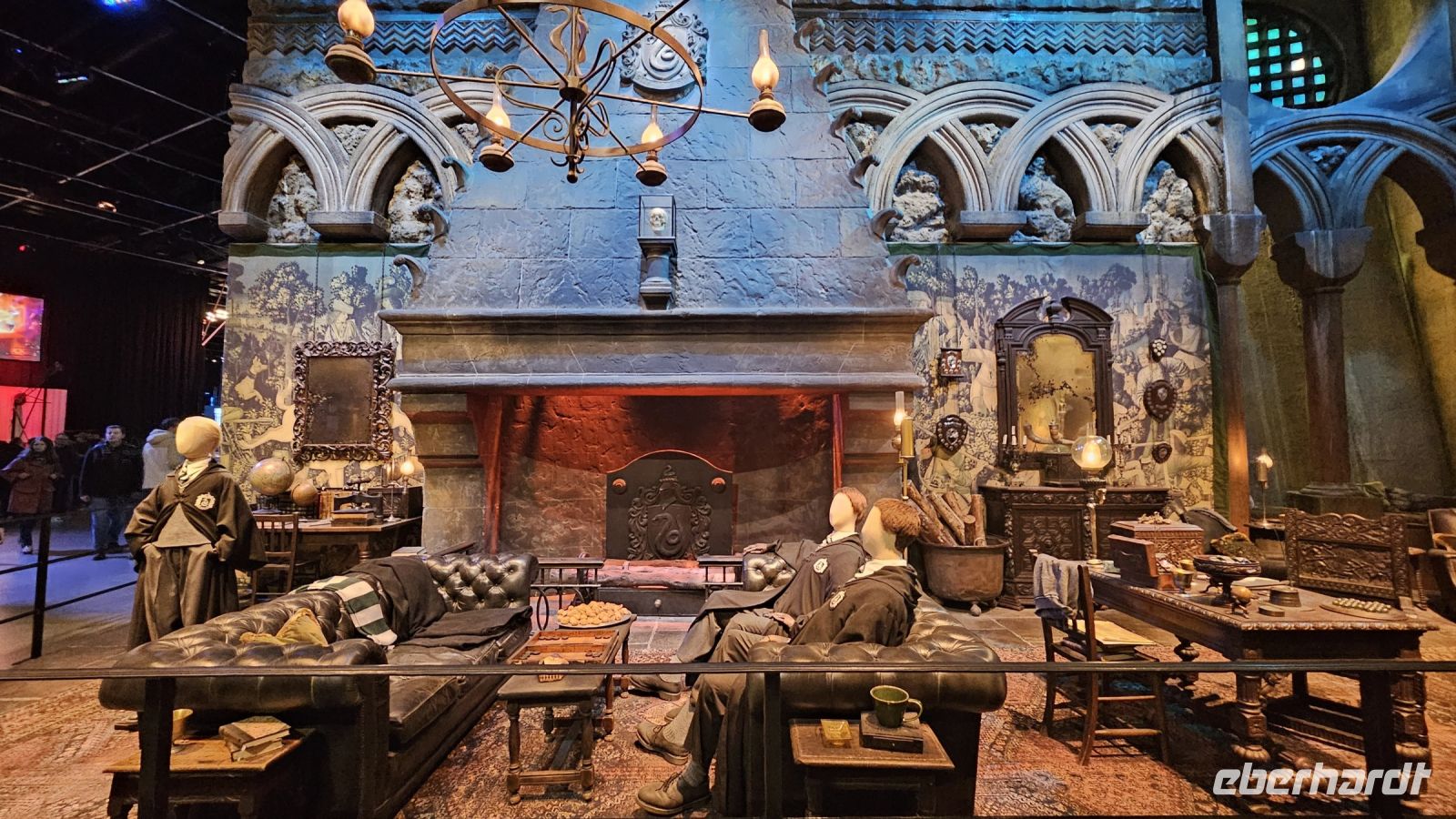 Die Halle 1, Halle J, hält viele wunderschöne Requisiten und Sets für uns bereit. Ob das der Griffindor Gemeinschaftsraum, Snapes dunkles Klassenzimmer, der Hogwarts Express oder einfach die verschiedenen Kostüme der Darsteller. Einige von uns fliegen auch auf Besen über das Quidditch Feld oder schauen sich Vorstellungen über die verwendeten Spezialeffekte an.