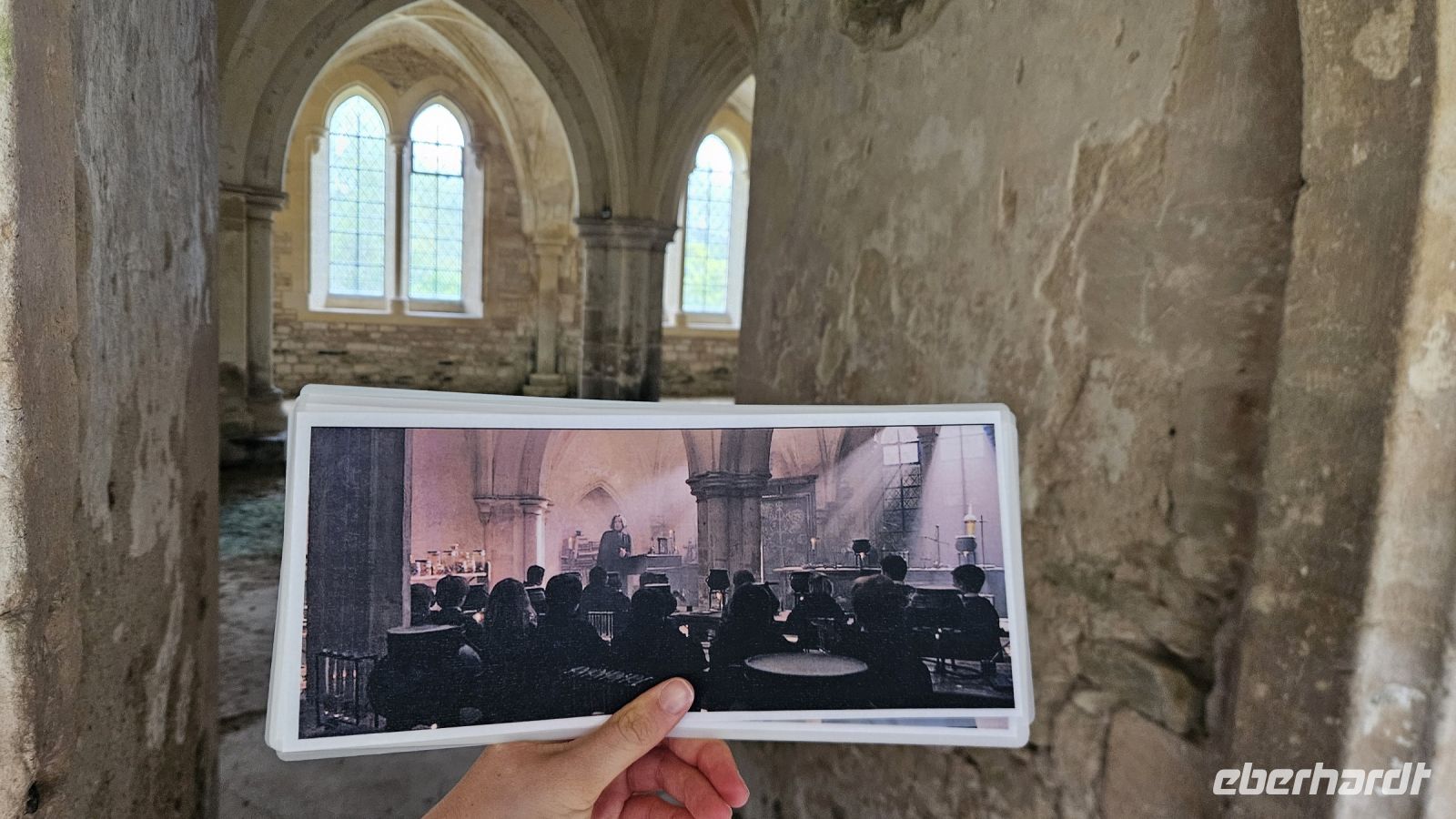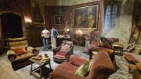 Angekommen machen wir einen Spaziergang durch das schöne englische Dorf und gehen vorbei am Haus von Professor Slughorn und dem Haus der Potters. Vorbei an verschiedenen kleinen Läden und Harry Potter Pins, gehen wir zur Abtei von Lacock. Diese wurde für diverse Hogwarts Klassenzimmer verwendet. Die Szene in der Professor McGonagall Oliver Wood aus Professor Quirrels Klassenzimmer holt, um ihn den neuen Gryffindor Sucher vorzustellen- hier gedreht. Zudem steht Harry hier vor dem Spiegel „Nerhegeb“ und das Klassenzimmer von Professor Snapes war wiederum in einem anderen Raum. Auch in „Phantastische Tierwesen“ wurde die Abtei erneut verwendet, unter anderem für Außenansichten. Hier lachen wir über die Tricksereien der Filmemacher, denn um uns herum sind definitiv nicht die schottischen Highlands, sondern nur das flache England.