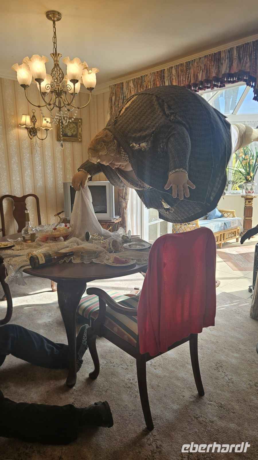 Auch wir lernen heute das Fliegen. Mit der Hilfe von zwei Professoren lernen wir, wie man richtig auf den Besen aufsteigt und die notwendigen Geräusche, damit der Besen überhaupt fliegt. Mit viel Gelächter und hohem körperlichen Einsatz, bestehen wir alle unsere erste Flugstunde.