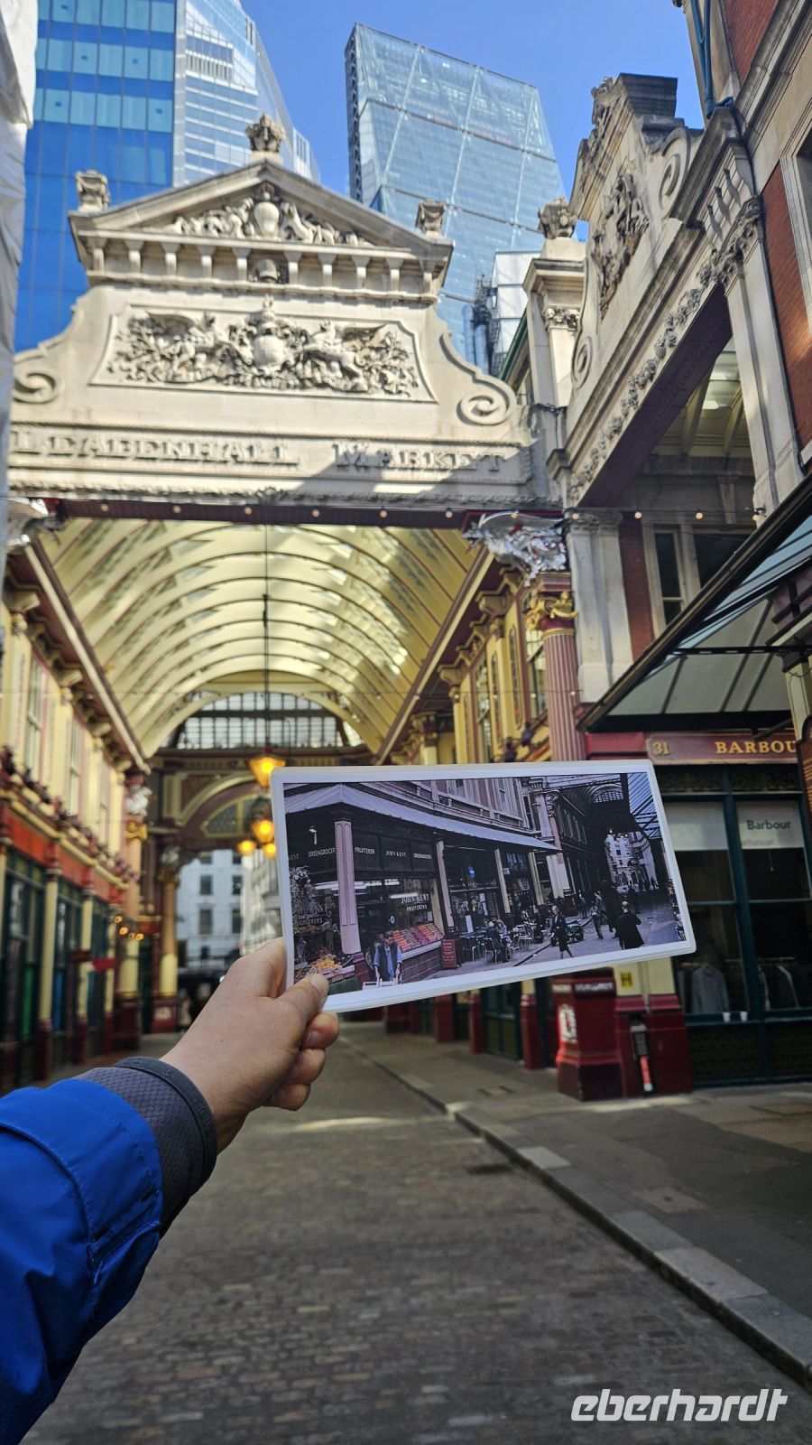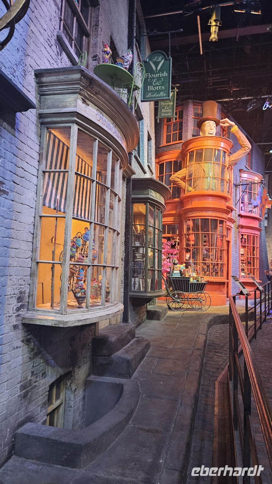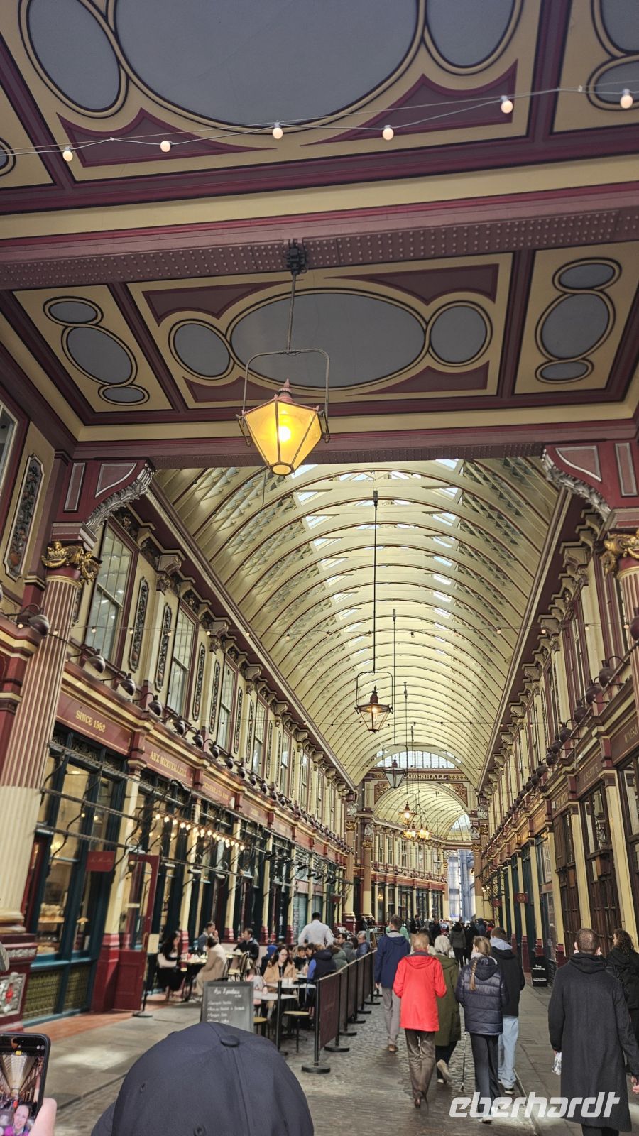 Weiter geht es für uns zum Leadenhall Market- oder anders gesagt: dem Eingang zur Winkelgasse. Wir durchlaufen die prunkvollen Hallen, durch die auch Hagrid und Harry im ersten Film gegangen sind und kommen zum Eingang der Winkelgasse. Hier versperrt uns leider eine andere Gruppe etwas die Sicht, aber wir sehen diesen typischen halbrunden Eingang, auch wenn die Farbe natürlich ganz anders ist als in den Filmen.