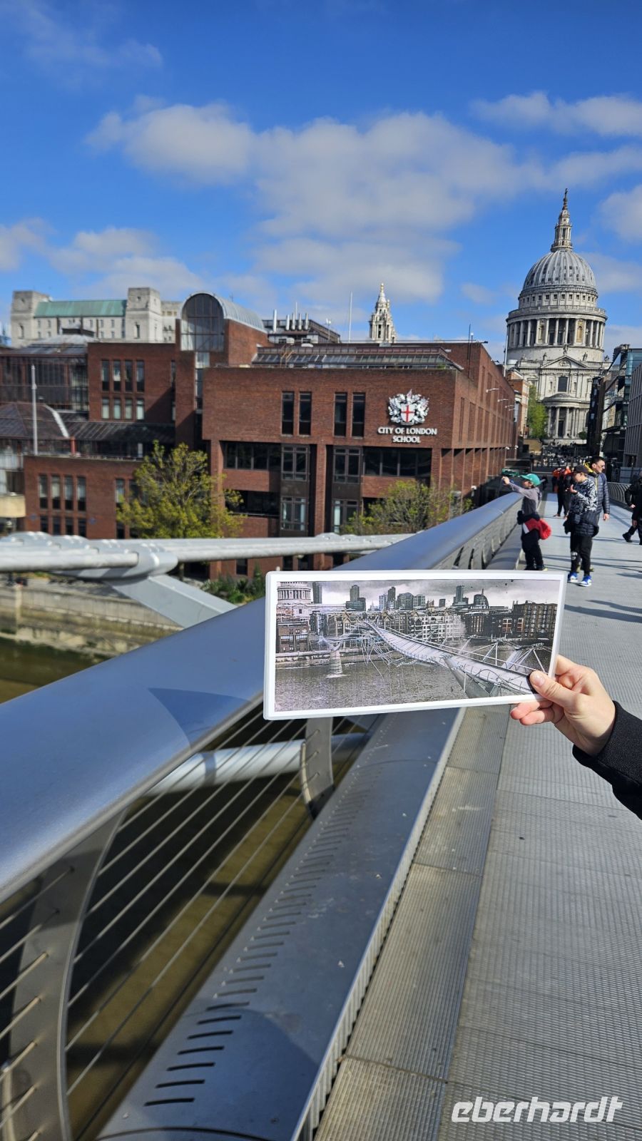 Schnell finden wir auch alle anderen Gäste und begrüßen unsere heutige Stadtführerin Ulla. Nun vereint, fahren wir zur „Wackelbrücke“, die mittlerweile eigentlich gar nicht mehr wackelt. Zum Glück steht die Millenium Bridge noch und wurde nicht von Todessern zerstört. Interessanterweise liegt diese Brücke an der Schule, auf der Daniel Radcliffe als Schüler war. Auf unserem Rückweg zum Bus bestaunen wir das imposante Bauwerk der St. Pauls Kathedrale, die auch Drehort der Harry Potter Filme war. Hier wurde tatsächlich der Aufgang zum Klassenzimmer von Professor Trelawney gedreht. Zum Glück müssen wir heute nicht aus Teeblättern unsere Zukunft herauslesen.