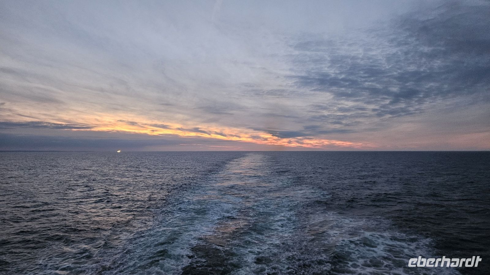 Mit einem leckeren Abendessen, zum Beispiel Fish& Chips, und einem schönen Sonnenuntergang beenden wir unseren ersten Reisetag mit voller Fahrt in Richtung Britische Inseln.