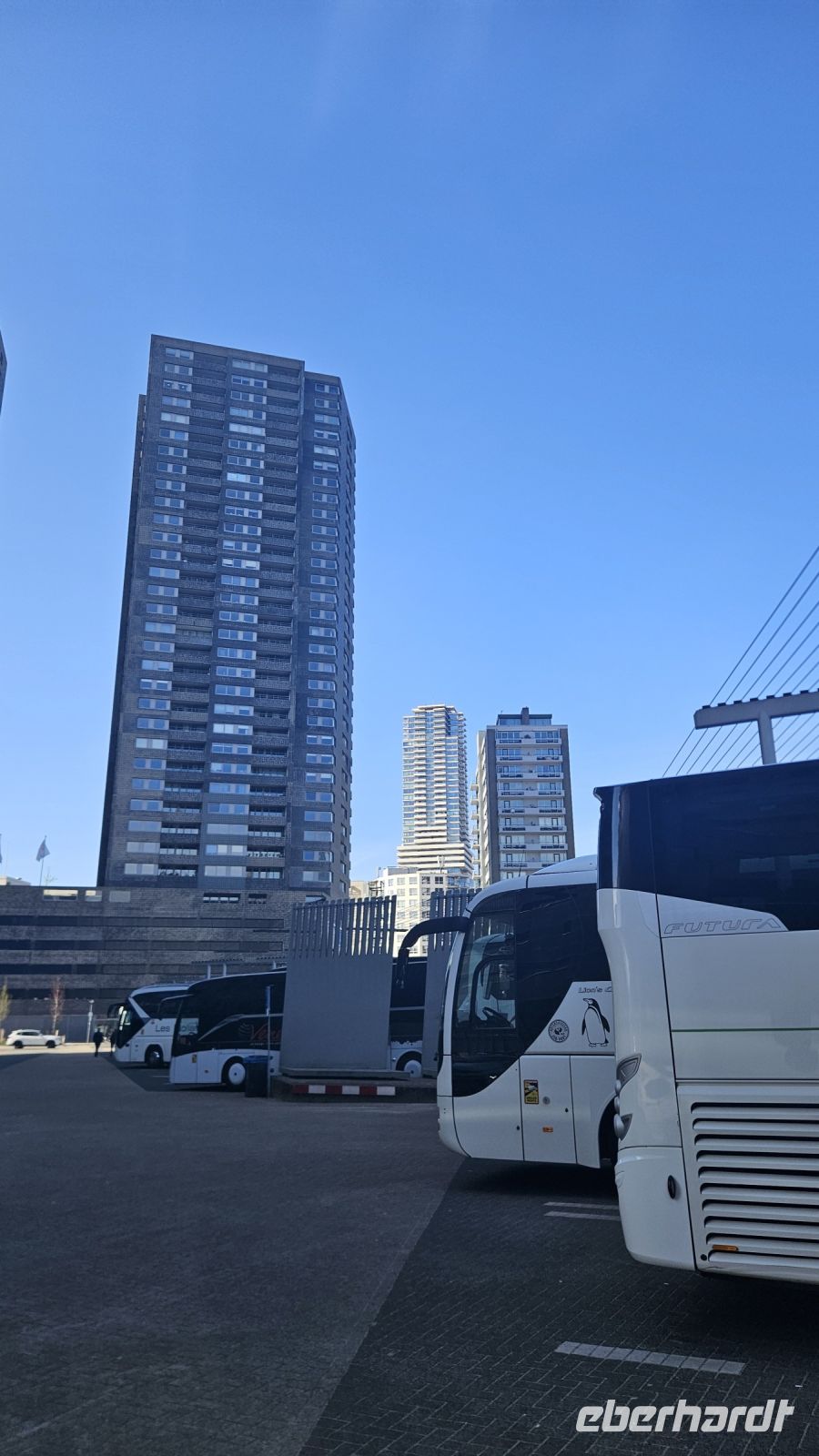 Noch etwas verschlafen, aber voller Vorfreude, ging es für uns früh am Morgen auf unsere magische Reise in Richtung England. Von Dresden, über Paderborn und Duisburg in Richtung Hoek van Holland. Da wir aber ohne Stau und andere Schwierigkeiten, viel zu schnell unterwegs waren, hatte unser Busfahrer Jan noch die geniale Idee einen Stopp im Zentrum von Rotterdam einzulegen. Dank seiner tollen Ortskenntnis konnten wir noch eine Panorama Fahrt durch das sonnige Rotterdam genießen und die verschiedenen Bauwerke und Hochhäuser bestaunen. Am Wahrzeichen von Rotterdam, der Erasmusbrücke („Der Schwan“) machen wir noch eine halbe Stunde Pause und lassen uns die Sonne ins Gesicht scheinen.
