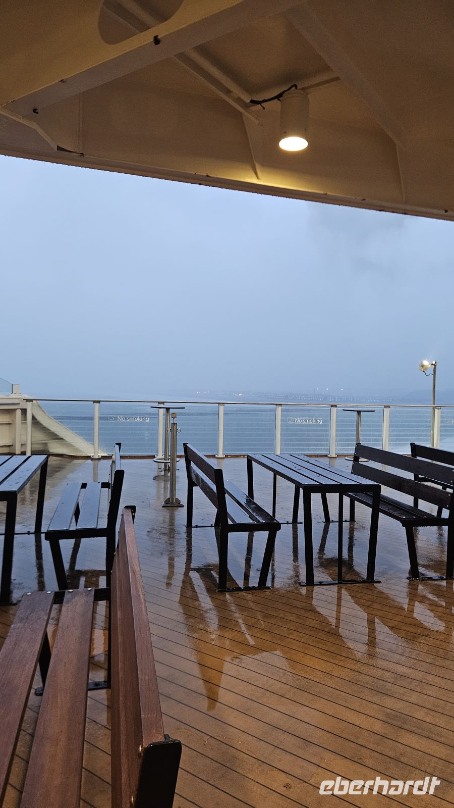 Alle anderen Gäste fahren zum Fährhafen von New Castle, an dem wir heute schon sehr zeitig sind. Deswegen bleibt noch genug Zeit vor dem frühen Abendessen das Wetter draußen an Board zu genießen.