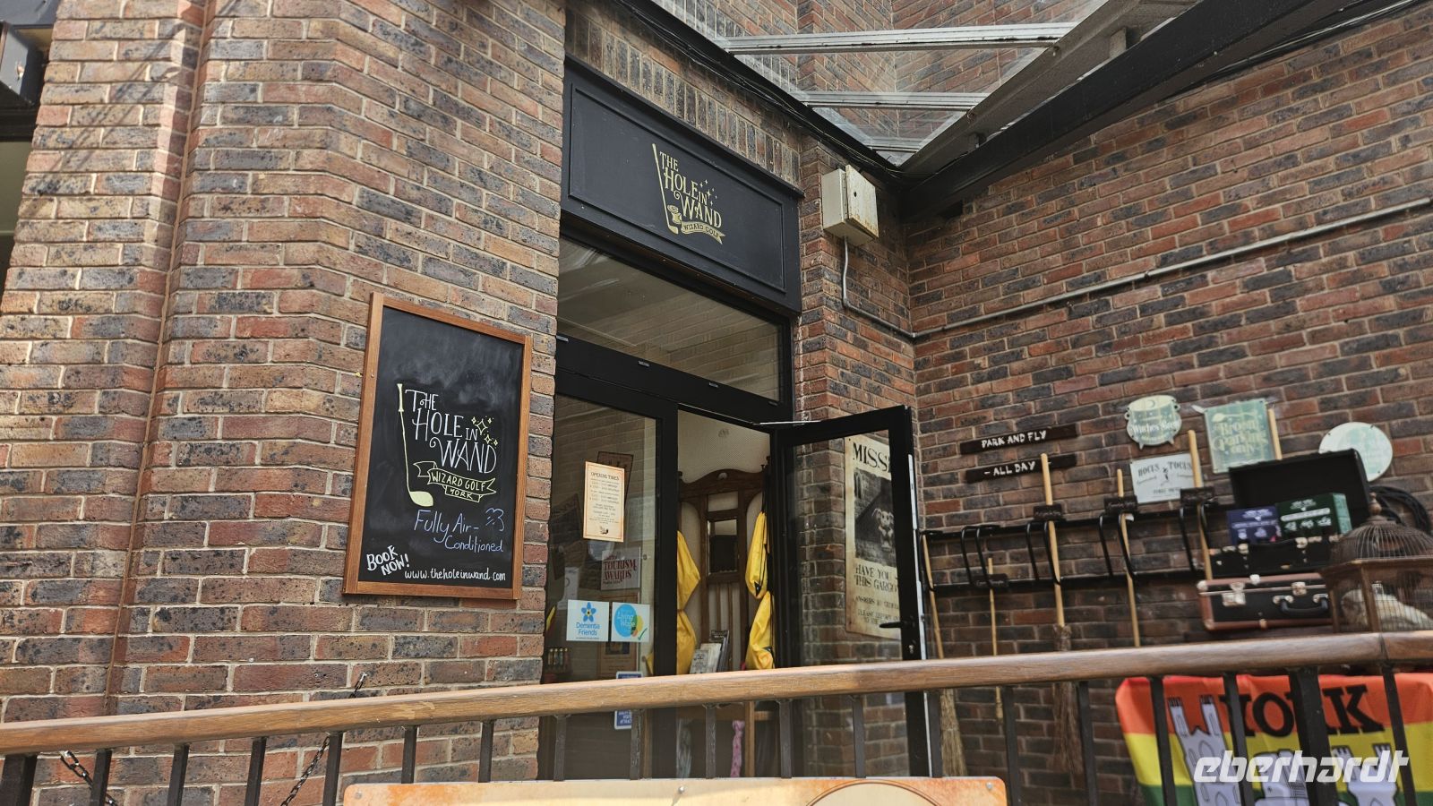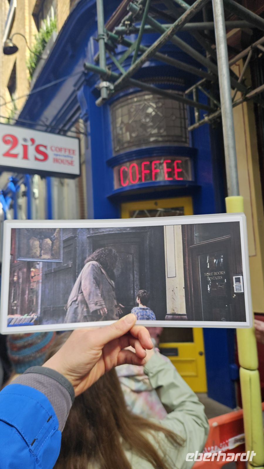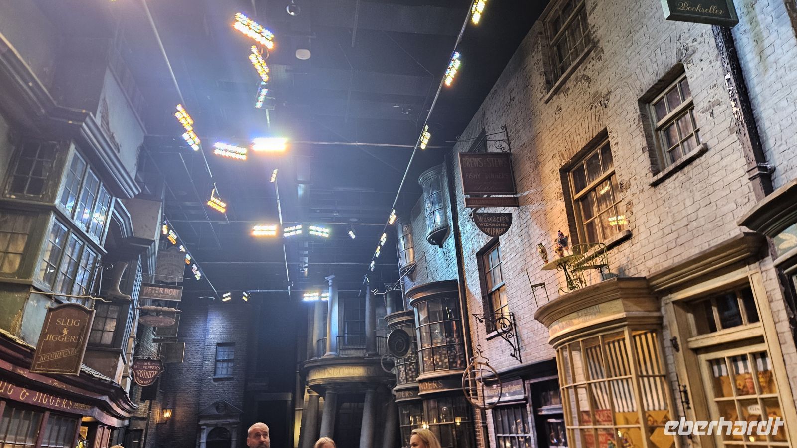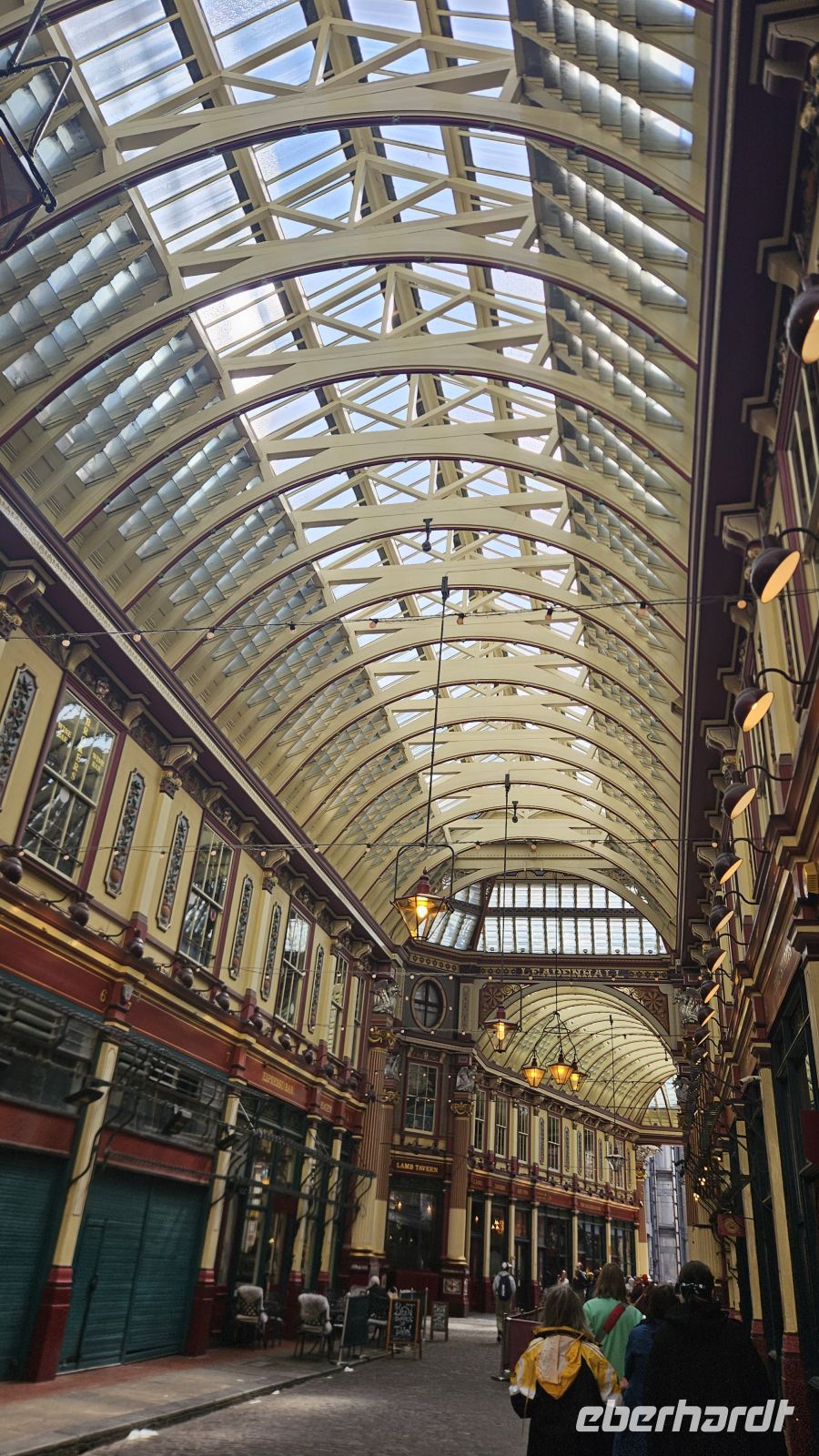 Weiter geht es für uns zum Leadenhall Market- oder anders gesagt: dem Eingang zur Winkelgasse. Wir durchlaufen die prunkvollen Hallen, durch die auch Hagrid und Harry im ersten Film gegangen sind und kommen zum Eingang der Winkelgasse. Hier versperrt uns leider eine andere Gruppe etwas die Sicht, aber wir sehen diesen typischen halbrunden Eingang, auch wenn die Farbe natürlich ganz anders ist als in den Filmen.