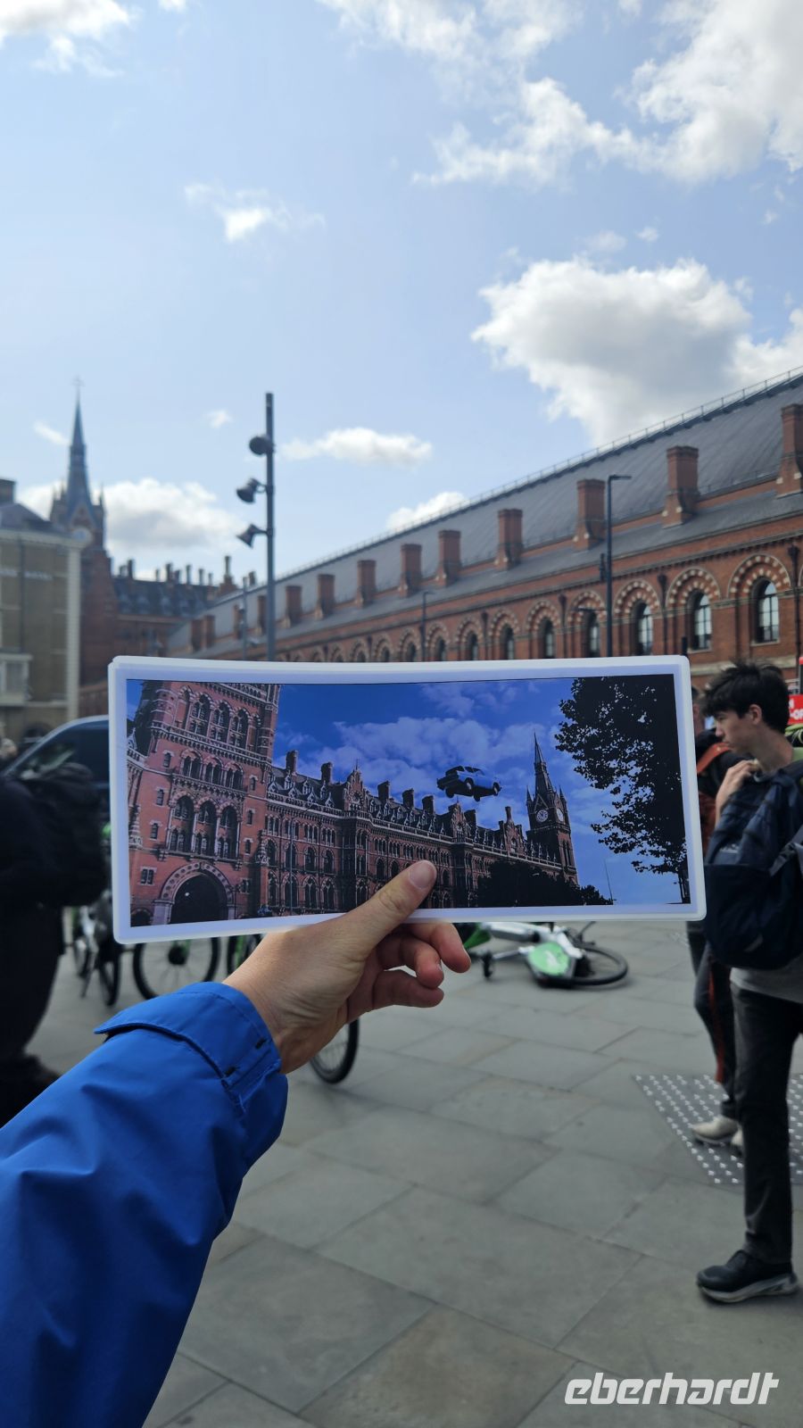 Ein Highlight jagt das nächste und schon befinden wir uns auf direktem Weg nach King´s Cross und zum Bahnsteig 9 ¾. Hier lernen wir, dass tatsächlich nicht der Bahnsteig zwischen 9 und 10 für die Dreharbeiten mit den Weasleys und Harry benutzt wurden, sondern ein ganz anderer. Leider kommen wir durch keine magische Wand mit einem Trolley und gehen nicht zum Hogwarts- Express, sondern zu unserem ganz eigenen Fahrenden Ritter nach einem kurzen Schreck durch einen Alarm am Bahnhof. Auf dem Weg bestaunen wir noch das wunderschöne Gebäude von St. Pancras, über das Ron und Harry mit einem etwas modifizierten Auto gen Hogwarts fliegen.
