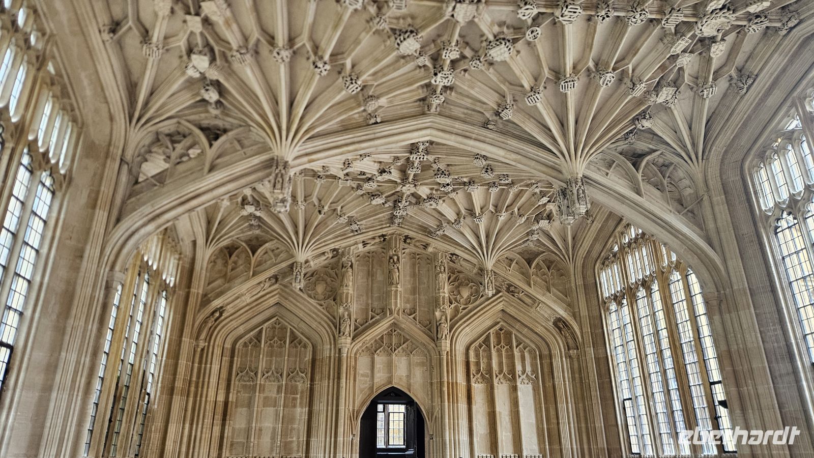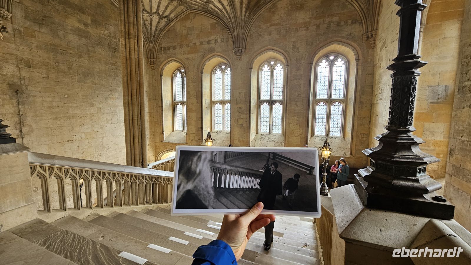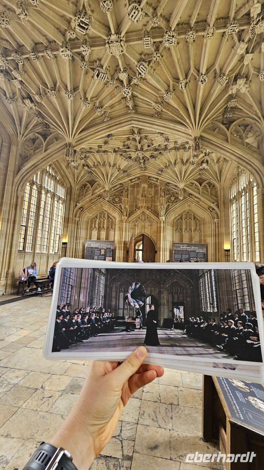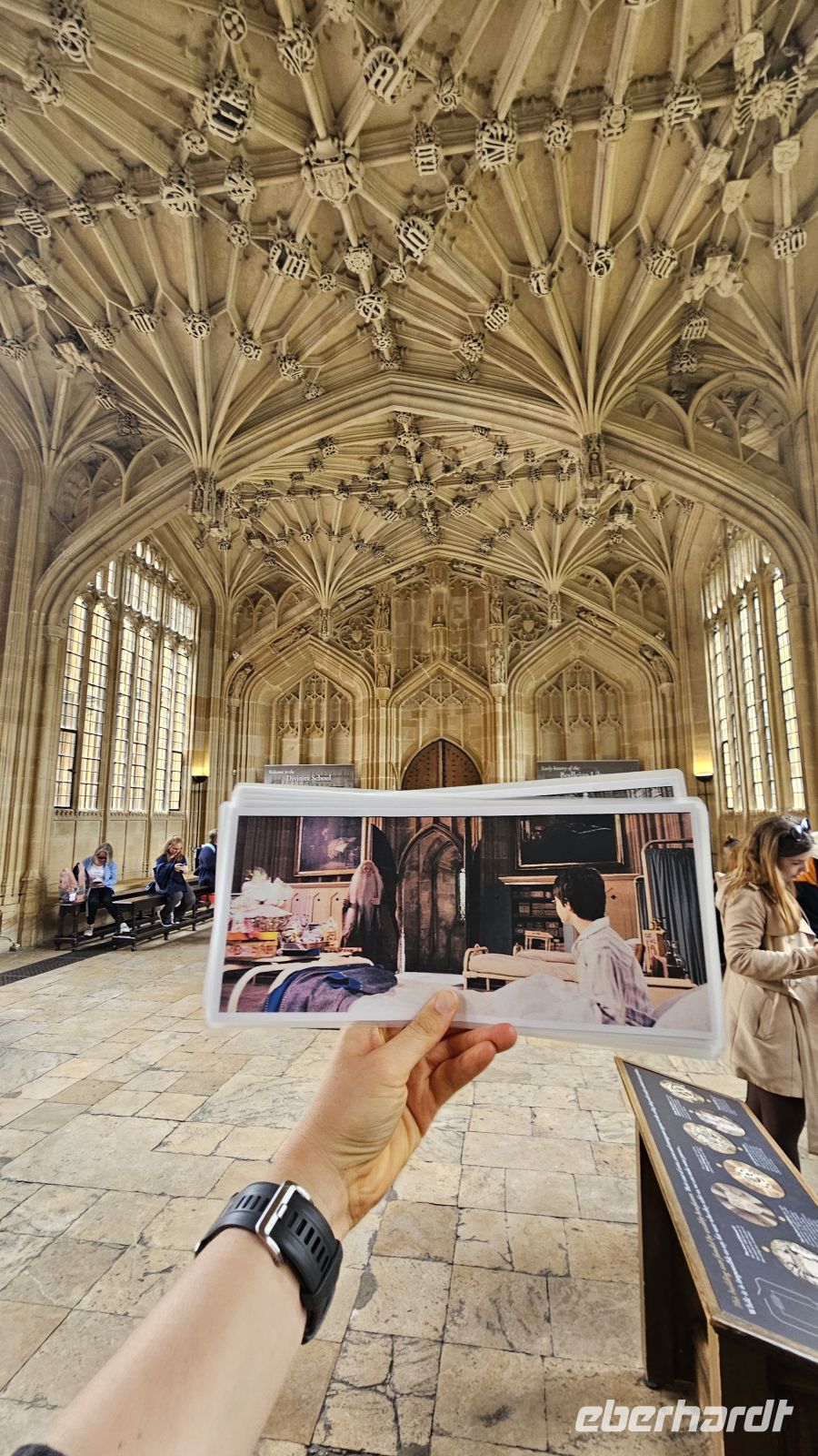 Mit vielen Informationen gehen wir in die wohlverdiente Mittagspause, zum Beispiel im „Covered Market“. Anschließend treffen wir uns alle noch einmal vor der Divinity School und der Duke Humfrey´s Library. Die Bibliothek diente auch als Drehort, ist aber leider nicht öffentlich zugänglich. Dafür gehen wir aber in die Divinity School, die als Drehort für den Krankenflügel und für die Tanzstunde verwendet wurde.