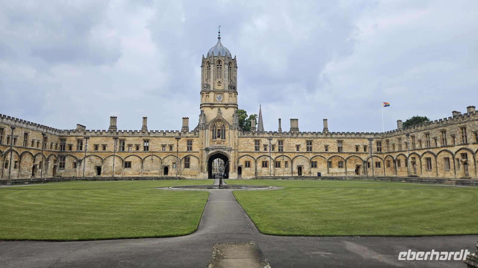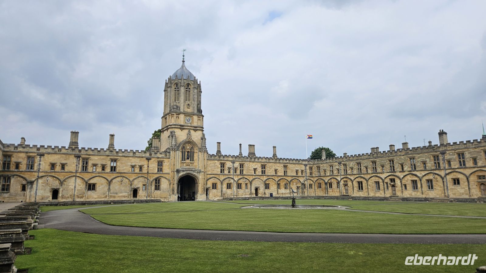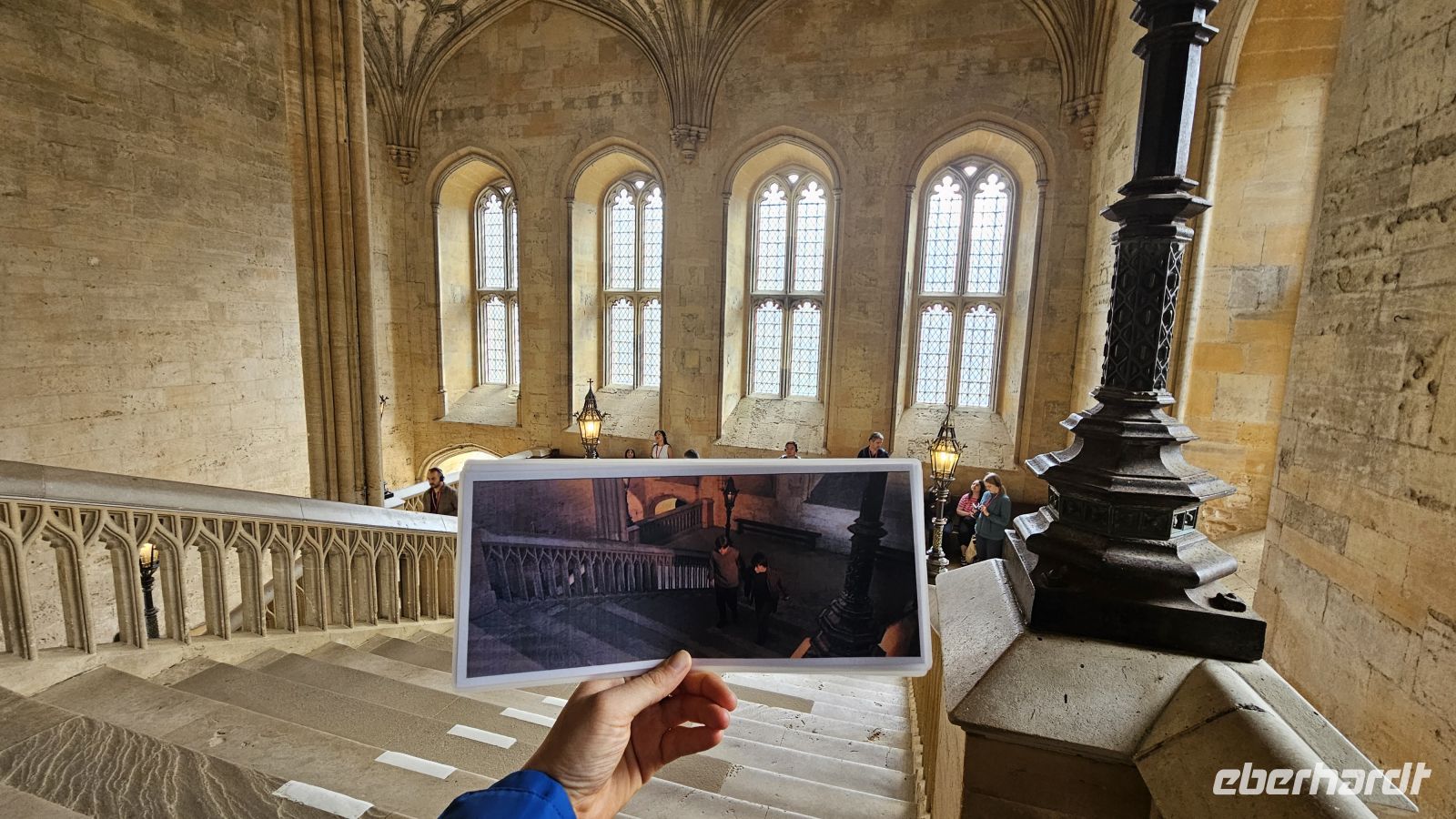 Heute geht es für uns in einer der schönsten Städte Englands: der Universitätsstadt Oxford. Über die Stadt sind 39 sogenannte Colleges verteilt. Eines der ältesten, bekanntesten und eindrucksvollsten besuchen wir heute. Christ Church College ist um diese Jahreszeit schön umgeben von verschiedenen blühenden Blumen und Pflanzen. Aber wir sind ja vor allem wegen des schönen Innenlebens von Christ Church hier. Mit unseren Audioguides erkunden wir selbstständig das College und halten an der berühmten Treppe. Hier gingen Ron und Harry in der „Kammer des Schreckens“ nach oben, nachdem sie den Hogwarts Express verpasst hatten. Zudem ist es die erste Szene die wir in „Stein der Weisen“ von den Innenräumen Hogwarts sehen. Hier gehen die Erstklässler die Treppe nach oben und werden von Professor McGonagall empfangen. Die Essenshalle von Christ Church diente als Inspiration für die Große Halle von Hogwarts. Danach schauen wir noch das restliche zugängliche Gelände vom imposanten Christ Church College an.