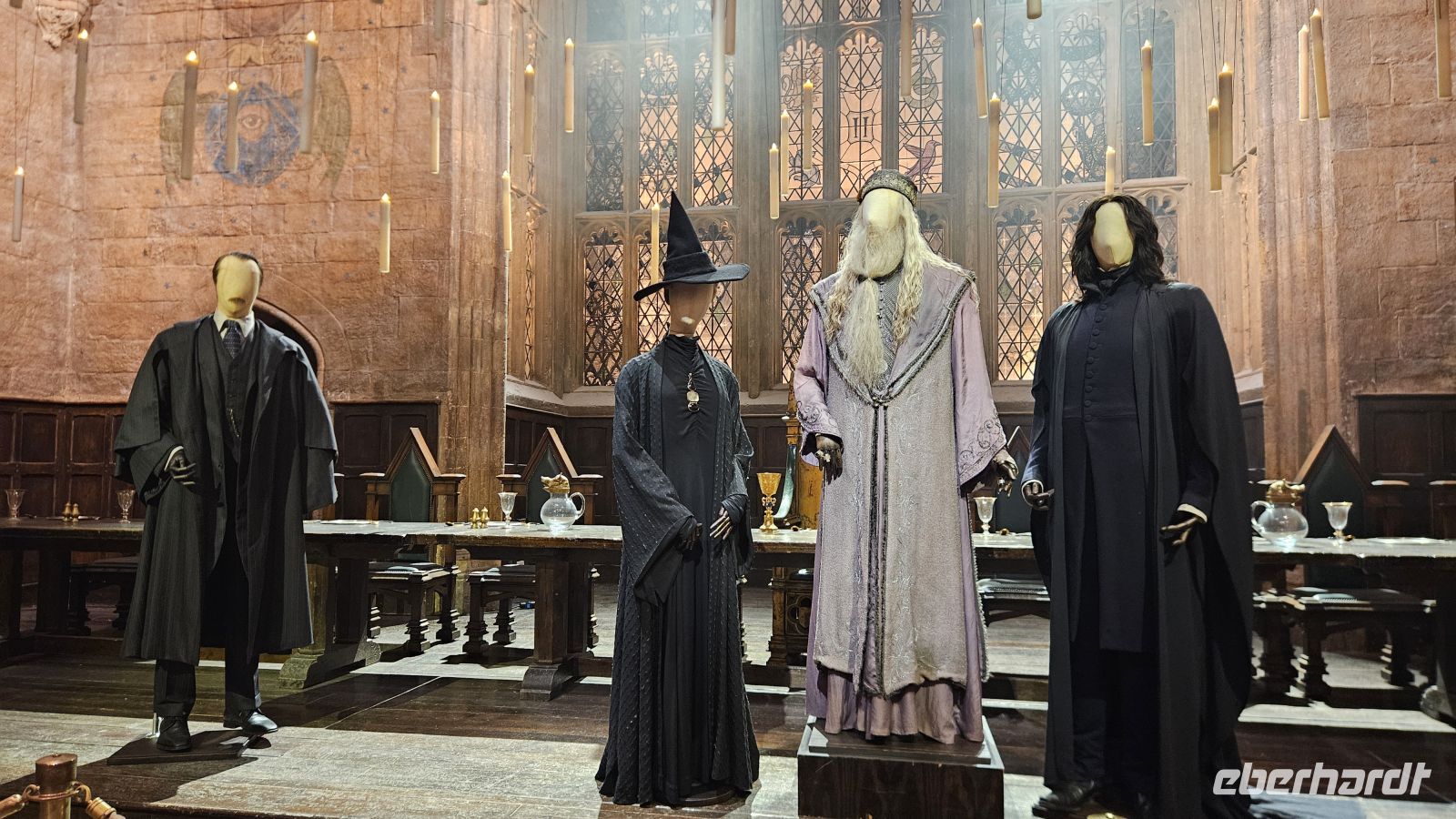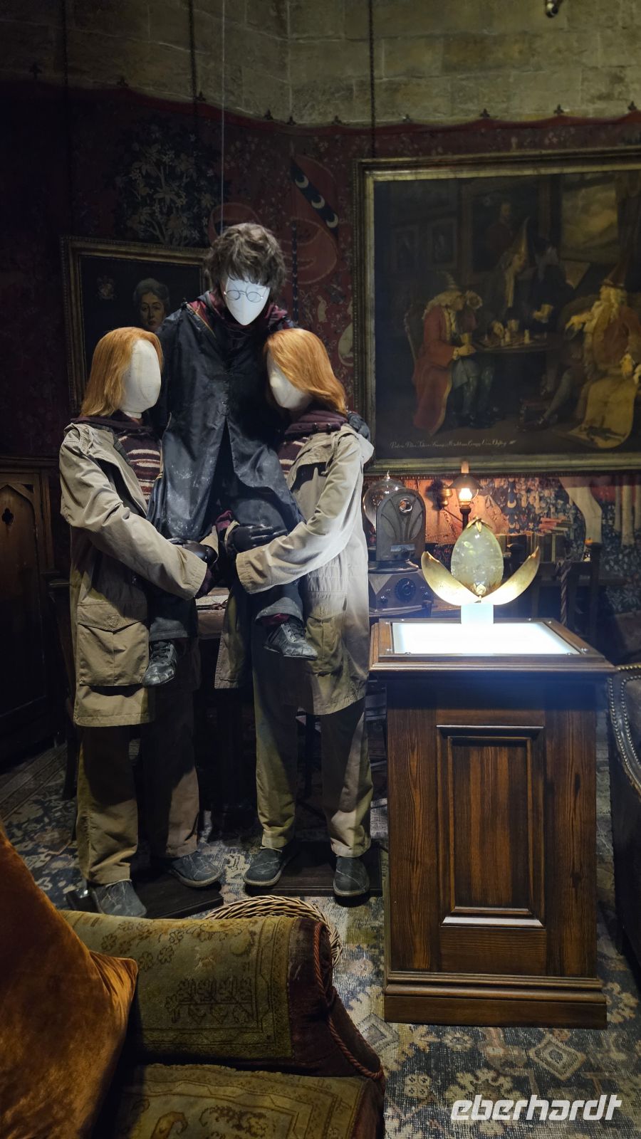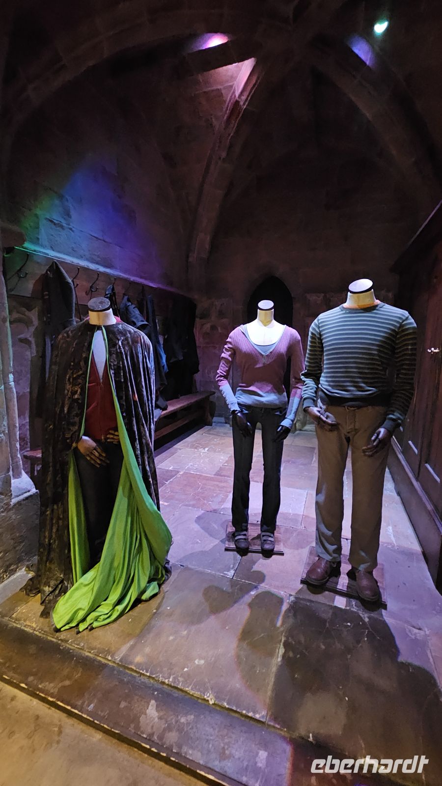 Die Halle 1, Halle J, hält viele wunderschöne Requisiten und Sets für uns bereit. Ob das der Griffindor Gemeinschaftsraum, Snapes dunkles Klassenzimmer, der Hogwarts Express oder einfach die verschiedenen Kostüme der Darsteller. Einige von uns fliegen auch auf Besen über das Quidditch Feld oder schauen sich Vorstellungen über die verwendeten Spezialeffekte an.