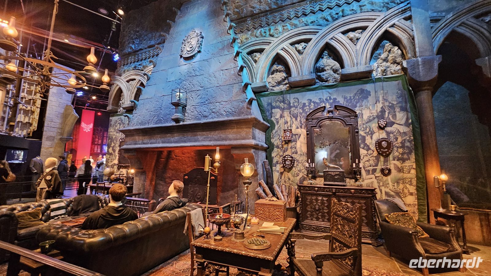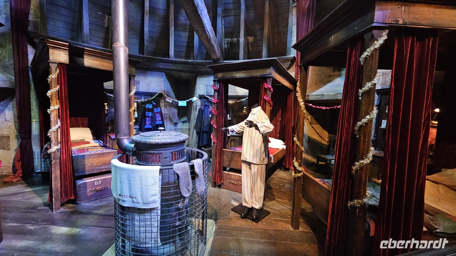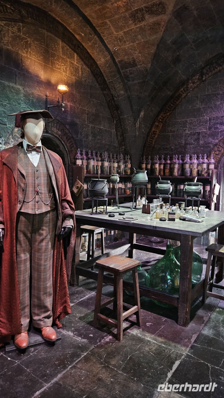 Die Halle 1, Halle J, hält viele wunderschöne Requisiten und Sets für uns bereit. Ob das der Griffindor Gemeinschaftsraum, Snapes dunkles Klassenzimmer, der Hogwarts Express oder einfach die verschiedenen Kostüme der Darsteller. Einige von uns fliegen auch auf Besen über das Quidditch Feld oder schauen sich Vorstellungen über die verwendeten Spezialeffekte an.