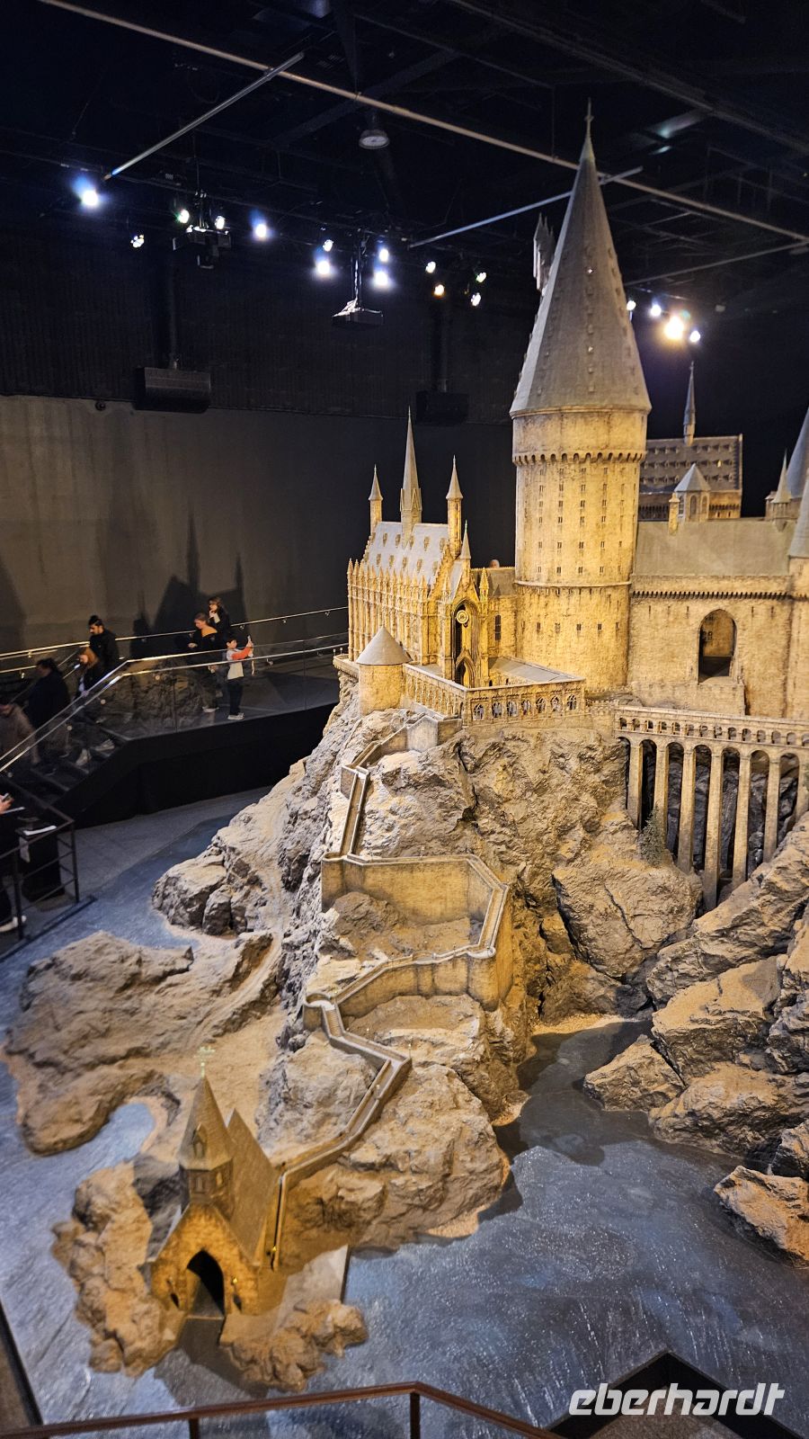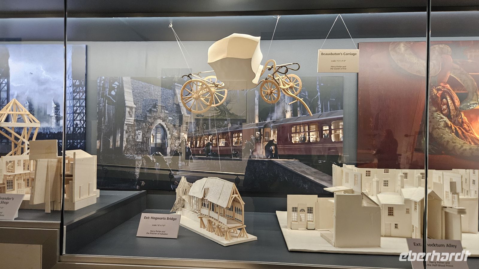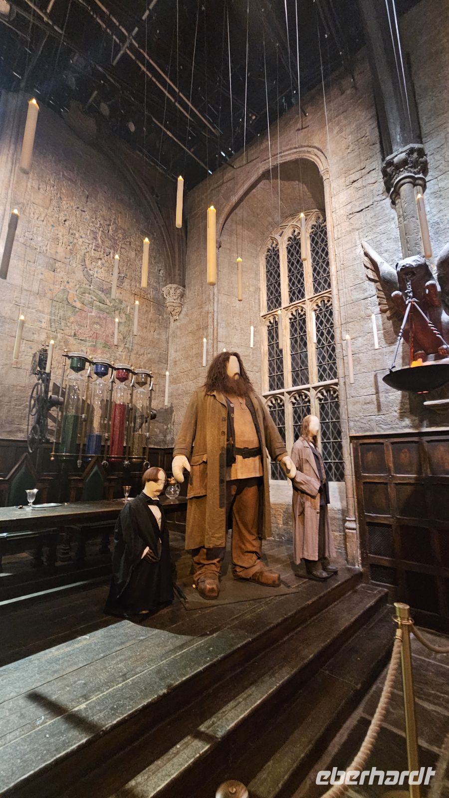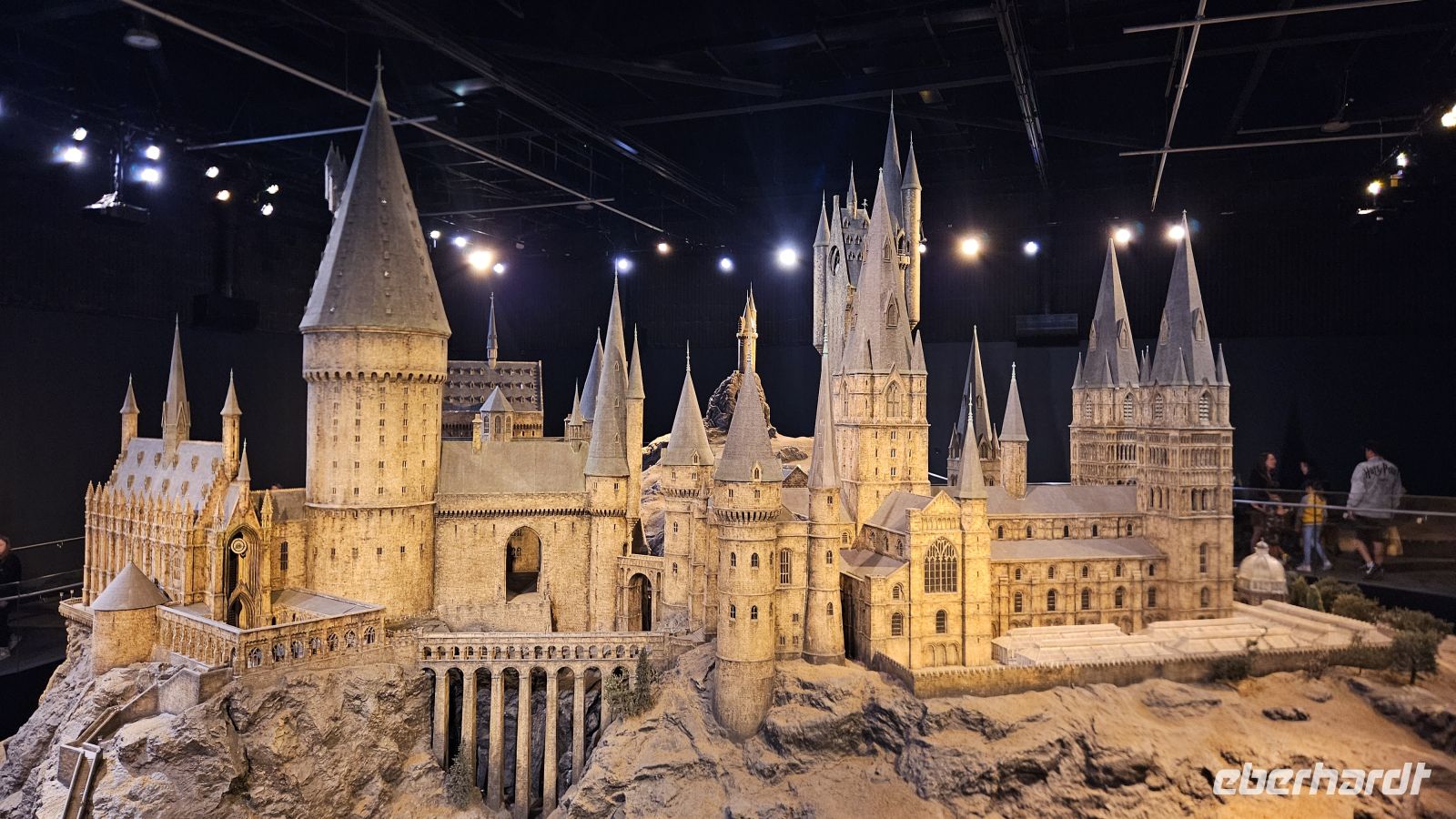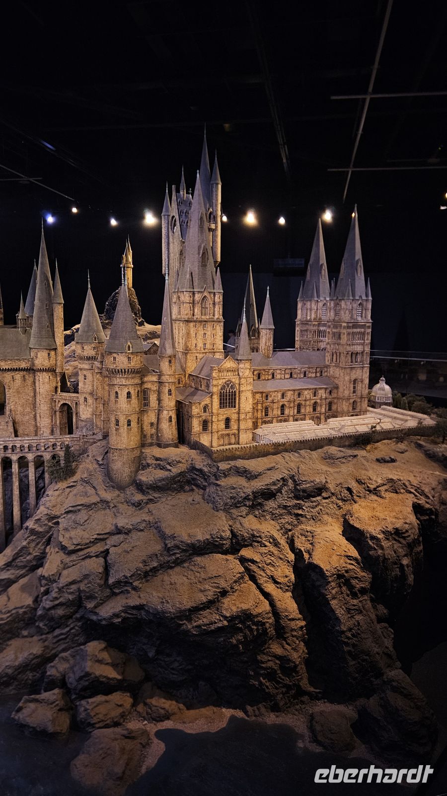 Danach geht es weiter in die zweite Halle, Halle K. Hier lernen wir viel über Maskendesign und allgemein alle Raffinessen hinter unseren geliebten Filmen. Außerdem faszinieren und die Sets von Gingrotts und der Winkelgasse. Schließlich kommen wir am riesigen Hogwarts Modell an und bestaunen es in seiner ganzen Pracht. Diesmal jedoch sehen wir die Jagd des Hornschwanz und Harry. Wirklich ein Spektakel!