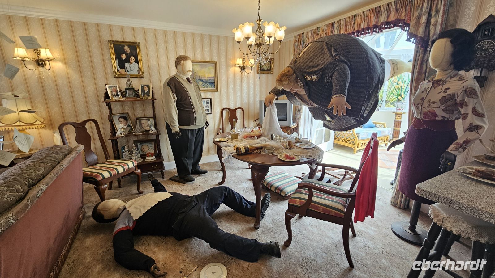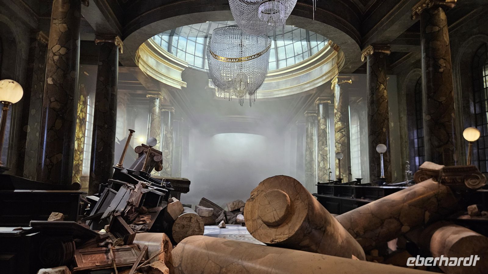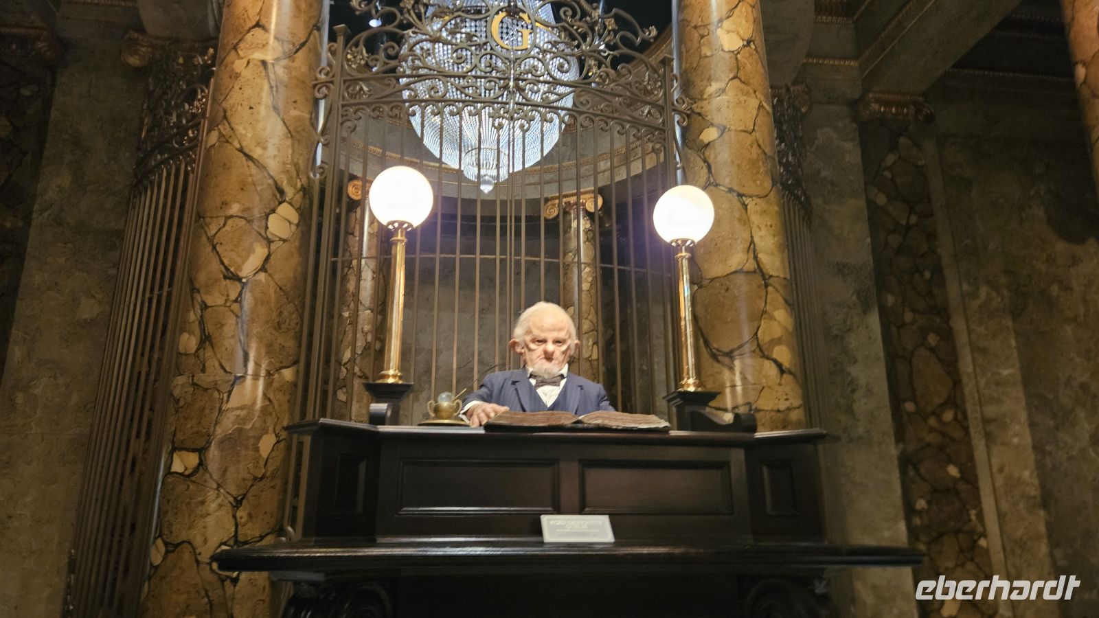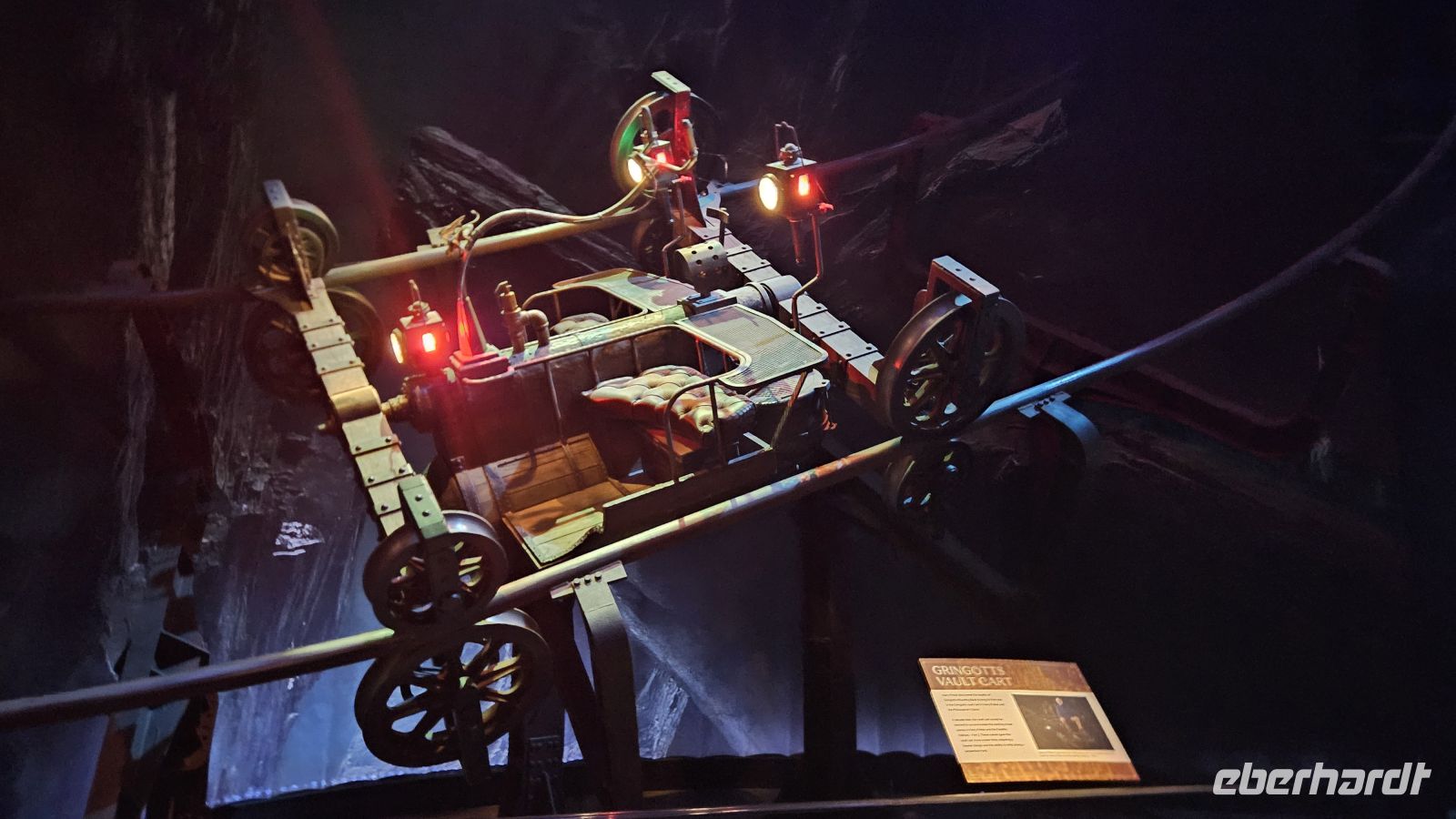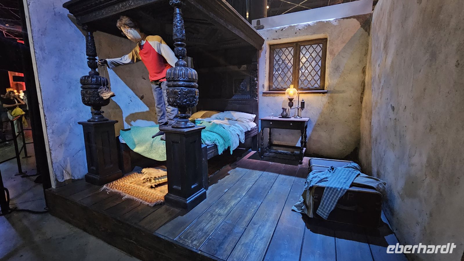Danach geht es weiter in die zweite Halle, Halle K. Hier lernen wir viel über Maskendesign und allgemein alle Raffinessen hinter unseren geliebten Filmen. Außerdem faszinieren und die Sets von Gingrotts und der Winkelgasse. Schließlich kommen wir am riesigen Hogwarts Modell an und bestaunen es in seiner ganzen Pracht. Diesmal jedoch sehen wir die Jagd des Hornschwanz und Harry. Wirklich ein Spektakel!