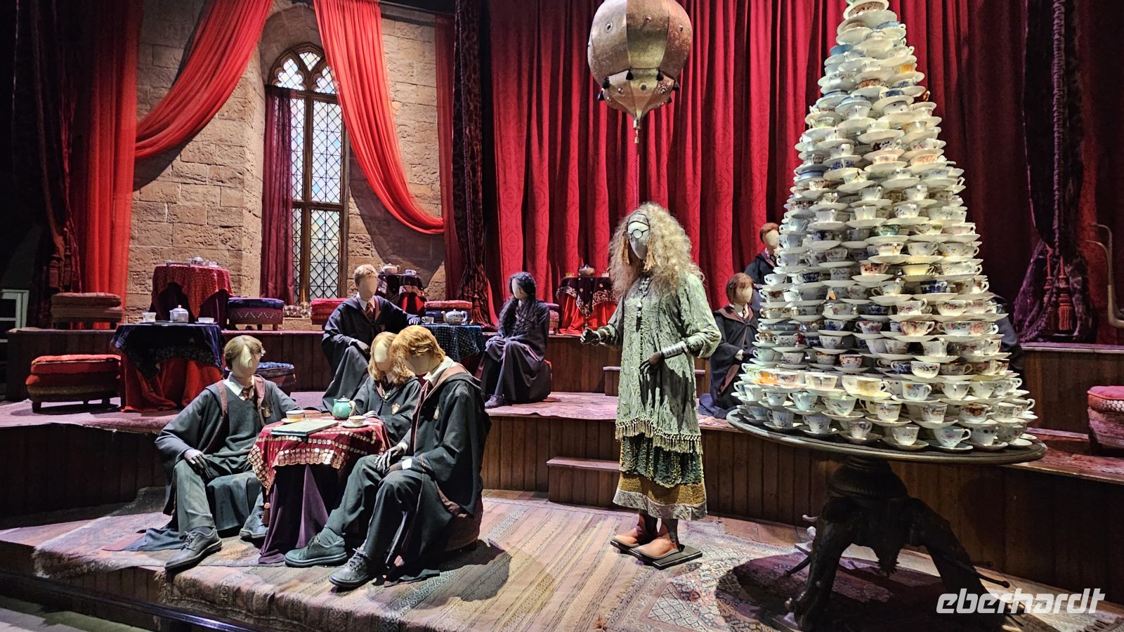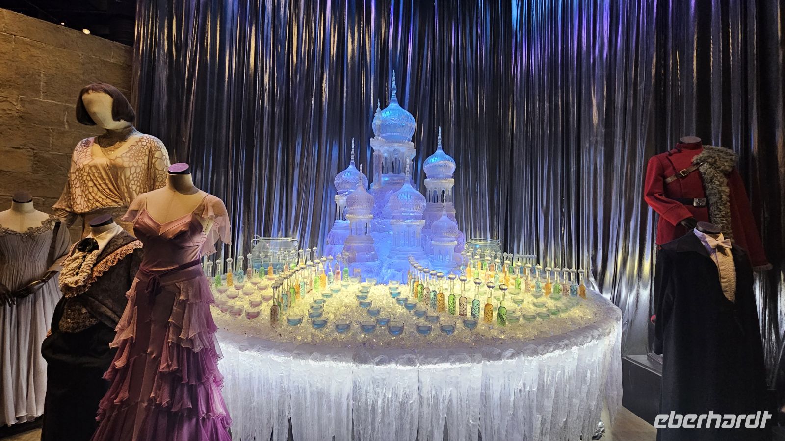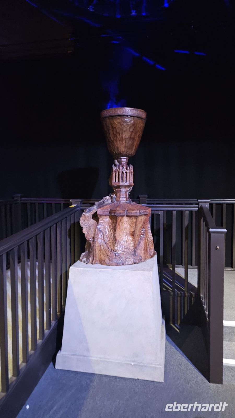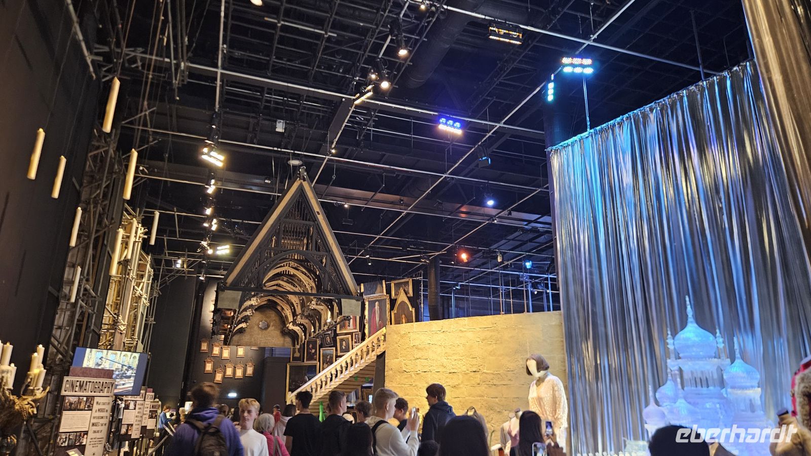 Nach einer kleinen Kinovorstellung werden wir emotional bei unserem Eintritt in die große Halle! Diese ist größer als wir uns vorgestellt haben. Wir haben großes Glück diesmal, denn es findet die Sonderausstellung zu 20 Jahre „Harry Potter und der Feuerkelch statt“ und so erleben wir den traumhaften Eingang der Schüler von Beauxbaton und Durmstrang.