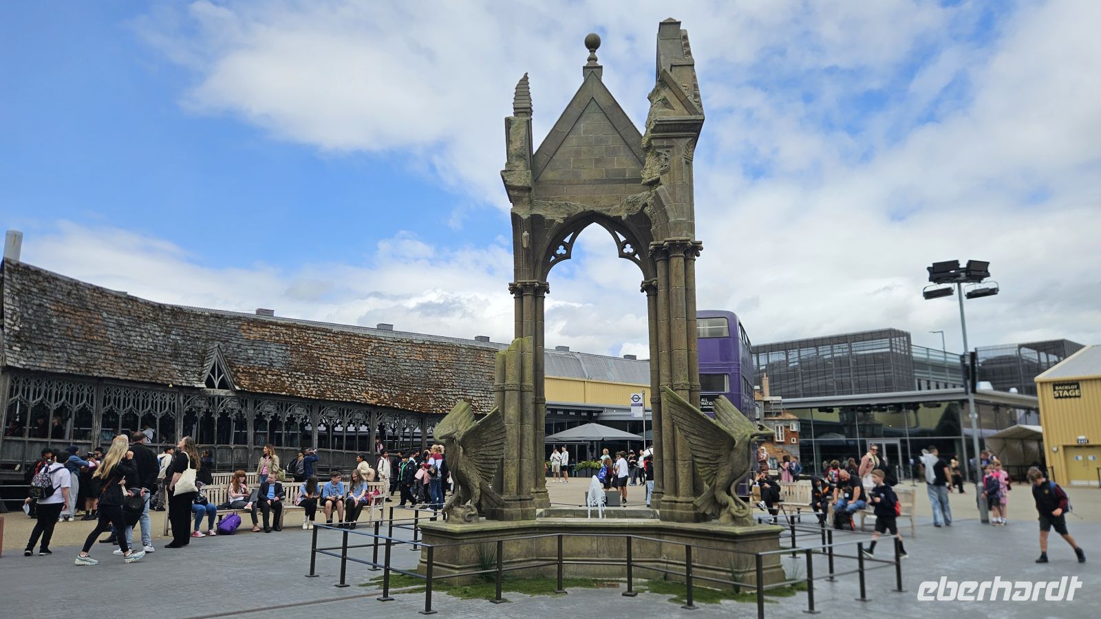 Nachdem wir unseren Wagen durch Gleis 9 3/4 geschoben haben und einmal durch den Hogwarts Express gelaufen sind, kommen wir auch im Außenbereich an. Hier sonnen wir uns oder genießen ein Butterbier. ;)