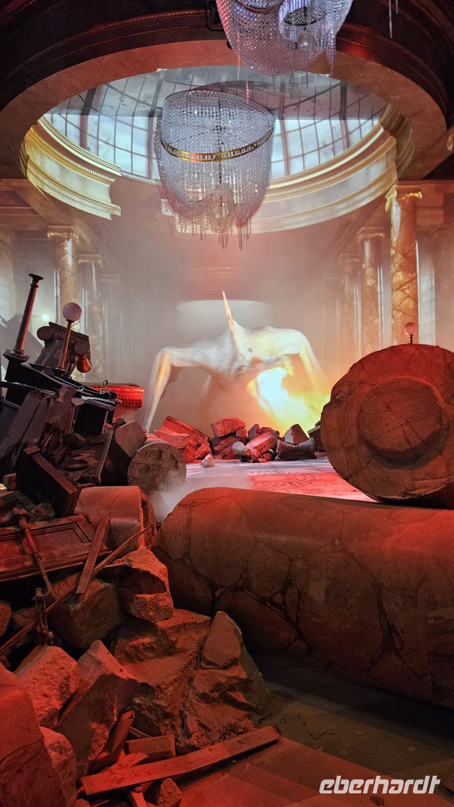 Dank eines frühen Zeitslots sind wir wenige der ersten die an diesem Tag in die Studios kommen und freuen uns demnach über ein vergleichsweise leeres Studio, wenn auch mit einigen Schulkalssen. Nach unserem Gang vorbei an riesigen Zauberstäben, grüßt uns in der Halle der Ungarische Hornschwanz.