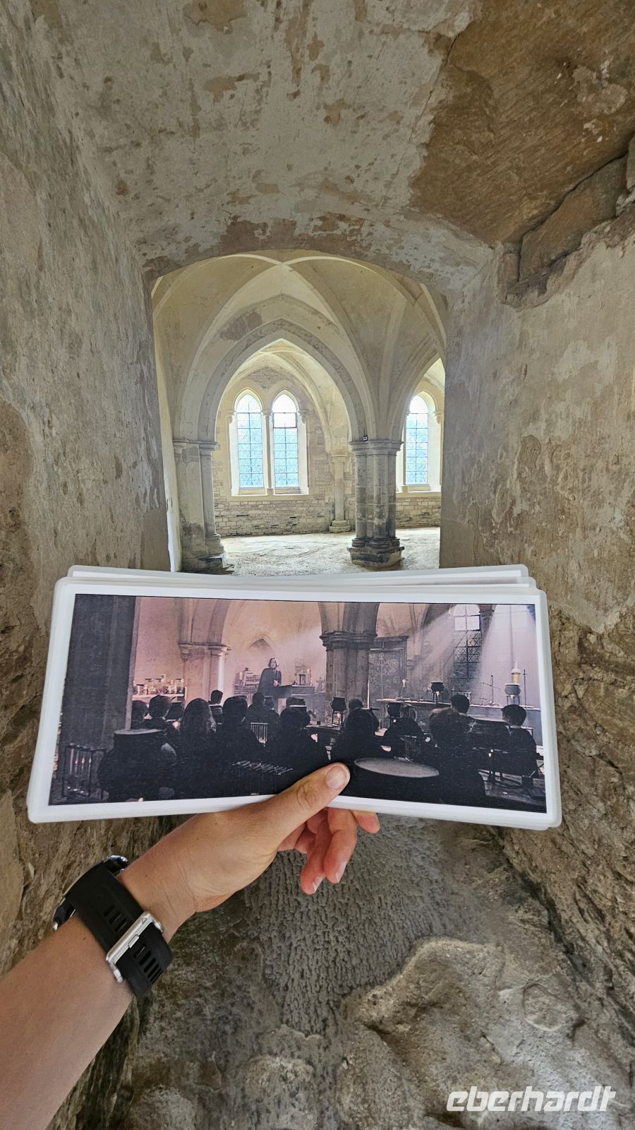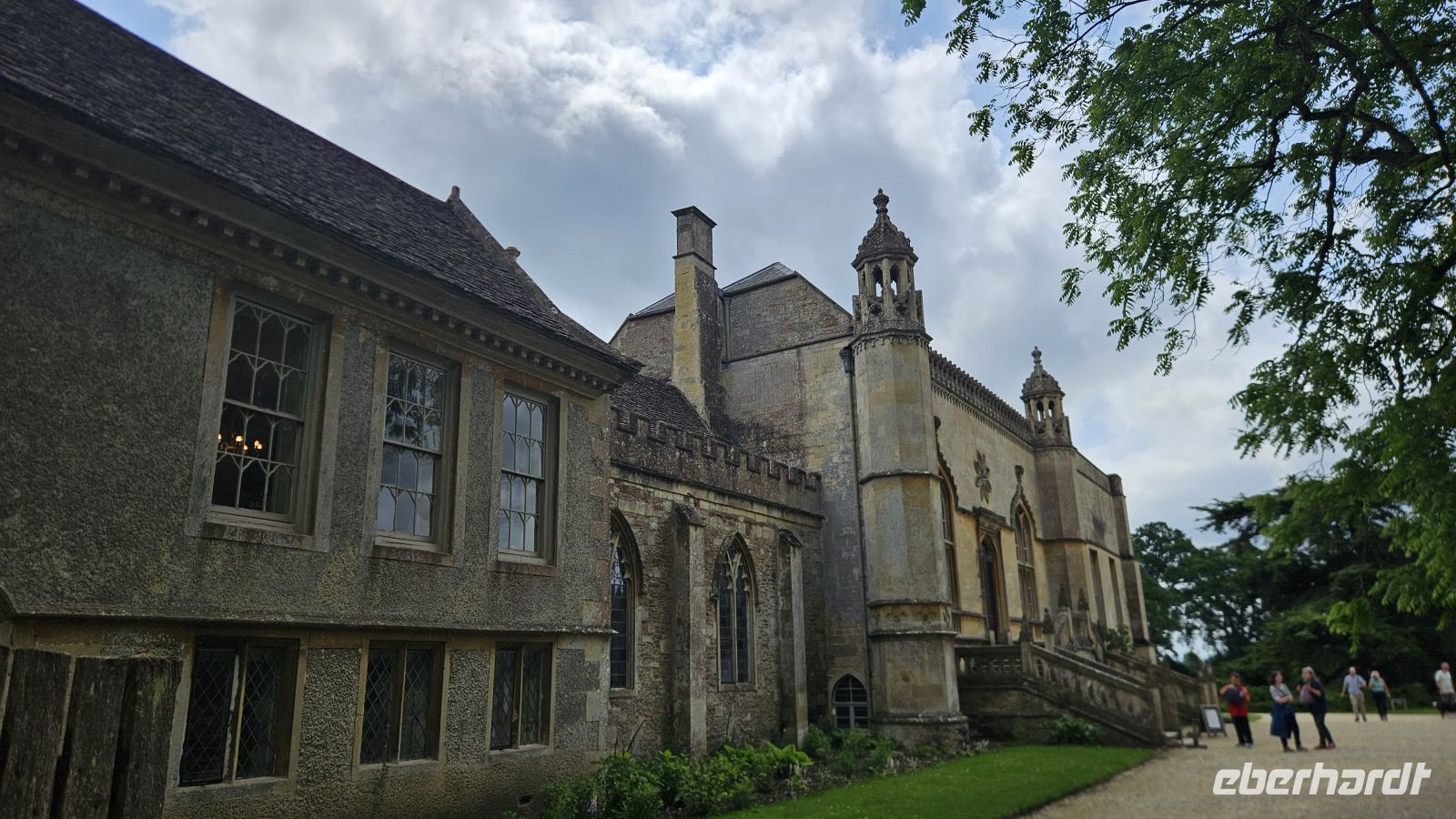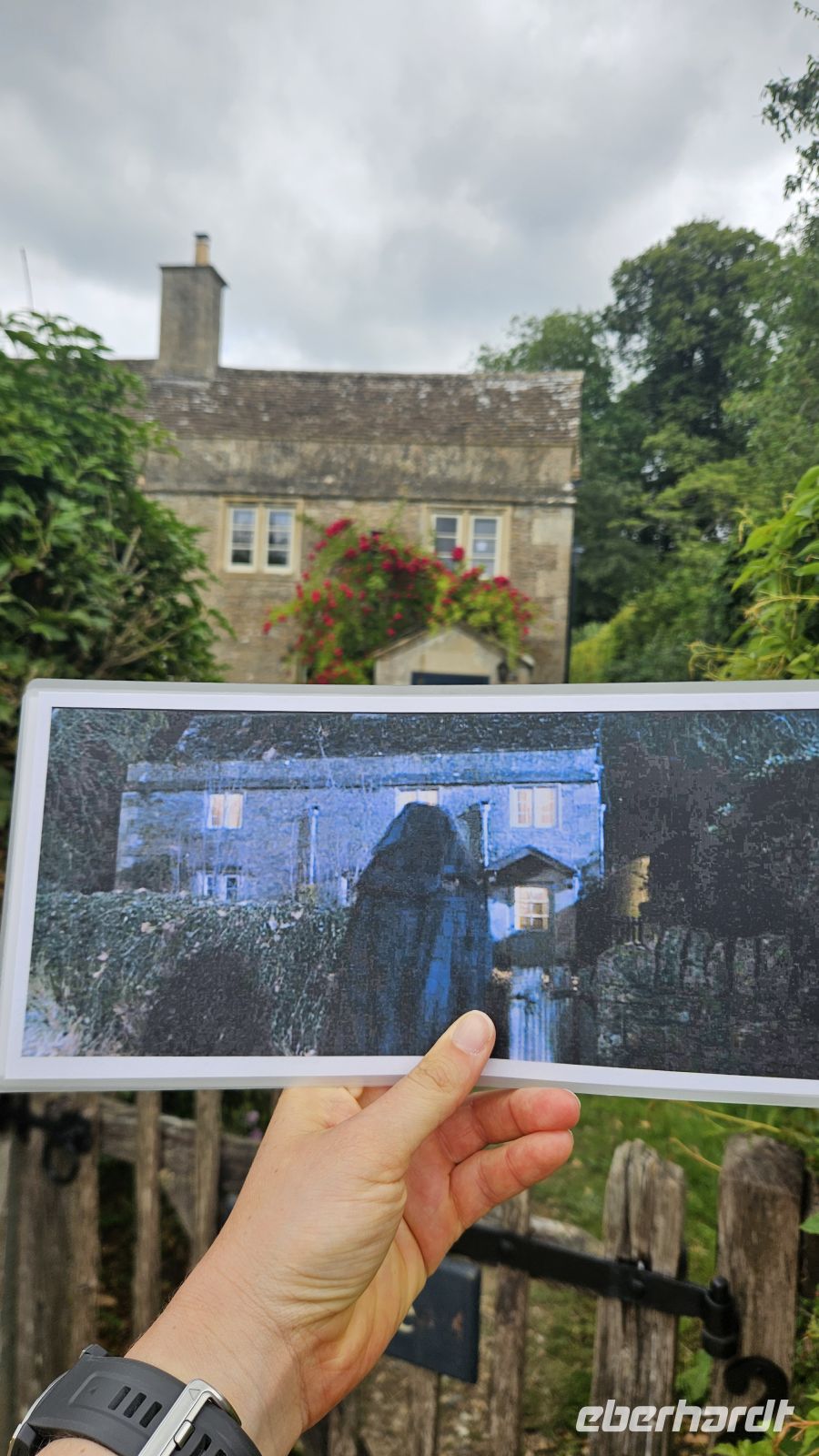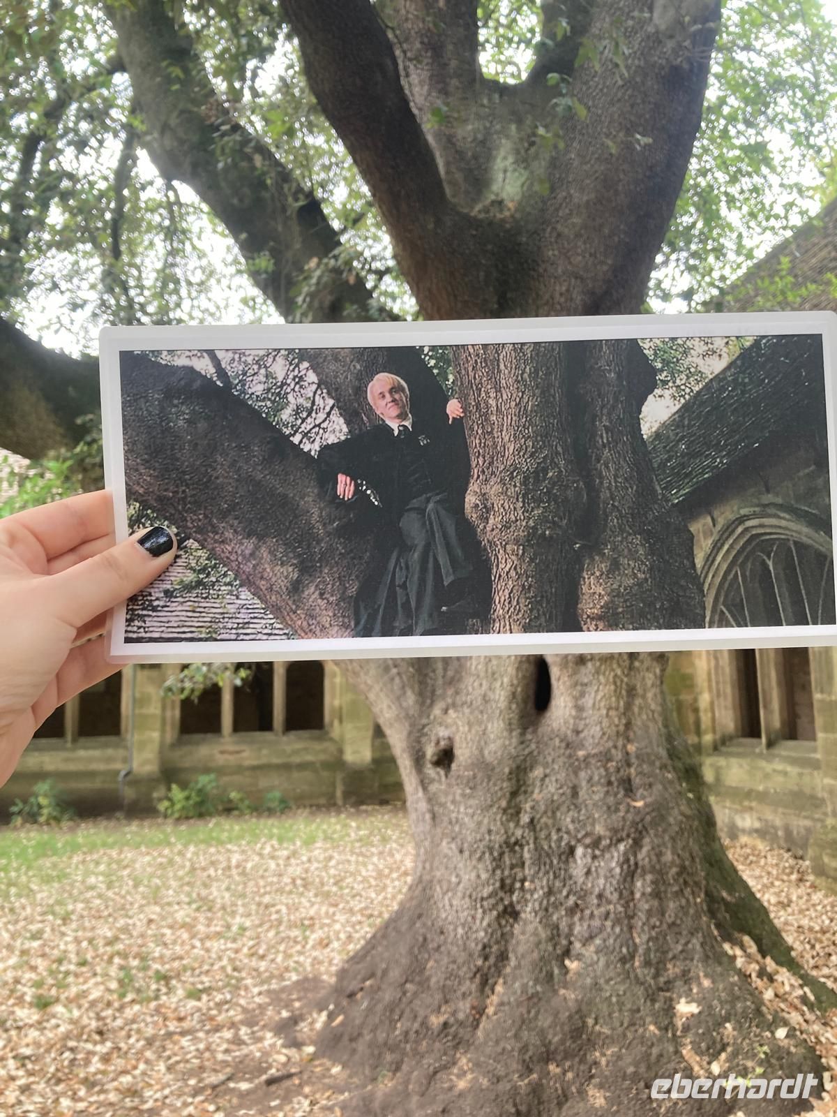 Angekommen machen wir einen Spaziergang durch das schöne englische Dorf und gehen vorbei am Haus von Professor Slughorn und dem Haus der Potters. Vorbei an verschiedenen kleinen Läden und Harry Potter Pins, gehen wir zur Abtei von Lacock. Diese wurde für diverse Hogwarts Klassenzimmer verwendet. Die Szene in der Professor McGonagall Oliver Wood aus Professor Quirrels Klassenzimmer holt, um ihn den neuen Gryffindor Sucher vorzustellen- hier gedreht. Zudem steht Harry hier vor dem Spiegel „Nerhegeb“ und das Klassenzimmer von Professor Snapes war wiederum in einem anderen Raum. Auch in „Phantastische Tierwesen“ wurde die Abtei erneut verwendet, unter anderem für Außenansichten. Hier lachen wir über die Tricksereien der Filmemacher, denn um uns herum sind definitiv nicht die schottischen Highlands, sondern nur das flache England.