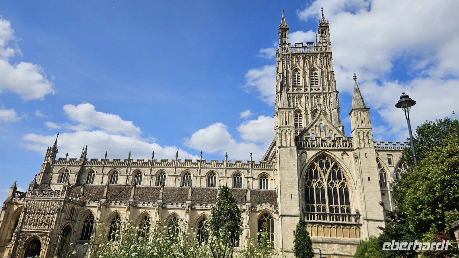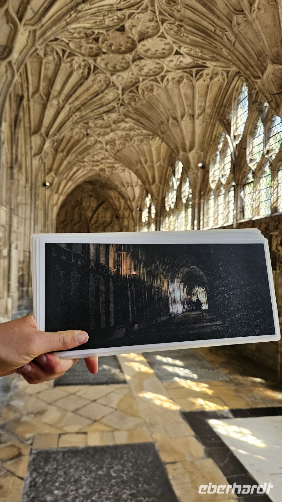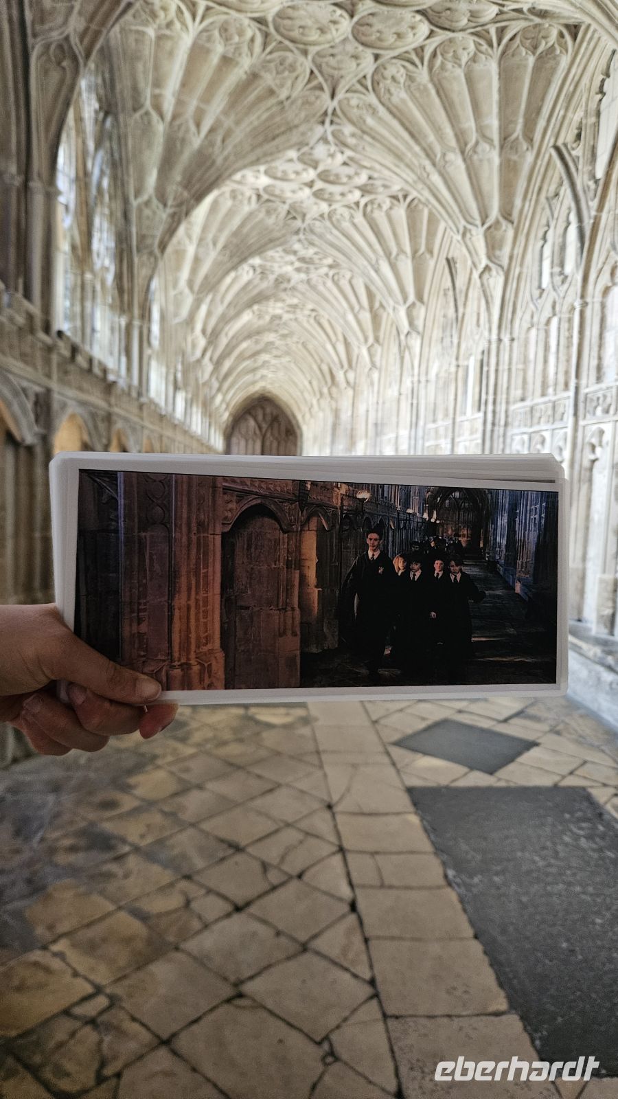 Weiter geht es nach Gloucester durch das schöne ländliche England. Die Kreuzgänge der Kathedrale von Gloucester wurden für so viele verschiedene Szenen verwendet, dass es immer wieder ein kleines Suchspiel ist, sie dem richtigen Gang und der richtigen Richtung zuzuordnen. Aber da wir ja alle Experten sind, ist es für uns kein Problem. Leider ist die Kathedrale heute geschlossen, weswegen wir uns etwas in der Stadt umschauen.