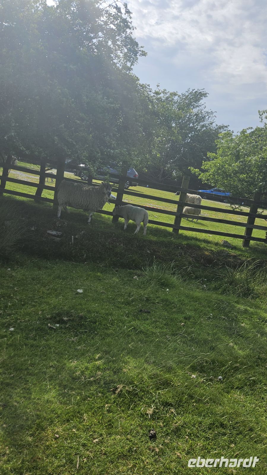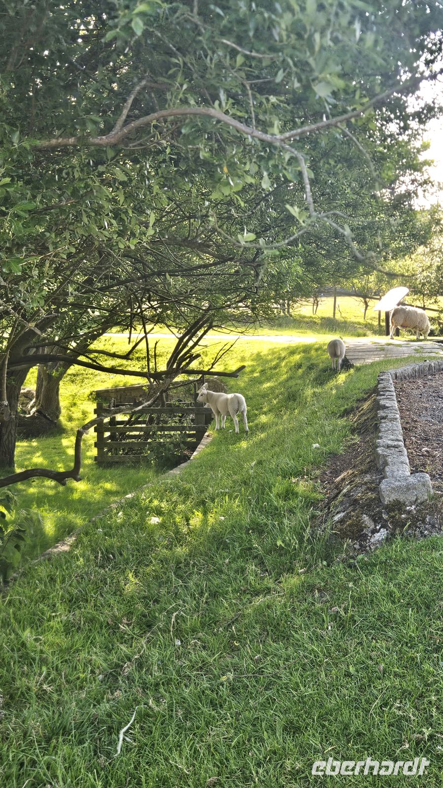 Unten haben wir Glück, denn es kommt sogar noch ein Zug und wir bekommen noch super Bilder. Nach einem entspannten und gemütlichen Aufenthalt gehen wir wieder zurück zum Bus vorbei an Schafen.