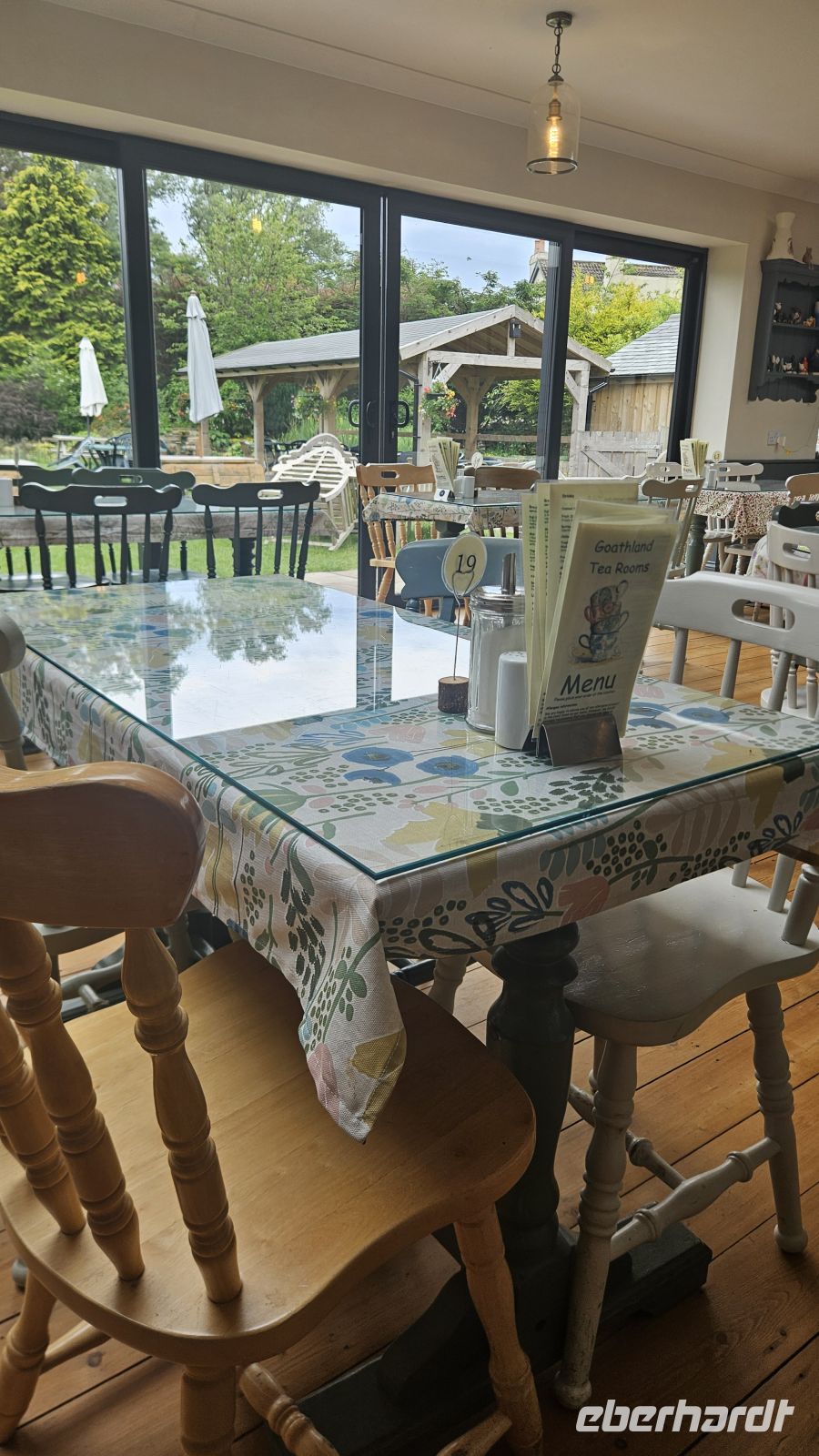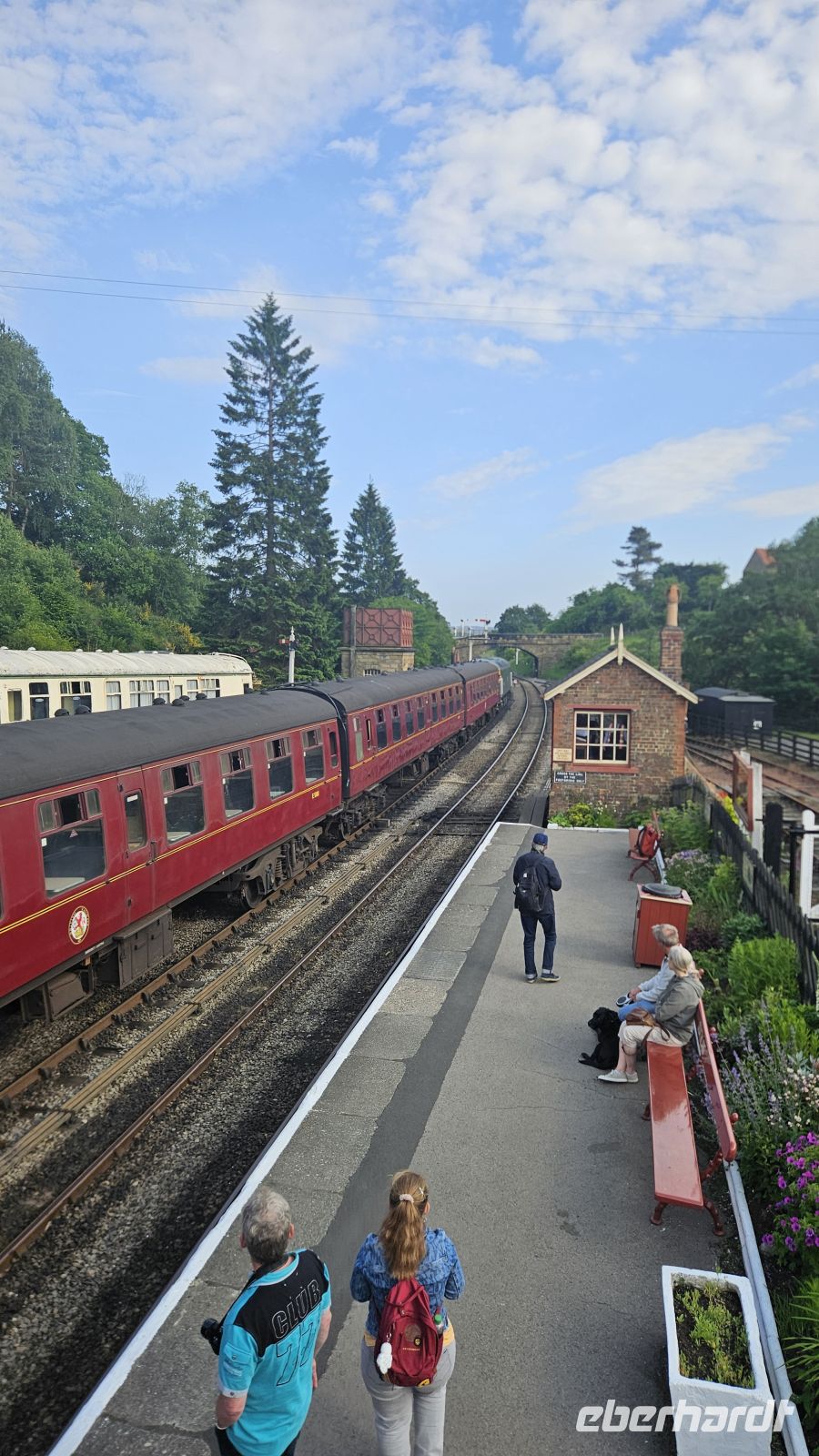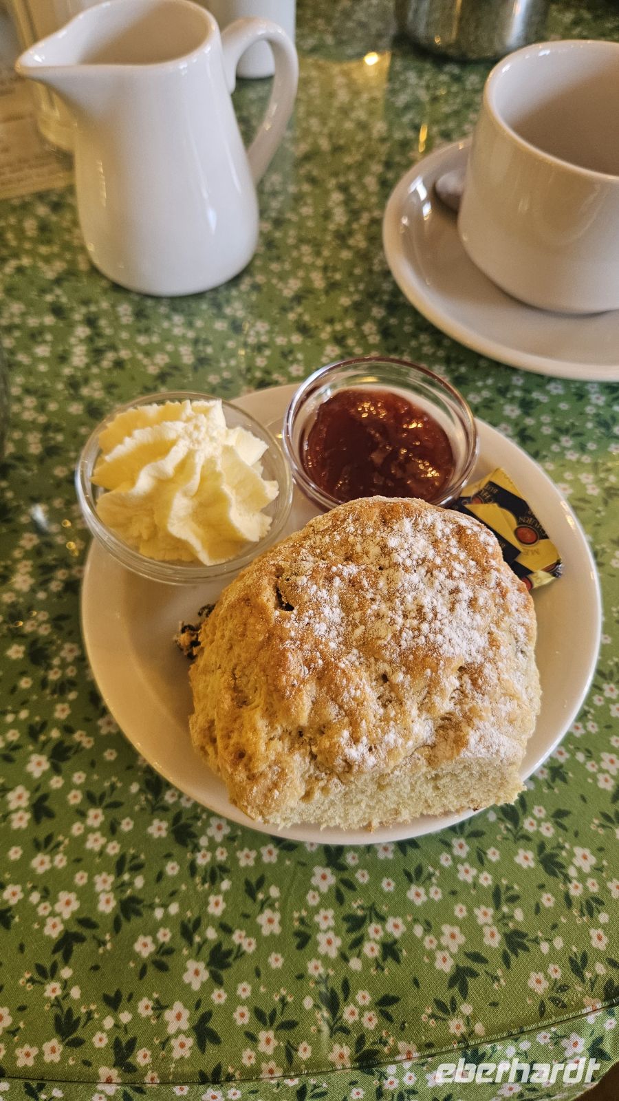 Leider fährt unser Hogwarts Zug heute nicht und so fahren wir mit unserem Ritter durch den beeindruckenden North Yorkshire Moors Nationalpark und sehen ganz viele Schafe auf unserem Weg nach Goathland. In der wunderbaren Landluft gehen wir zuerst zu unserem Cream Tea. Für einige ist es der erste British Tea und Scones. Die Frage ist nur, ob zuerst die Creme oder die Marmelade. Viele probieren beide Varianten. Zu unserer großen Freude sind die Scones sehr lecker. Danach kommt es noch zu einer kurzen Shopping- Eskapade im anliegenden Shop. Das ist aber auch alles wirklich niedlich! Nun gut gestärkt gehen wir in Richtung Bahnstation.