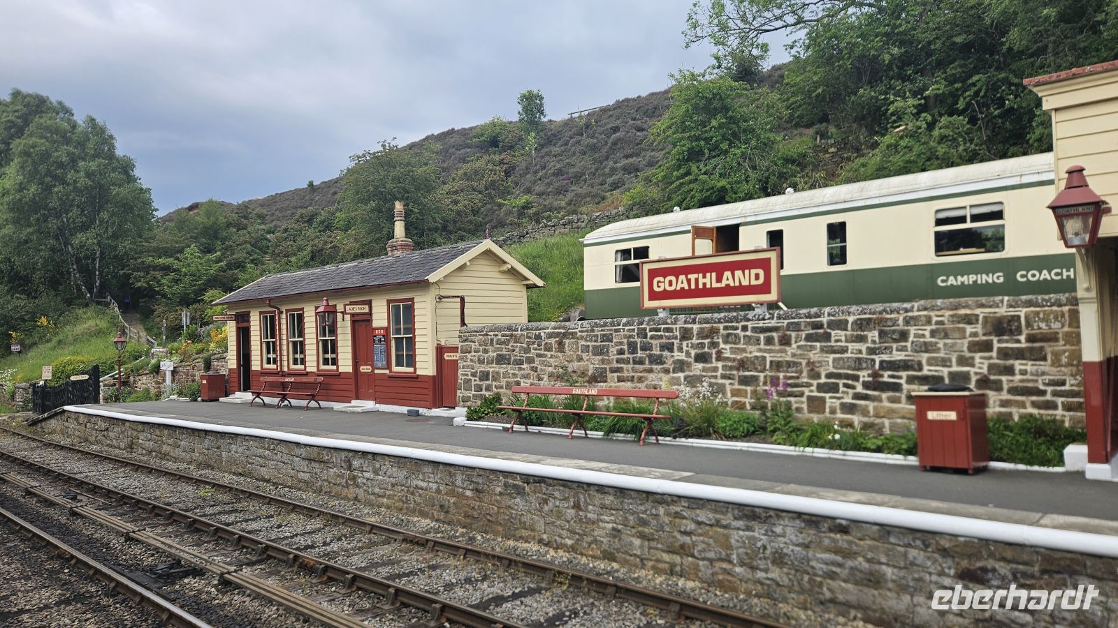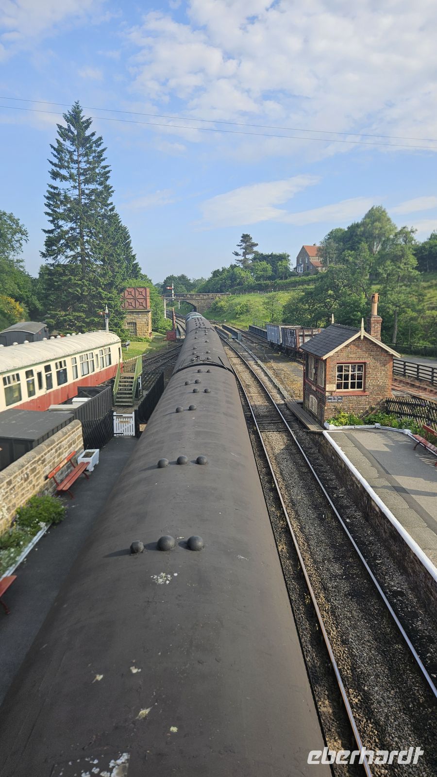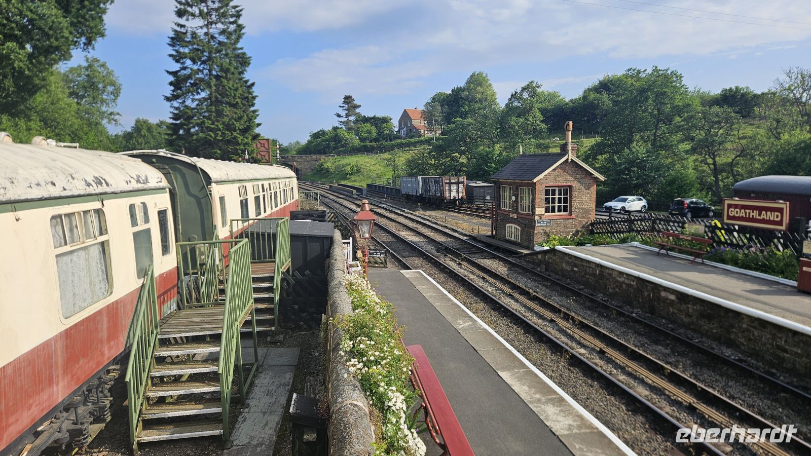 Leider fährt unser Hogwarts Zug heute nicht und so fahren wir mit unserem Ritter durch den beeindruckenden North Yorkshire Moors Nationalpark und sehen ganz viele Schafe auf unserem Weg nach Goathland. In der wunderbaren Landluft gehen wir zuerst zu unserem Cream Tea. Für einige ist es der erste British Tea und Scones. Die Frage ist nur, ob zuerst die Creme oder die Marmelade. Viele probieren beide Varianten. Zu unserer großen Freude sind die Scones sehr lecker. Danach kommt es noch zu einer kurzen Shopping- Eskapade im anliegenden Shop. Das ist aber auch alles wirklich niedlich! Nun gut gestärkt gehen wir in Richtung Bahnstation.