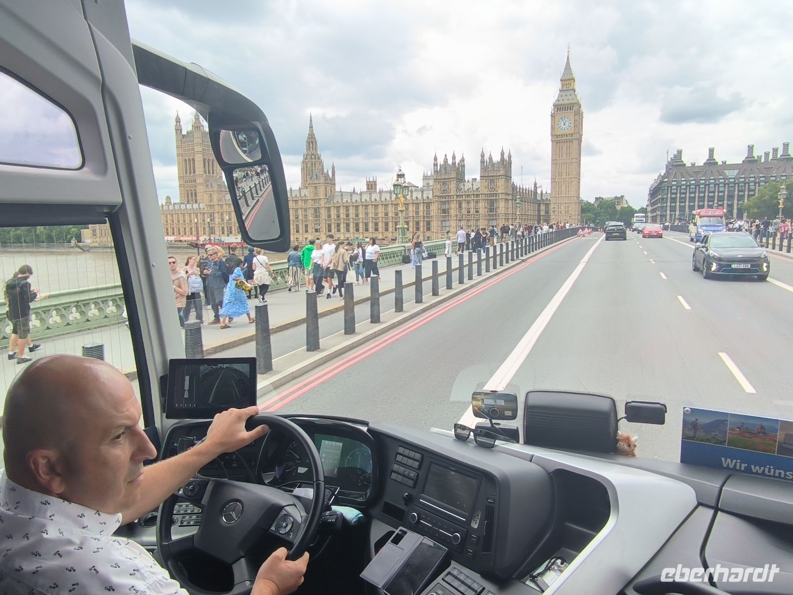 Mehrfach überqueren wir die Themse, bevor wir uns individuell der Stadt widmen. Ob Fanshops, Buckingham Palace, China Town oder Covent Garden - die Stadt bietet für jeden etwas. Geschafft treffen wir uns dann im Bus wieder und erreichen am Abend unser Hotel. Der Bezug der Zimmer geht nicht so zügig wie erhofft, aber dann treffen wir uns zum Abendessen wieder und lassen den Tag gemeinsam ausklingen.