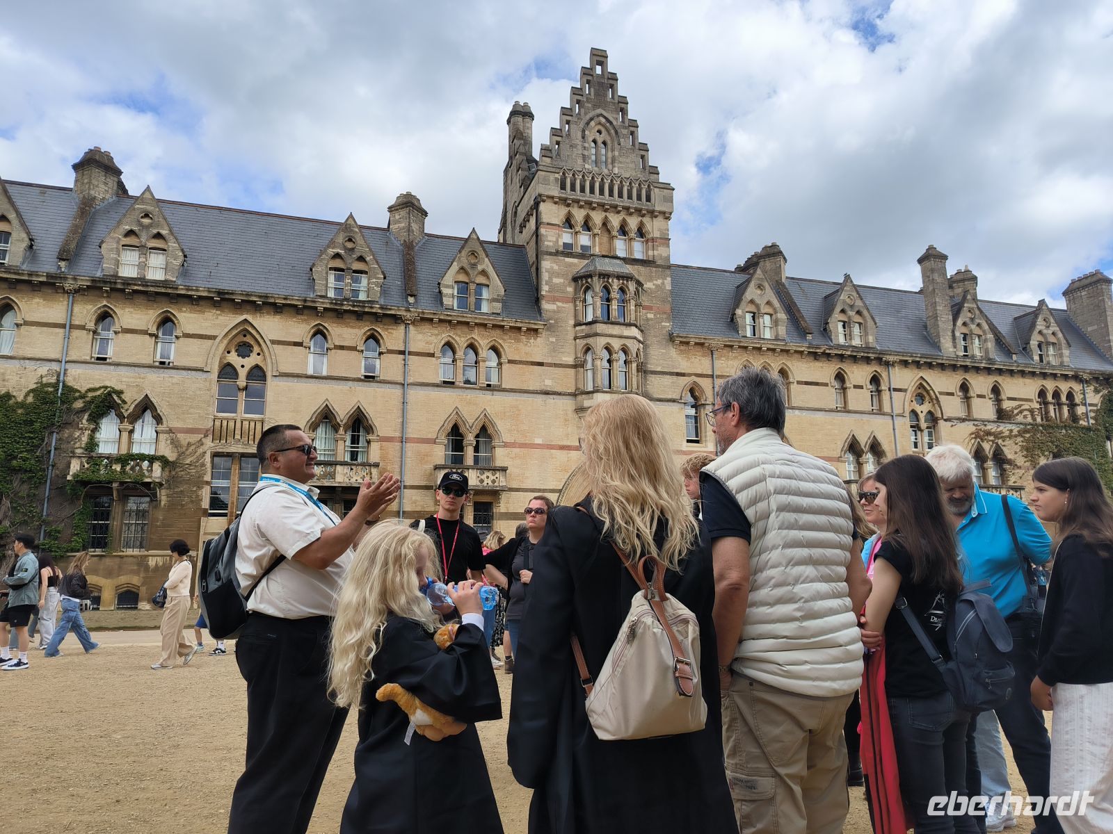 Von diesem College hat jeder schon einmal gehört. Viele Prominente gehören zu den Absolventen. Und hier wurden auch Szenen für die Harry Potter Filme gedreht. Unser Tag beginnt im Christchurch College in Oxford mit einer ausführlichen Besichtigung. Wir steigen die große Treppe hinauf und verstehen, wie der Speiseraum als Inspiration für die Halle in Hogwarts dienen konnte. Und vielleicht möchte der/die eine oder andere hier auch einmal Schüler sein. Unsere beiden Stadtführer Susanne und Ian geleiten uns mit interessanten, unterhaltsamen und wichtigen Informationen durch die berühmte Universitätsstadt. Am Nachmittag haben wir noch Gelegenheit, diese individuell zu erkunden, ob auf dem Kirchturm oder im Pub, dem botanischen Garten oder einer Ausstellung.