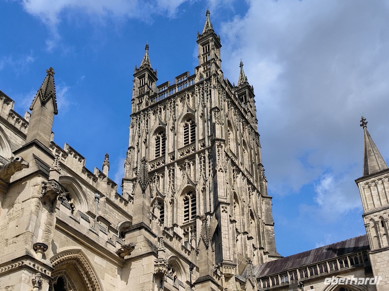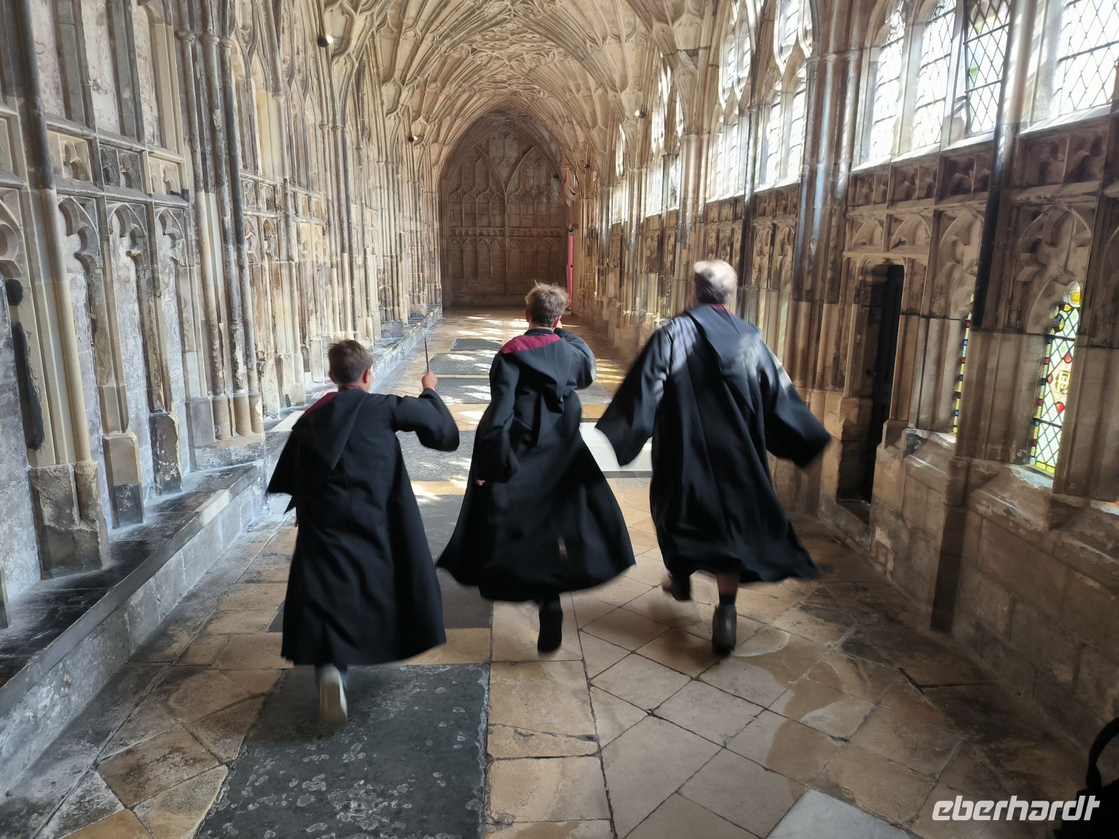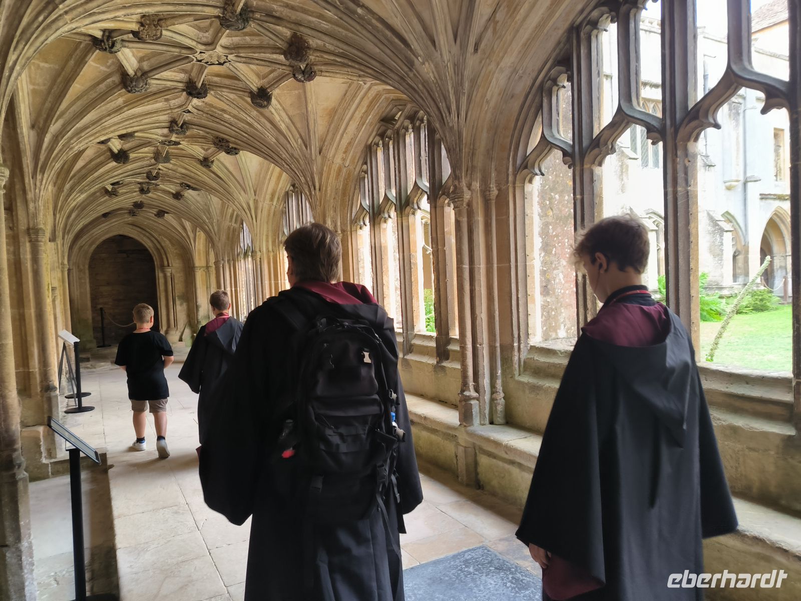 Nur eine kurze Fahrt später halten wir in Gloucester. Die Kathedrale überragt die Stadt und ihr Inneres überwältigt uns. Bunte Bleiglasfenster, eine kunstvoll gestaltete Orgel und viele Grabmale sind hier zu besichtigen. Unser Highlight aber ist der Kreuzgang, in dem viele Szenen in Hogwarts gedreht wurden. Wir haben viel Spaß bei unserer Foto-Session und drehen auch ein paar Videos.