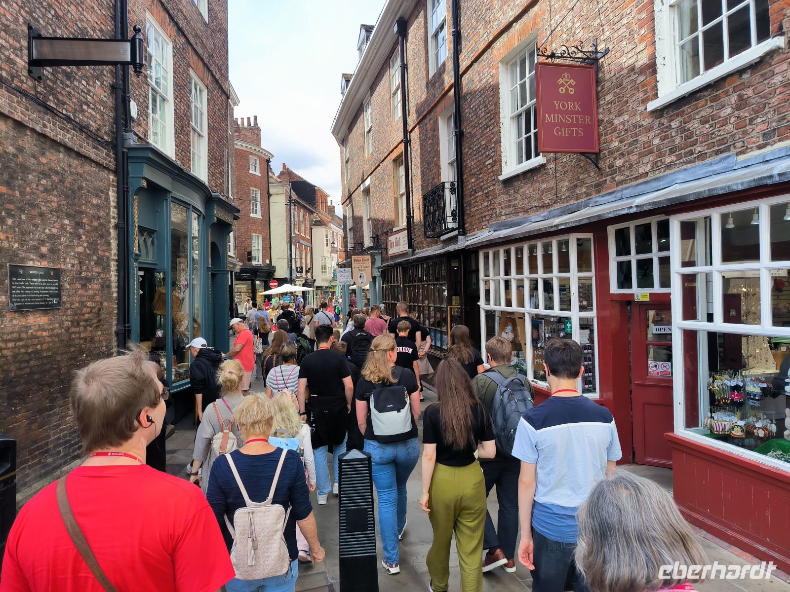 In der schönen Kleinstadt York gibt es neben dem beeindruckenden Münster auch viele kleine, bunte Gassen in der Altstadt. Eine von diesen, the Shambles, soll J.K. Rowling zur Winkelgasse inspiriert haben. Und tatsächlich, die Ähnlichkeit ist nicht zu leugnen. Nach einem informativen Stadtrundgang mit Christine können wir die kleinen Häuser uns Shops individuell erleben. Einige von uns erkunden aber die Stadt nicht von der gut erhaltenen Stadtmauer aus.