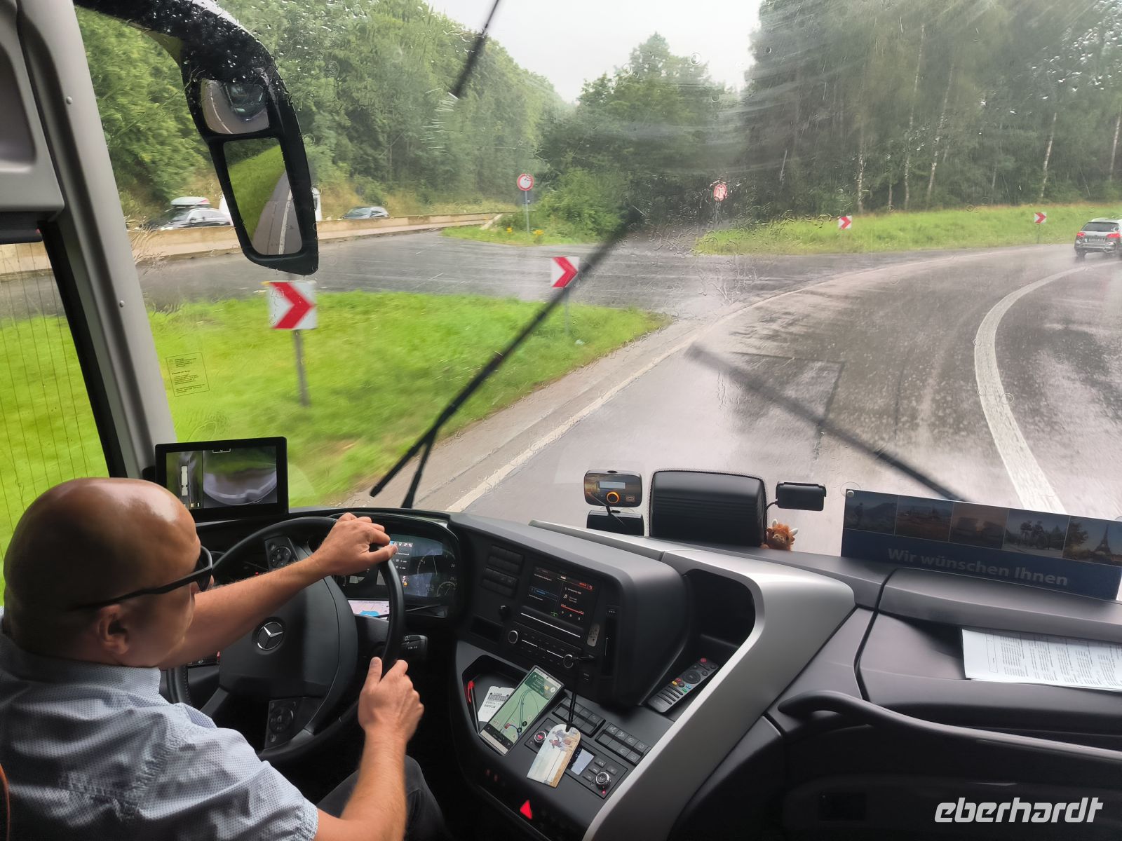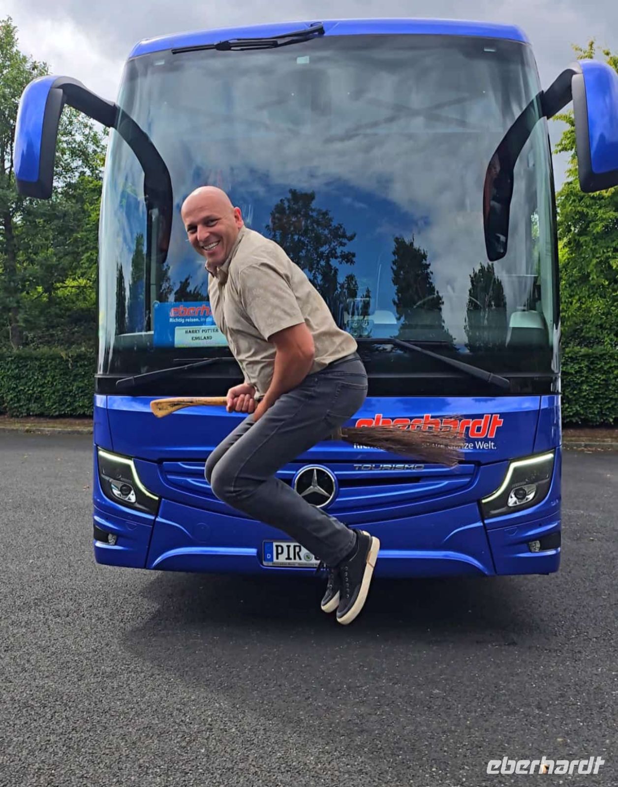 Währenddessen wird unser Busfahrer Daniel von einer Polizeikontrolle auf dem Parkplatz überrascht. Aber kein Problem, alles in Ordnung und auch er kann auf unserem Besen noch seine Prüfung ablegen.