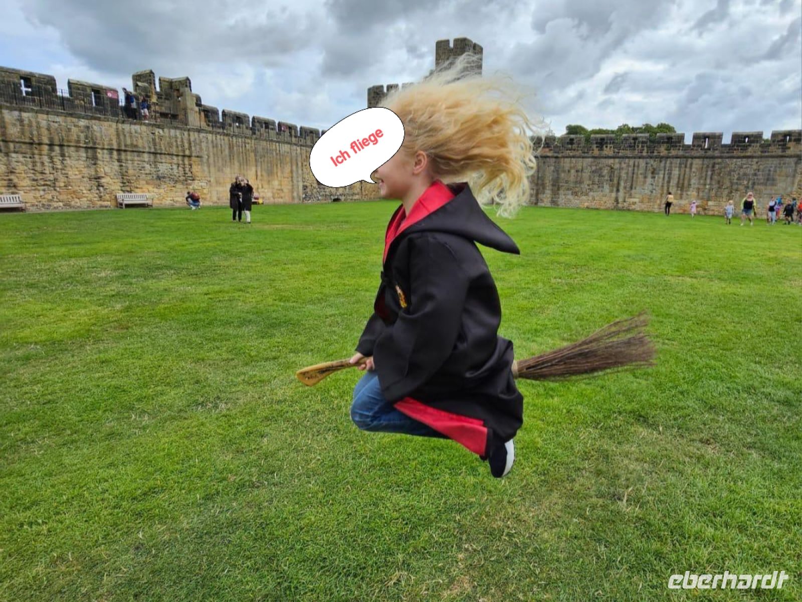 In Alnwick Castle erwartet uns heute noch einmal ein ganz besonderer Höhepunkt. Unser Können im Besenfliegen wird vervollkommnet und auch die Noch-Muggel unter uns absolvieren die Besenflugstunde mit Bravour. Herzlichen Glückwunsch!