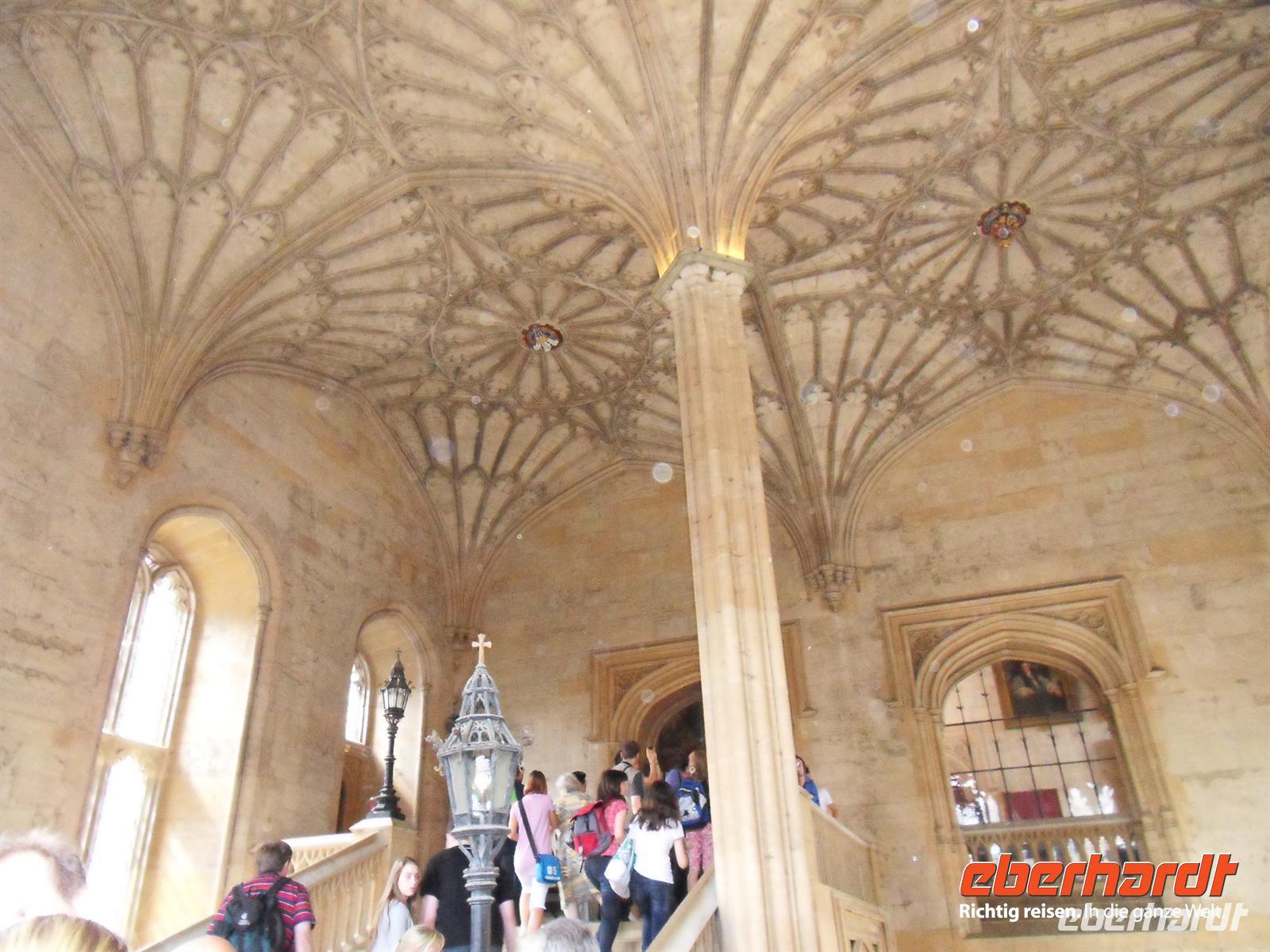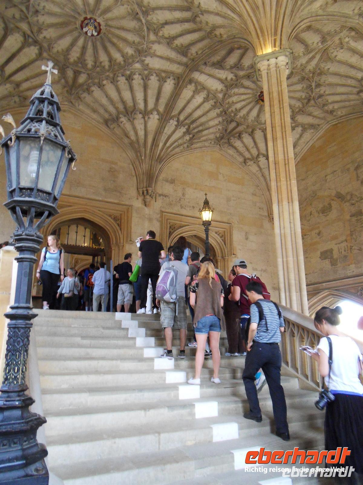 Unser heutiger Weg führte uns zunächst nach Oxford. Dort bekannen wir die Stadtführung mit dem Besuch des berühmten Christchurch Colleges, bei dem sowohl die Vortreppe als auch der Speisesaal als Kulissen für Hogwarts dienten. So stiegen wir wie die Erstklässler die Treppe hinauf, um uns die gewaltige Große Halle anzuschauen. Hier war die Decke leider nicht so verzaubert, dass sie aussah wie der Himmel draußen, dafür machte der Raum durch die Wandtäfelung, die zahlreichen Gemälde und Kamine aber einen sehr gemütlichen Eindruck. Sogar einen am Ende des Raumes etwas erhöht stehenden Tisch für die Lehrer gibt es hier. Danach besuchten wir auch die dem College zugehörige Kirche und unsere Stadtführerinnen Lore und Karin erklärten uns mehr über den Universitätsalltag in Oxford. Vorbei an der Radcliffe Camera und der Bodleian-Bibliothek, die ein Exemplar jedes in Großbritannien veröffentlichten Buches besitzt & auch als Krankenflügel- und Bibliotheksdrehort für die Harry Potter-Filme diente, ging es weiter in die Innenstadt, die wir dann auf eigene Faust erkunden konnten, bevor wir am Nachmittag wieder nach London fuhren. Dort hatten wir dann Freizeit in der Nähe des Hyde Park, so dass der Weg zum Hard Rock Cafe, Harrods und dem Buckingham Palace nicht weit war. Den Tag beschlossen wir bei einem leckeren Essen im Amata-Restaurant in den Docklands.