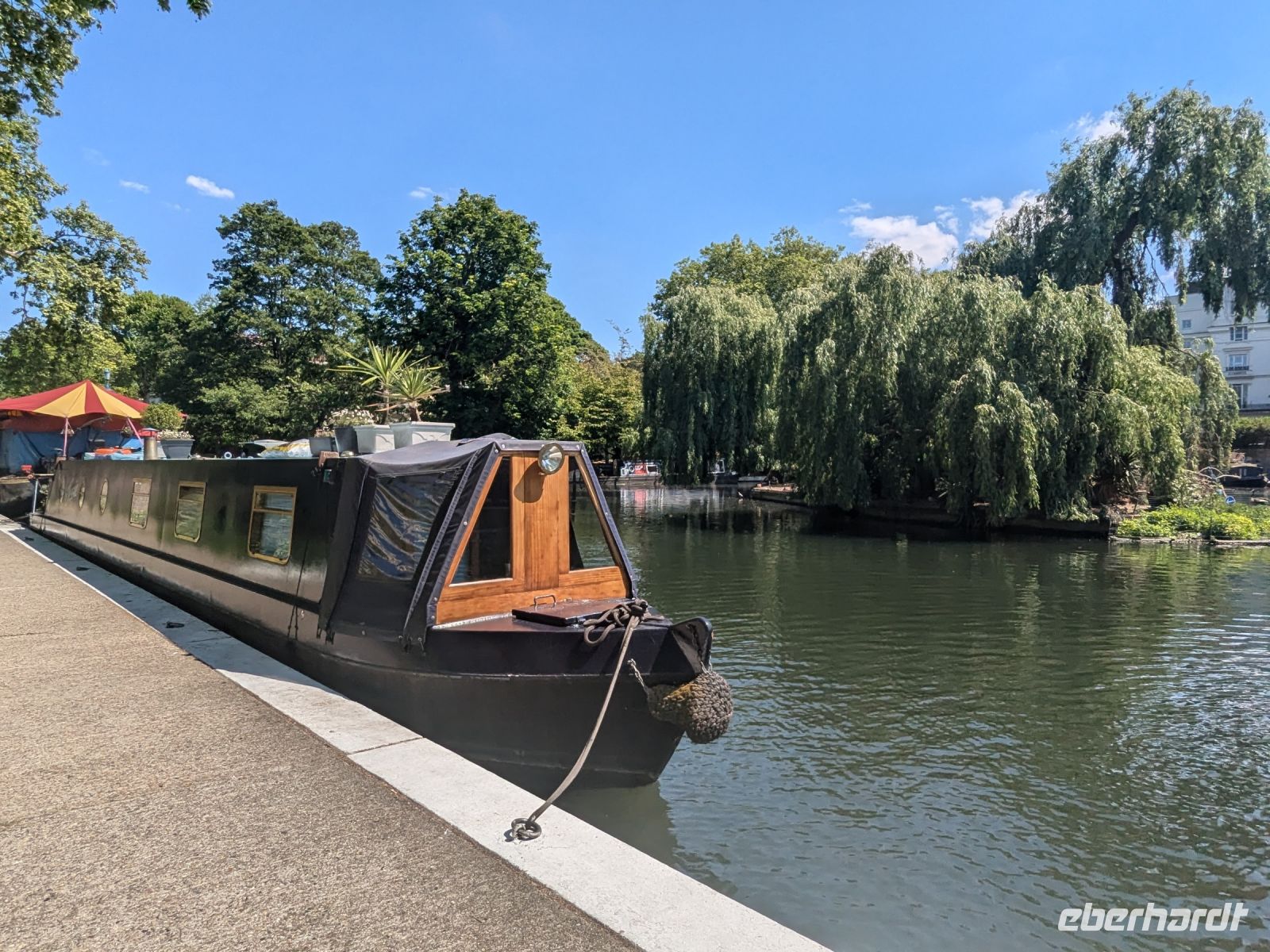 Anschließend erwartete uns eine Bootsfahrt auf dem Regent’s Canal von Camden Lock bis Little Venice. Unser Guide erzählte uns Anekdoten zu den Villen am Ufer, während wir die ruhige Fahrt, Entenküken und die charmanten Hausboote genossen.