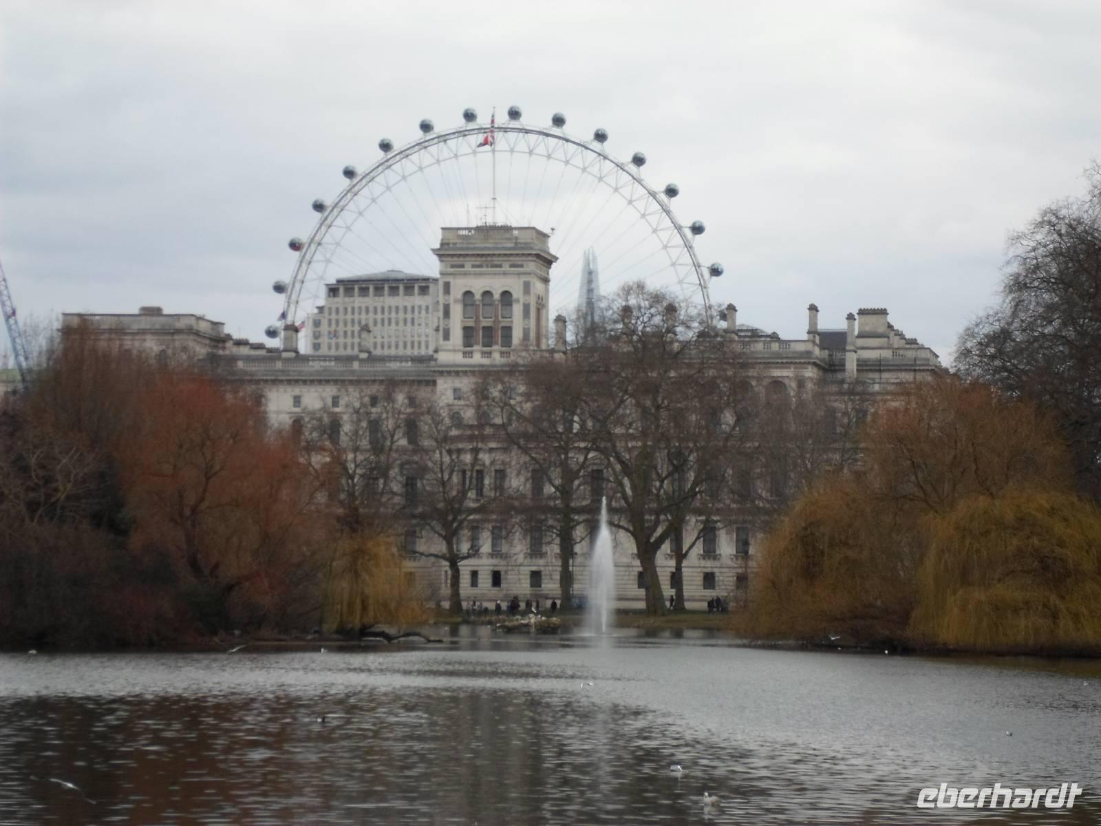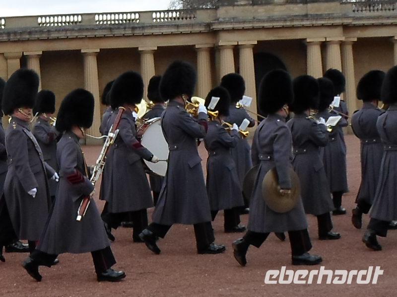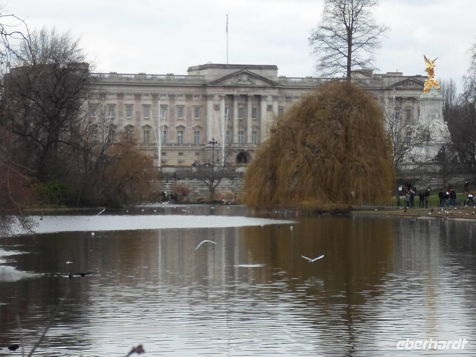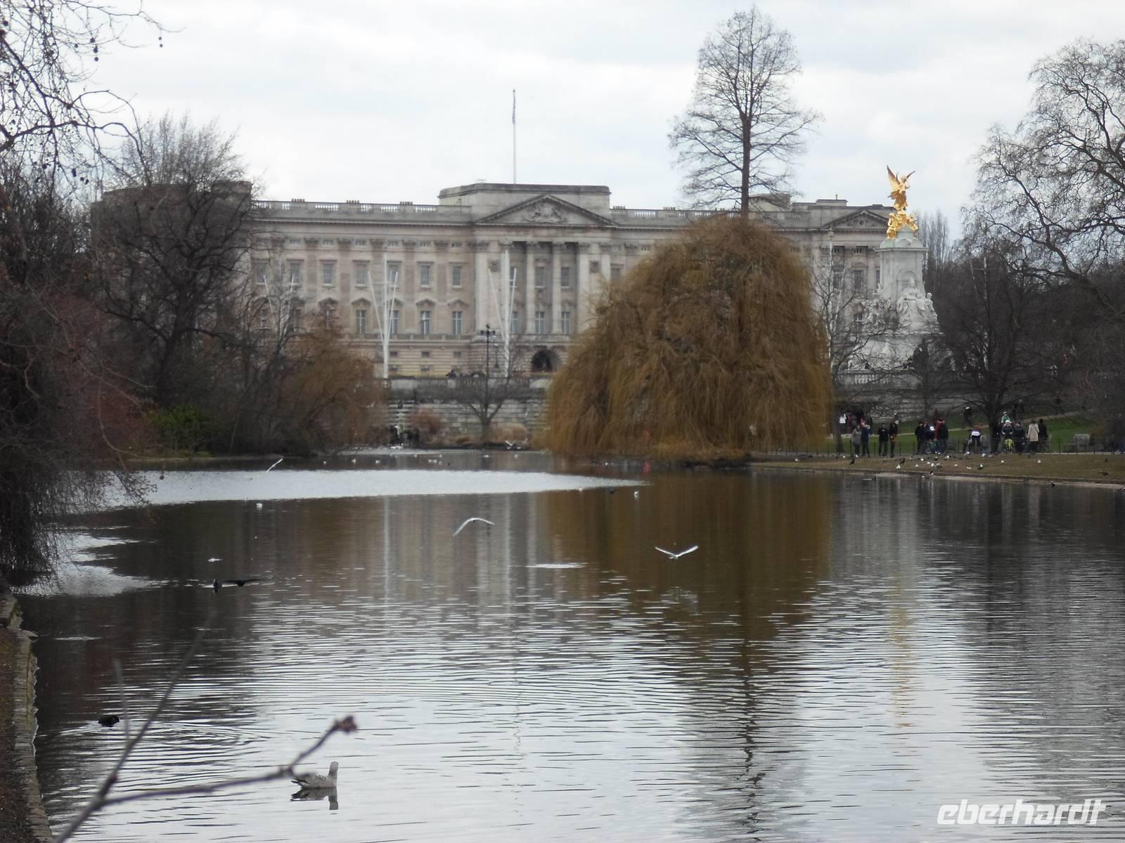 Wir laufen weiter durch den Stadtteil White Hall, der den ehemaligen Regierungspalast mit gleichem Namen beherbergt, gehen über dessen Paradeplatz, der für „Trouping the Colour" - die Feierlichkeiten anlässlich des Geburtstages der Königin im Juni genutzt wird. Schon wieder sehen wir einen Park - den St. James Park, der White Hall mit dem Buckingham Palast verbindet.