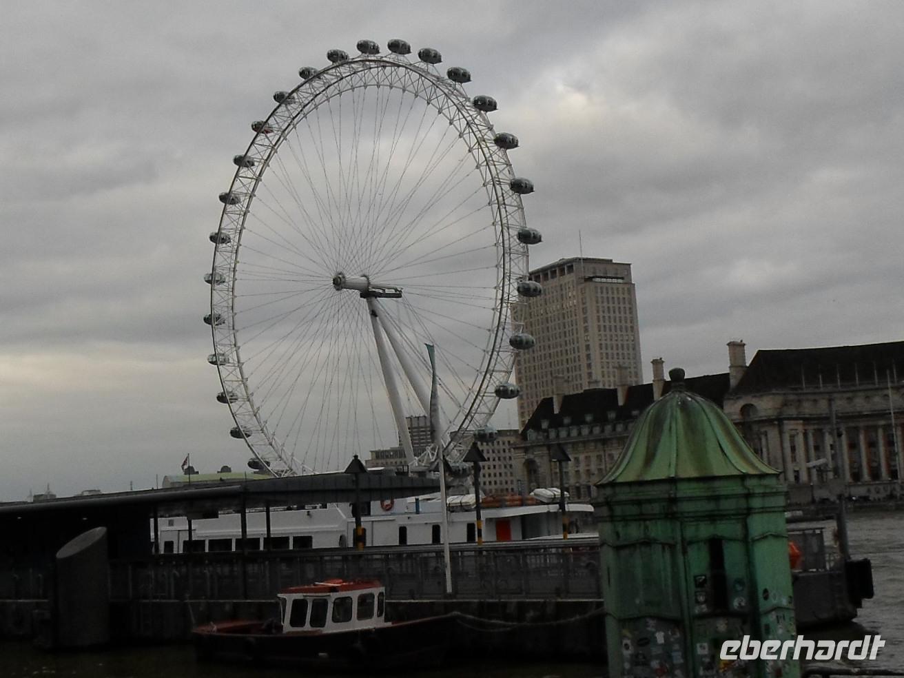 Entlang der Themse fahrend sehen wir schon das London Eye - das weltgrößte Riesenrad mit seinen Besucherkabinen aus Glas, die wie ein Ei aussehen. Von ihnen hat man einen wunderbaren Blick hinüber auf die Parlamentsgebäude mit dem Glockenturm Big Ben und auf die Westminster Abtei - die Krönungskirche der englischen Könige - die Trauungskirche von Wilhelm und Kath. Hier sind die Sarkophage von Elisabeth I. und Maria Stuart. Außerdem finden wir viele berühmte Namen von Wissenschaftlern wie Charles Darwin, Kopernikus oder von Poeten und Musikern wie Georg Friedrich Händel auf den Grabplatten.Von hier aus ist es nicht weit zum Gelände der ehemaligen Weltausstellung gefördert durch Prinz Albert von Sachsen, Gotha und Coburg- dem Prinzgemahl von Königin Victoria, die fast 70 Jahre lang regierte. Hier in der Exihibition Road finden wir das Victoria und Albert Museum, den Albert Court, die Royal Albert Hall, das Albert Memorial und viele große Museen, wie das Wissenschaftliche Museum oder das Naturkundemuseum. Ein weiterer Höhepunkt eines London Besuches ist Madam Tussaud, das Wachsfigurenkabinett. Aber dafür reicht unsere Zeit während eines Kurzbesuches kaum. Es ist soviel zu sehen, dass wir einfach noch einmal nach London kommen müssen.