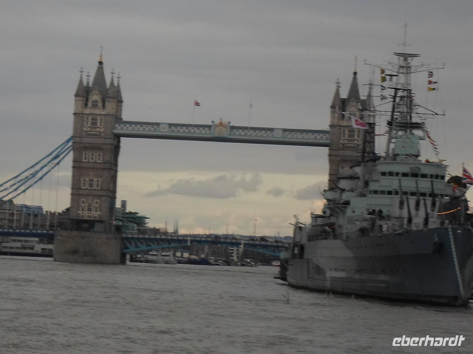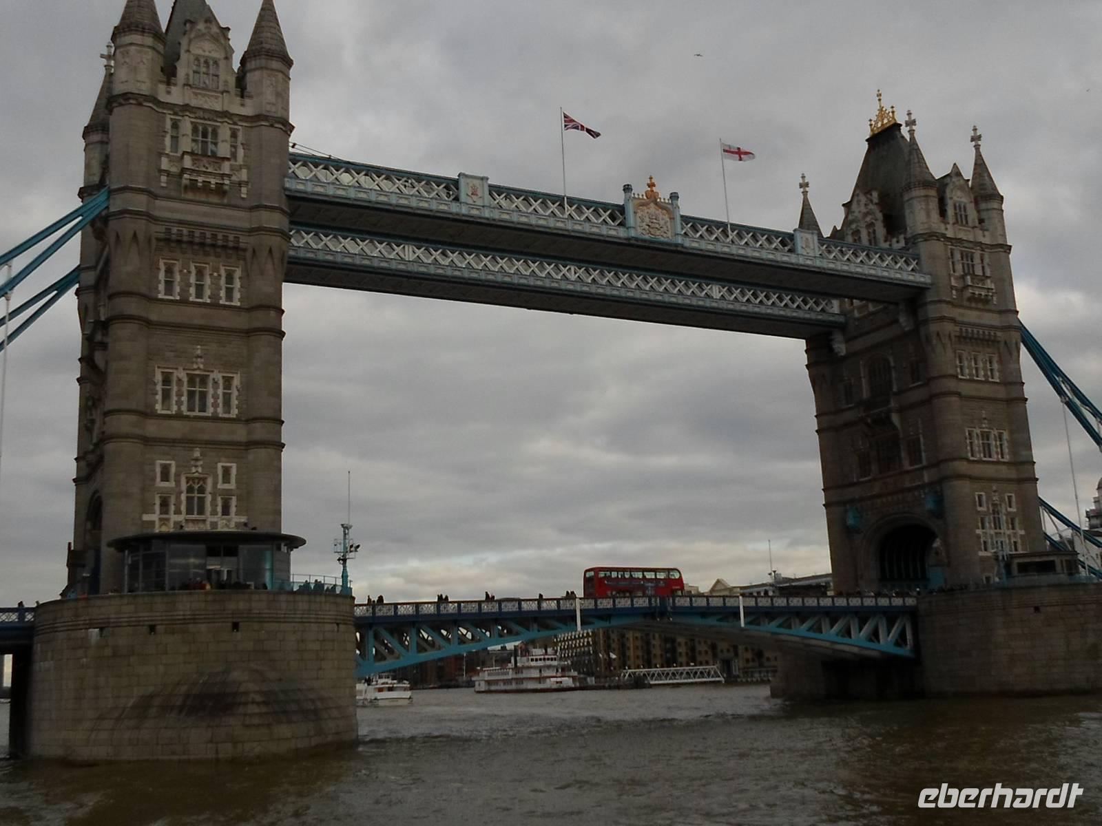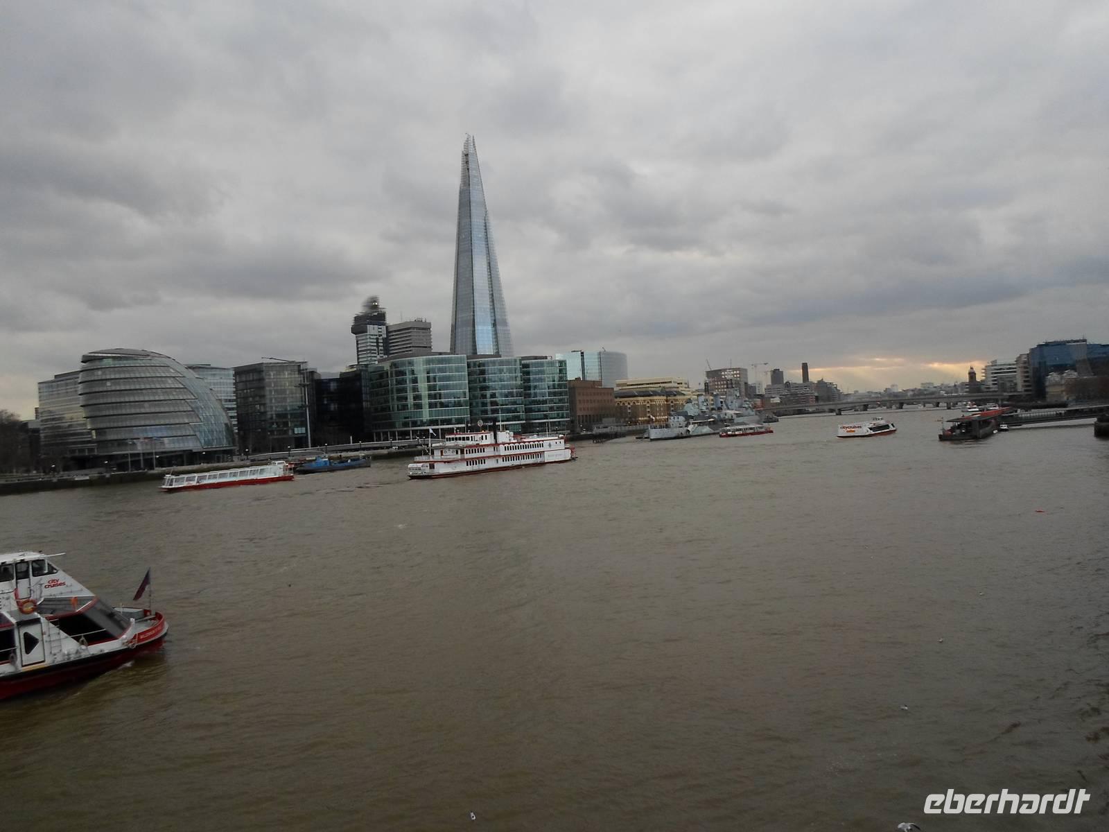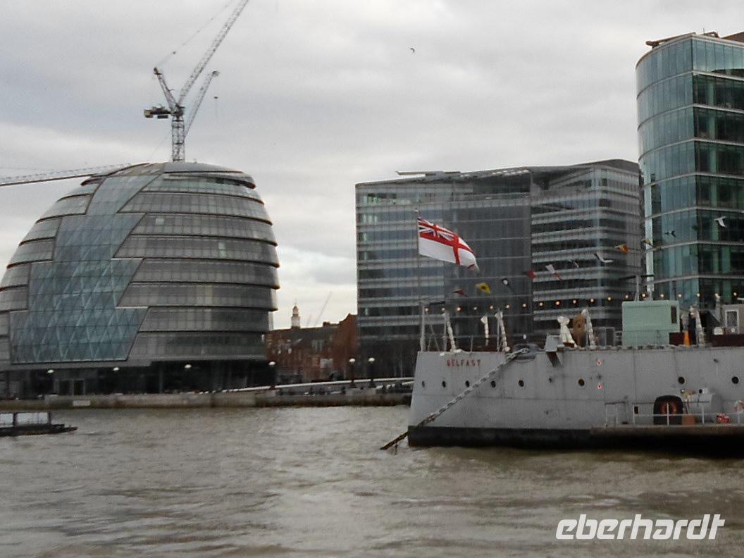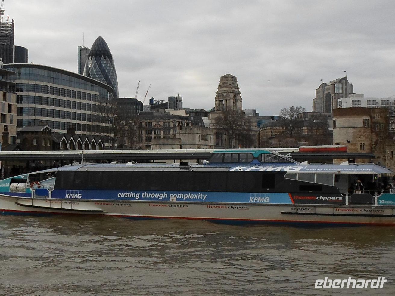 Einfach toll ist die Bootsfahrt auf dem Themse zurück nach Westminister am London Eye, der St. Pauls Kathedrale, der Tate Galerie, dem Shakespiere Theater,dem Tower, unter der Tower Bridge hindurch, vorbei an den herrlich restaurierten und modernisierten alten Werftanlagen.
