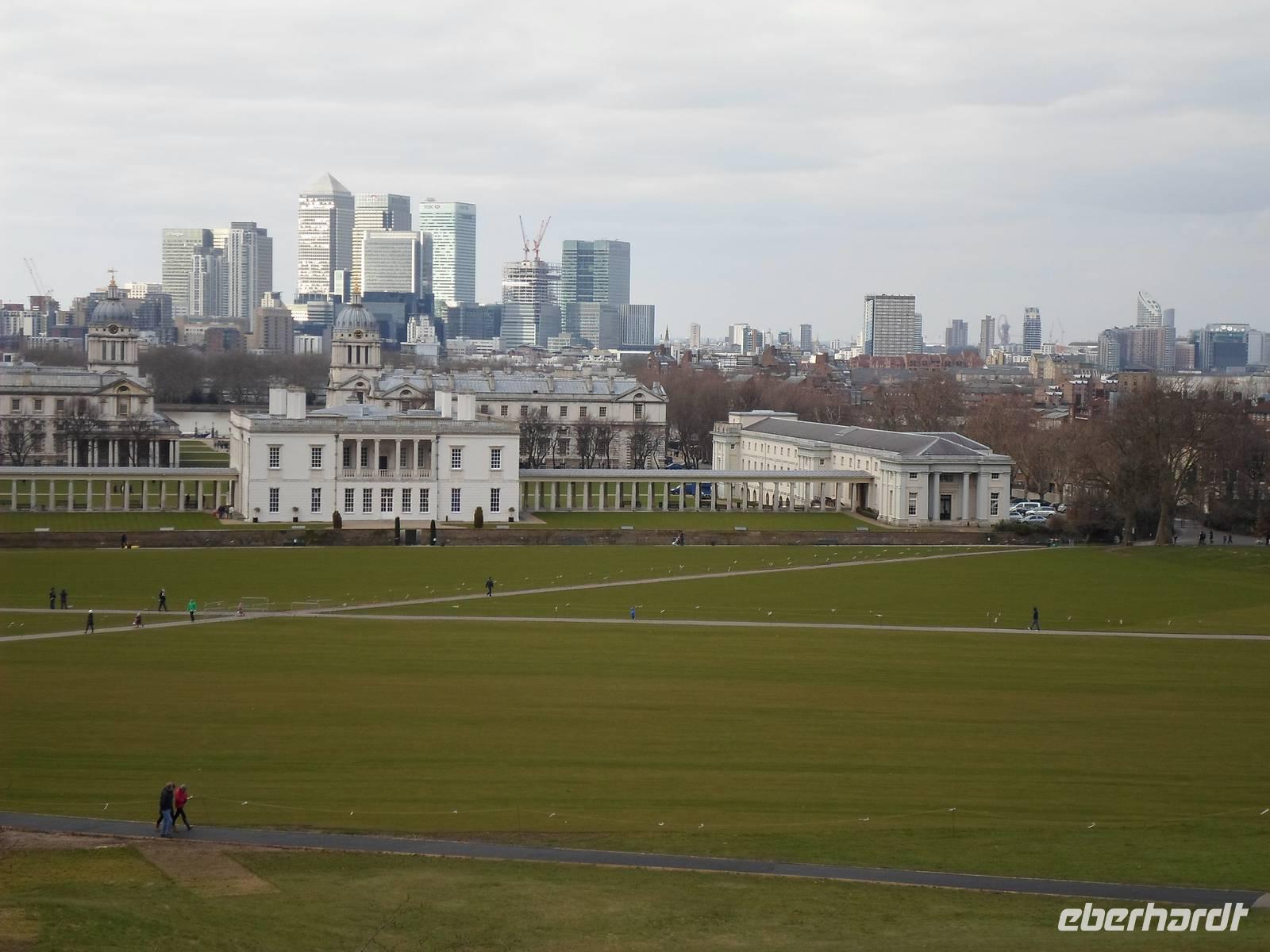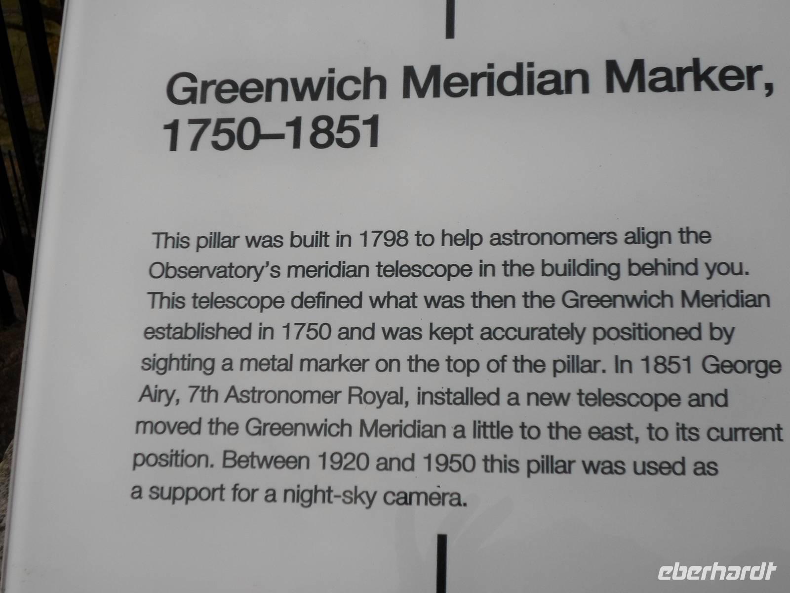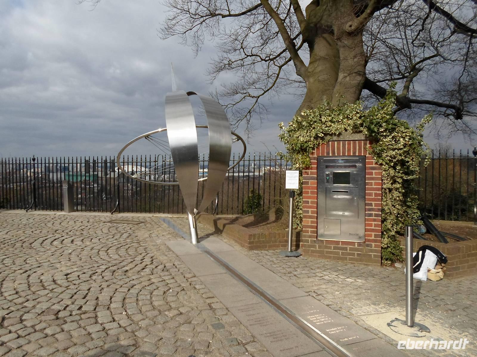 Vorbei an Sankt James Palace, durch den gleichnamigen Park, durch Queen Ann's Way geht es zu einem Publunch. Ausgeruht und gestärkt setzen wir unseren geführten Spaziergang mit unserer Reiseleiterin fort. Wir fahren nach Greenwich. Dort angekommen lassen wir uns die Möglichkeit nicht entgehen, den Hügel hinauf zum Observatorium zu laufen. Hier ist der, durch einen Laserstrahl symbolisiert Nullmeridian, das Fotomotiv. Wer hat schon die Möglichkeit mit einem Bein auf der Ost- und mit dem anderen Bein auf der Westhalbkugel unseres Erdballs zu stehen.