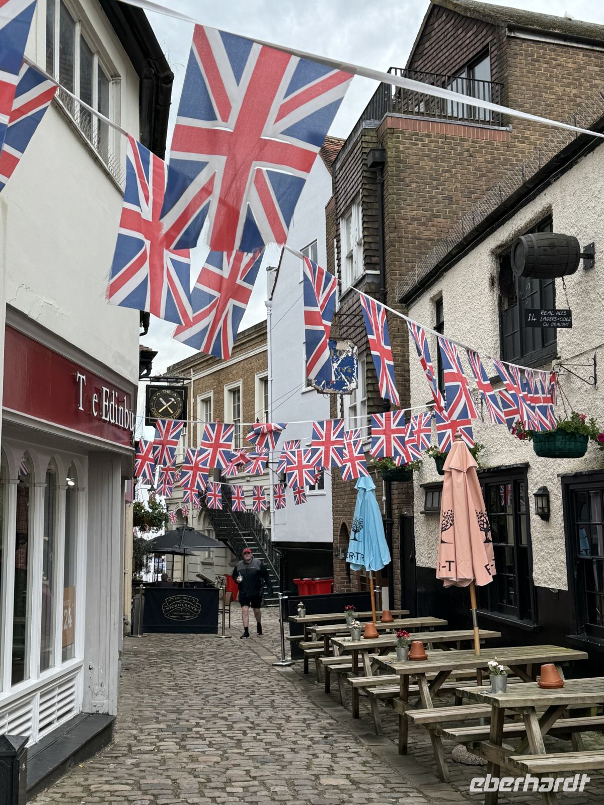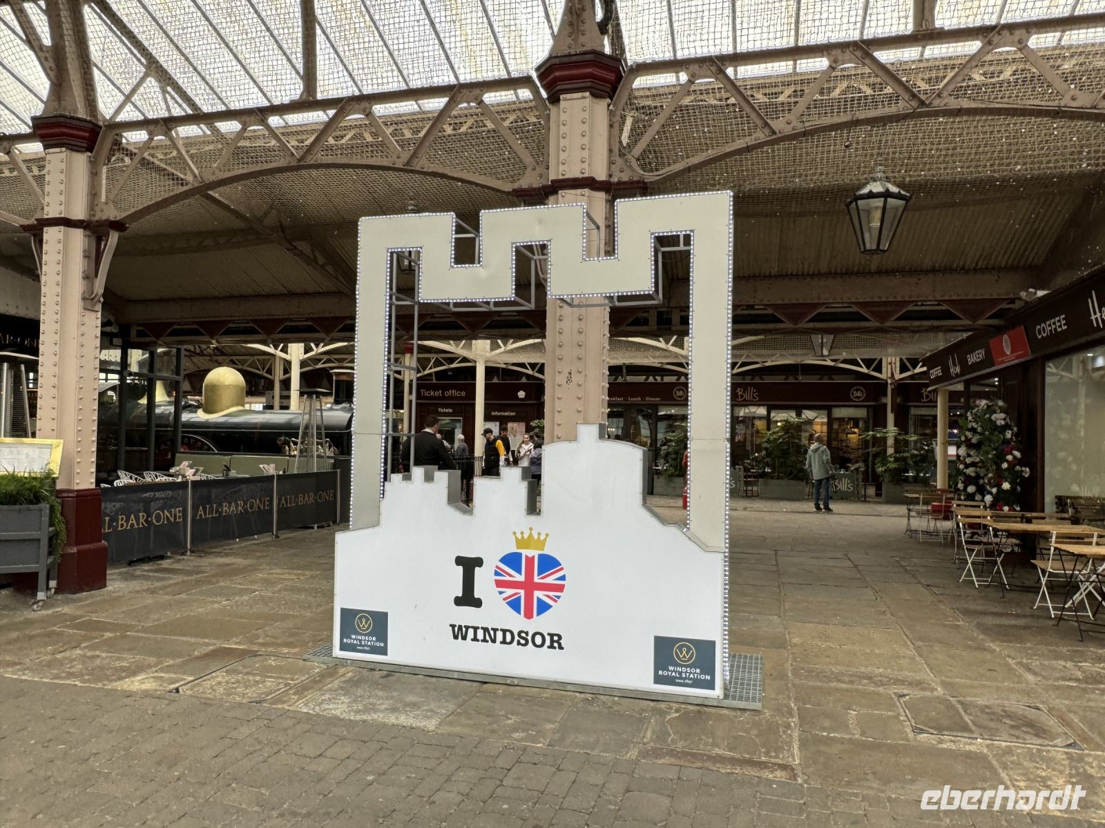 Wir nehmen es sportlich uns schauen uns dafür das ganz Gelände drumherum an. Windsor ist wirklich hübsch anzusehen. Wir schlendern durch die kleine Gassen und gucken uns die dort typischen Häuser an entlang der alten Royal Trainstation an.
