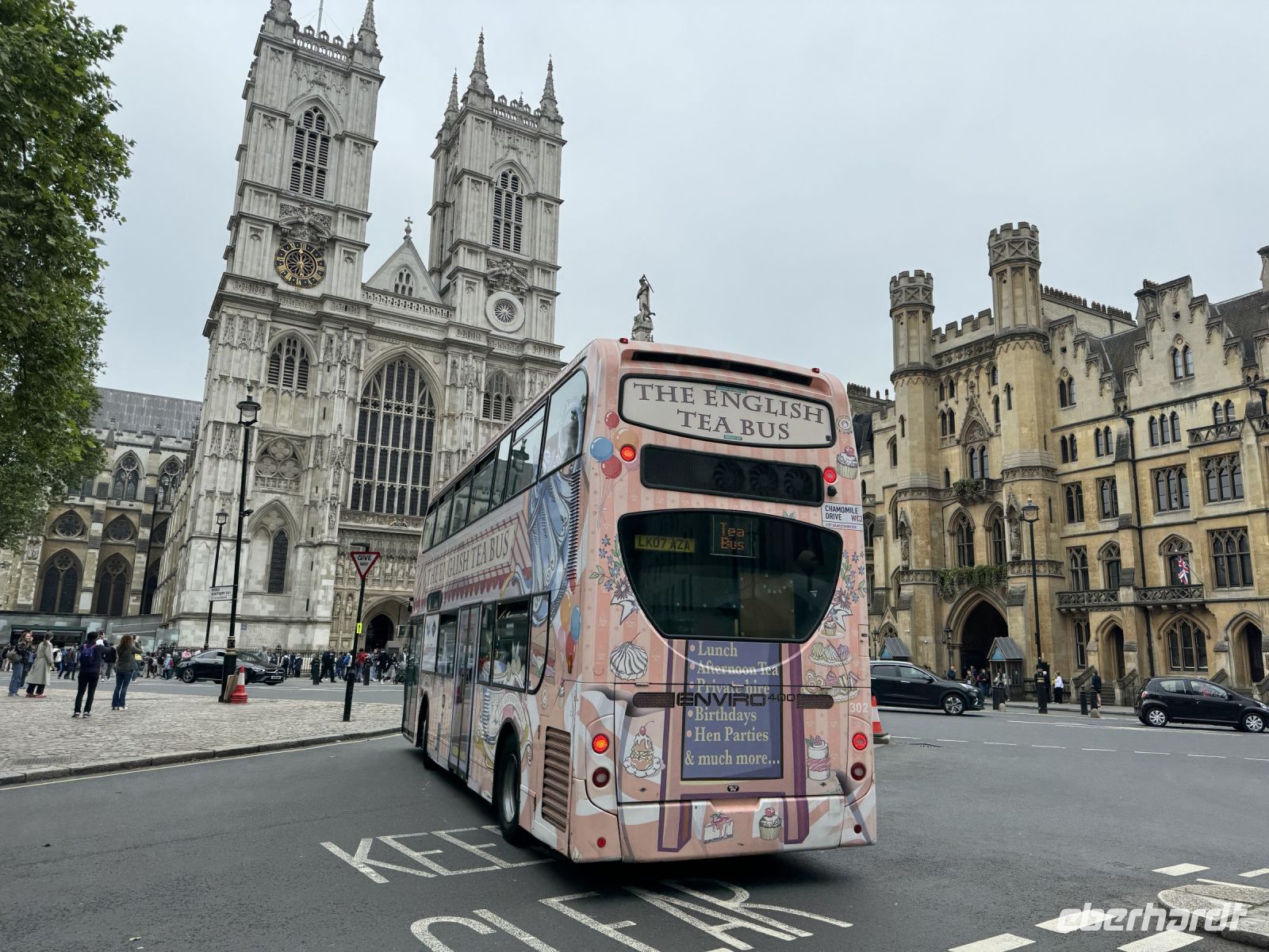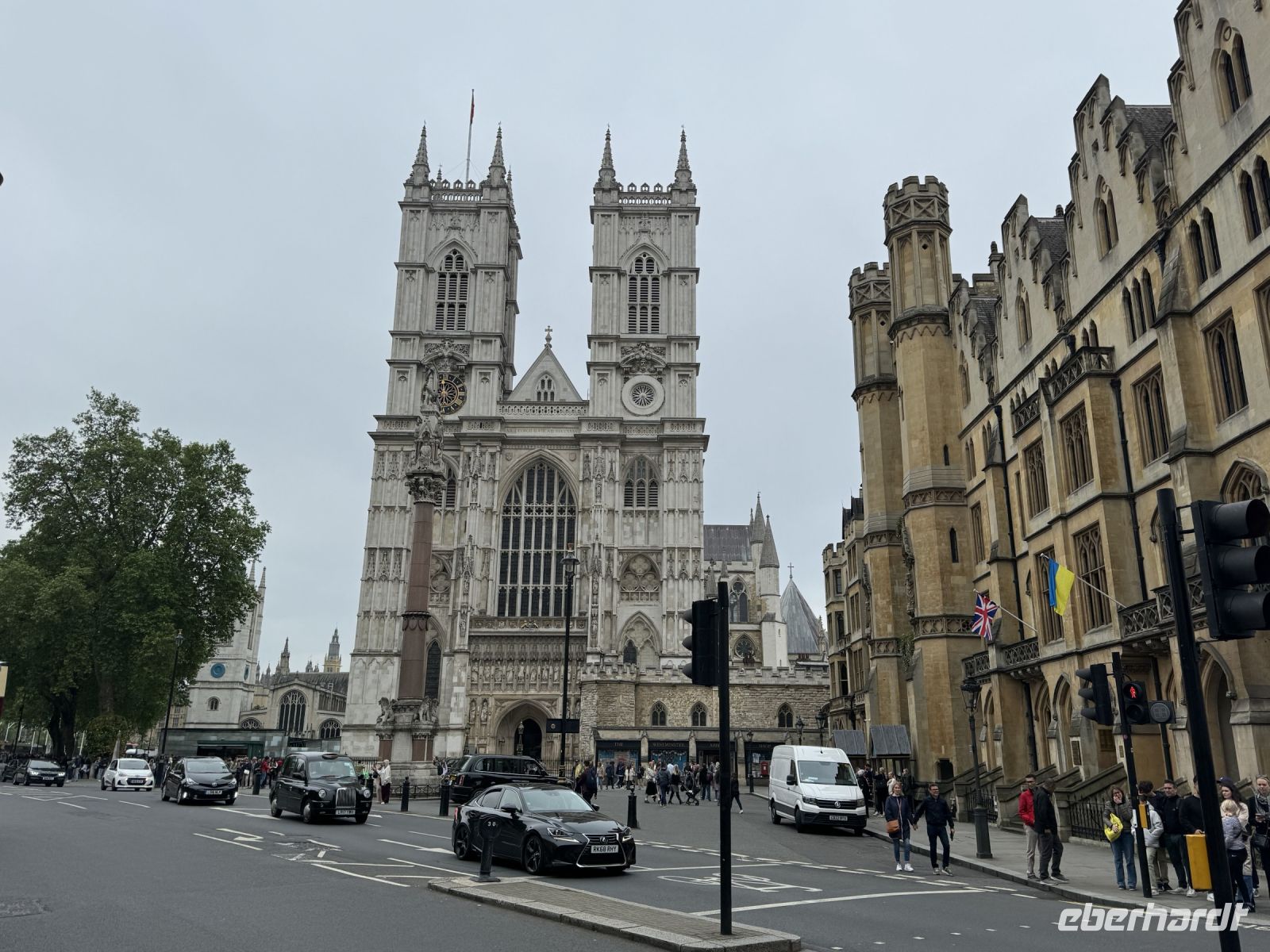 Vorbei an Clarencehouse geht es zurück zum Bus und wir fahren bis Westminster Abbey. Auch hier laufen wir ein Stück und warten gespannt mit vielen anderen bis um Punkt 12 Uhr die riesige Glocke im Big Ben schlägt.