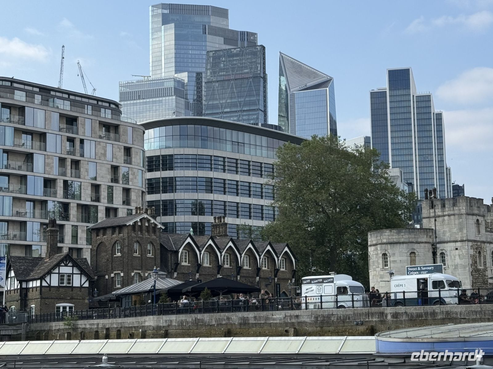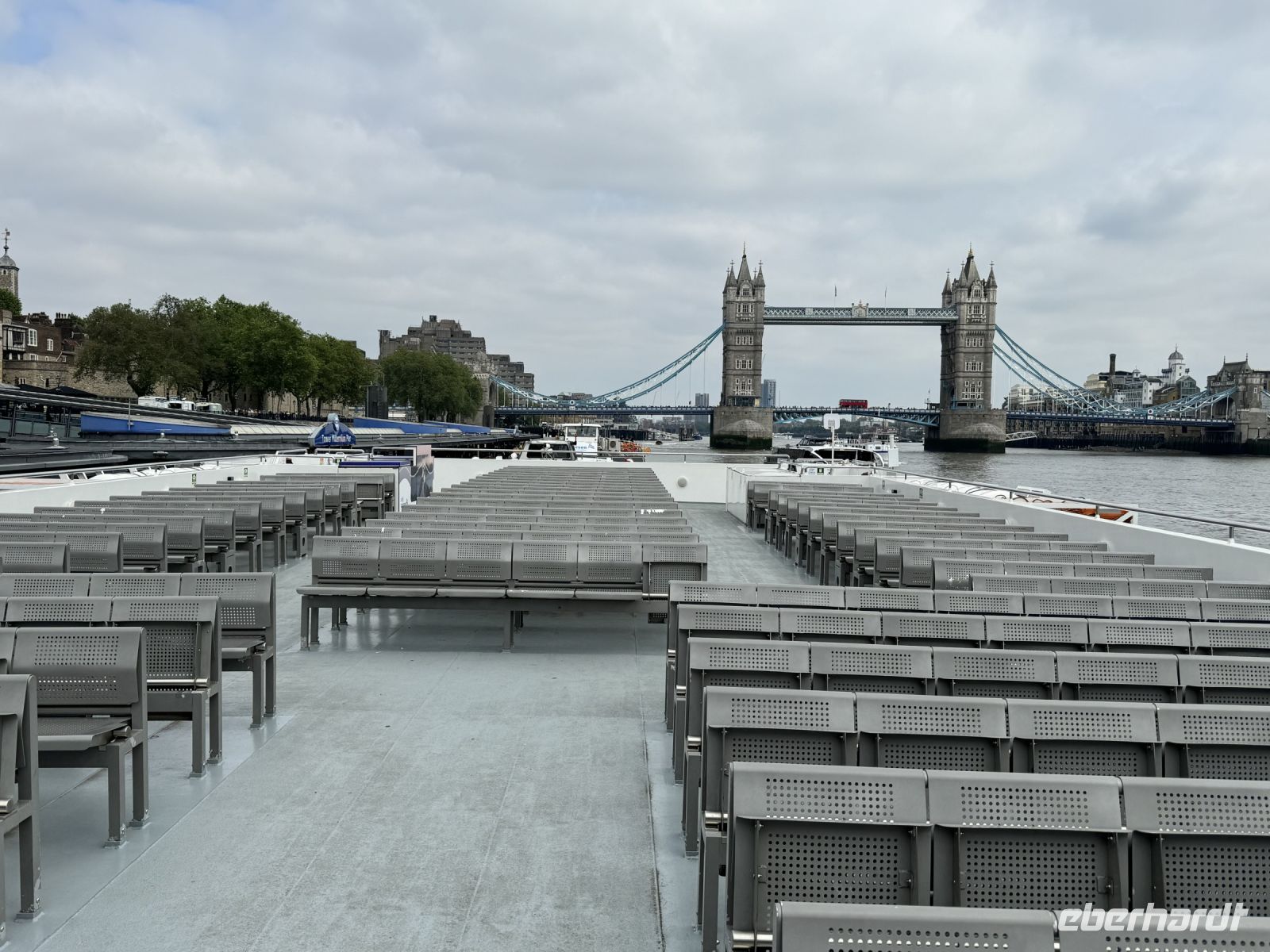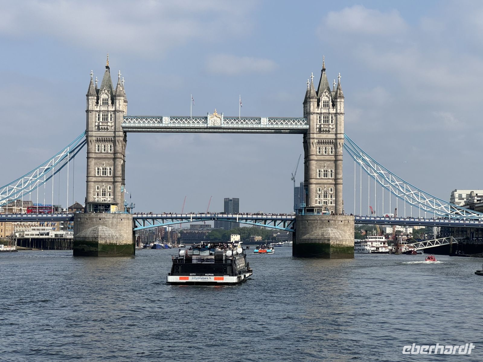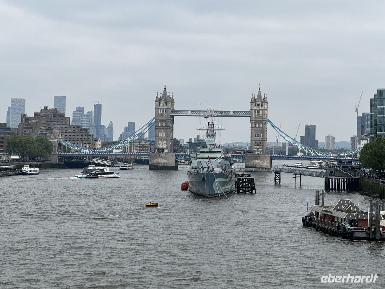 Zu schön, wie wir genau auf die Towerbridge zufahren. Wir erhalten ausführliche Erklärungen was sich links und rechts des Ufers befindet. Zu Wasser sieht London nochmal ganz anders aus.
