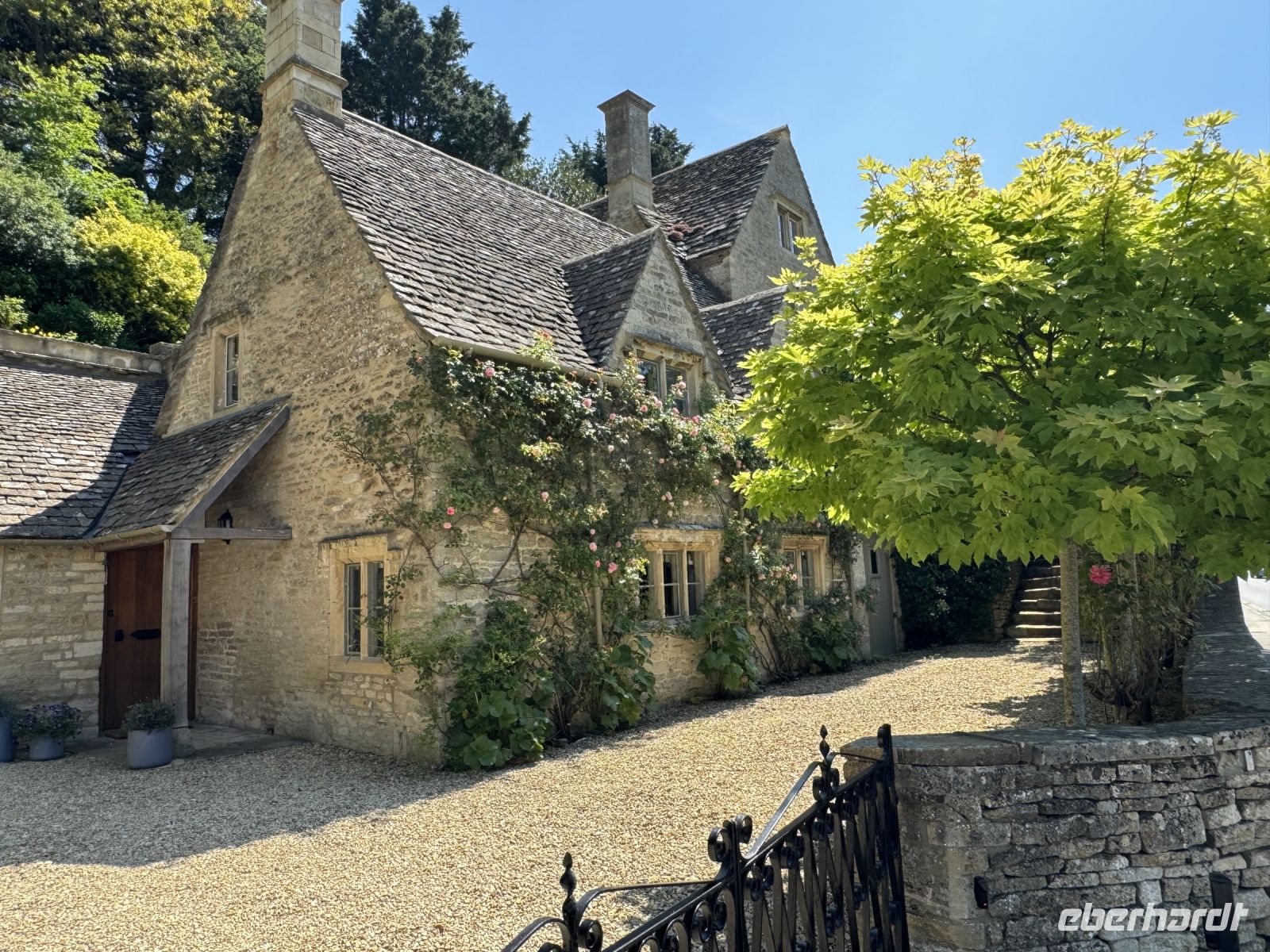 Auf unserem Weg sehen wir die ersten goldgelben Häuser und es werden immer mehr. Die Farbe stammt vom sogenannten Cotswolds Stein. Ein gelber oolithischer Jurakalk. Dieser Kalkstein war und ist es, der zum Bauen von so fast allem genutzt wurde.
