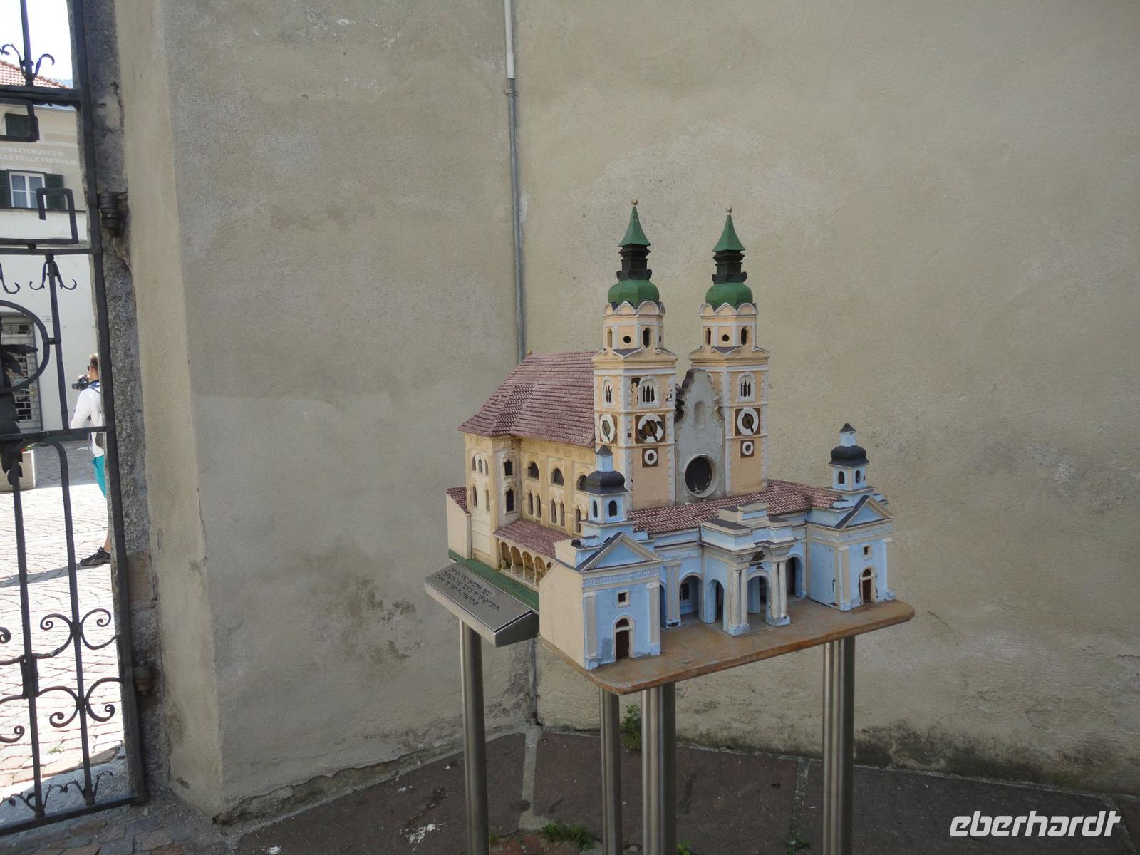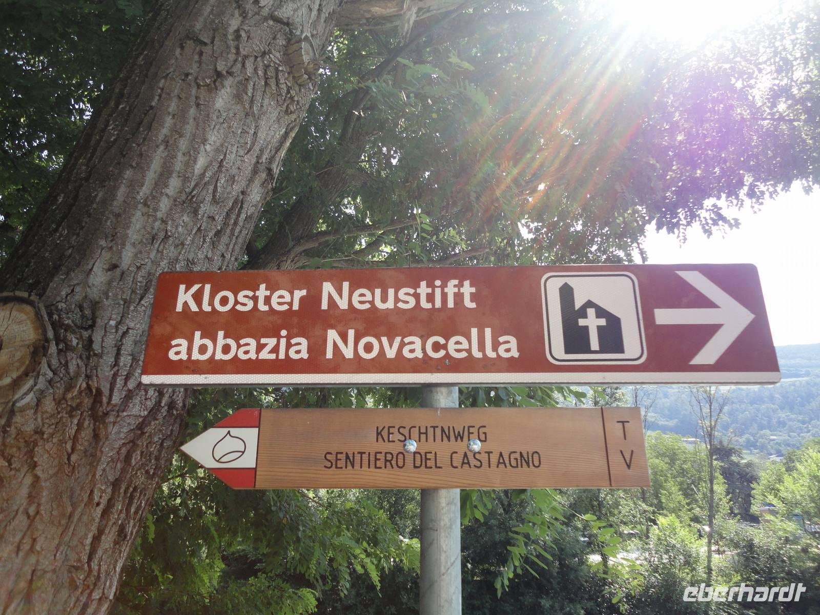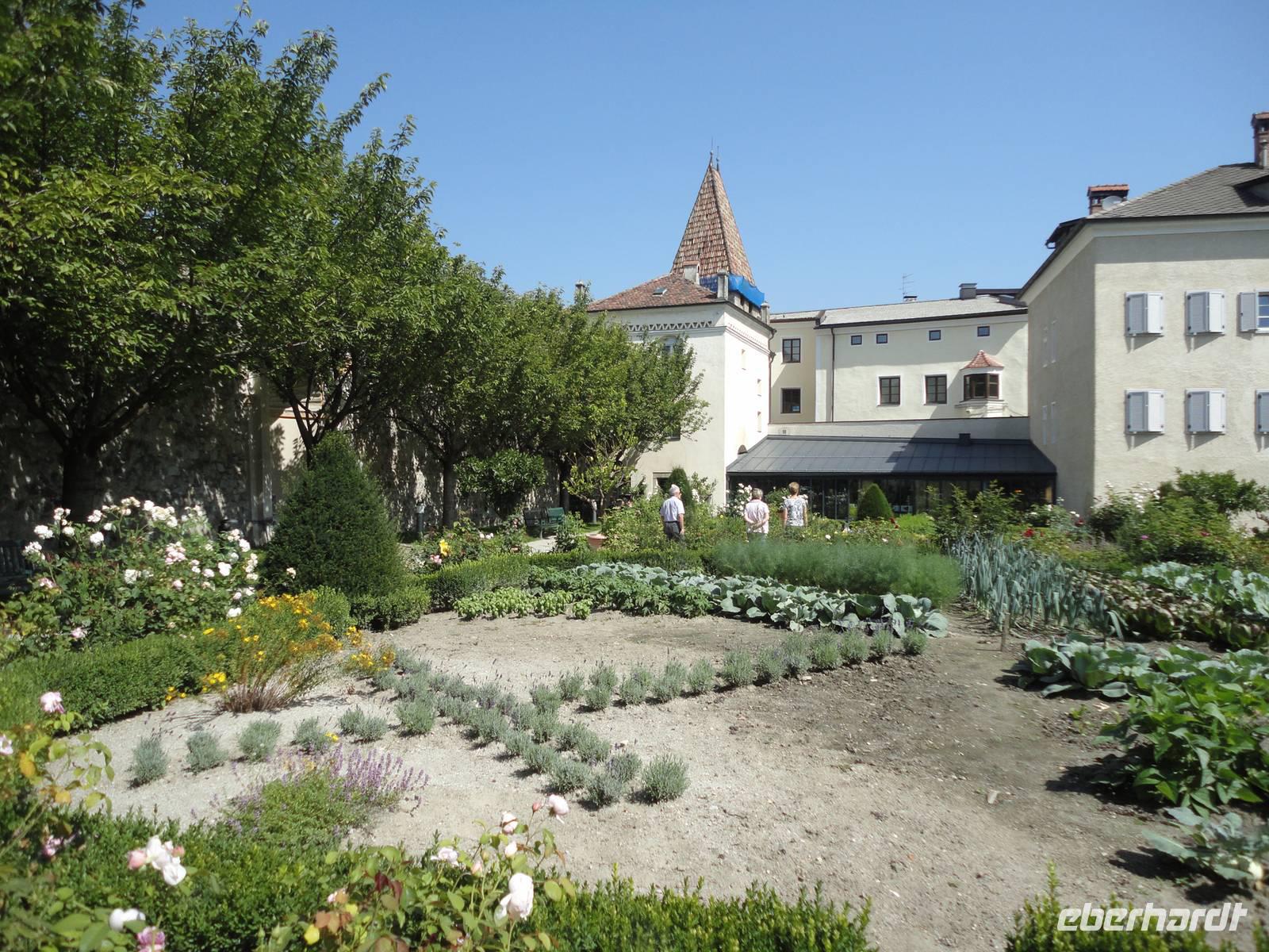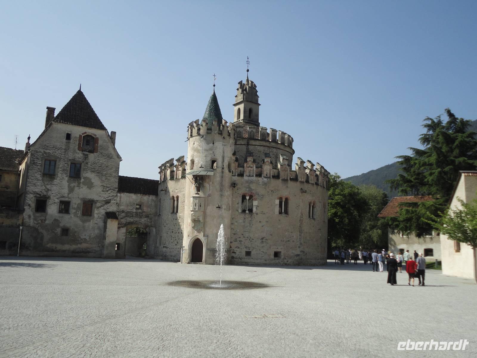 Unseren 2. Urlaubstag begannen wir entspannt gegen halb 8 beim Frühstück. Die Auswahl war erneut überwältigend, für manch einen zu viel am Morgen - wo das Köpfl noch ein wenig schläft. Aber nachdem wir auch unseren geliebten Kaffee oder Tee auf den Tischen erblickt hatten, stärkten wir uns mit den tollsten Leckerbissen. Vor allem das frische Obst bot einen herrlichen Anblick und hat genau so lecker geschmeckt, wie es aussah. Nachdem Johanna und Sieglinde - unsere örtlichen Reiseleiterinnen - gut und munter in Bruneck angekommen sind, machten wir uns voller Vorfreude auf den heutigen Tag gegen 09:00 Uhr Richtung Brixen auf. Unterwegs legten wir unseren ersten Stopp am Kloster Neustift ein. Die herrliche Landschaft, der reißende Eisack und die wunderschöne Freskenmalerei des Klosters stimmten uns prima ein auf die kommenden Tage. Zwischen 11:00 und 13:00 Uhr zeigte uns Johanna die herrliche Stadt Brixen. Auch hier beeindruckten uns wieder die wunderschönen Fresken, die Architektur und gemütliche Bauweise im Tirol. Das bombastische Wetter und das leckere tiroler Schmauserl war das i-Tüpfelchen auf einem gelungenen Vormittag. Nach der kurzen Weiterfahrt nach Mühlbach und einer kleinen „Zwangspause" für die Wanderer - da wir Radfahrer ja unsere Räder aus dem Eberhardt-Anhänger entladen mussten - starteten wir fröhlich in unsere Radtour. Man muss schon zugeben, einige Meter haben uns ganz schön gefordert, aber wir haben uns nicht immer vom steilen Anstieg überwältigen lassen.