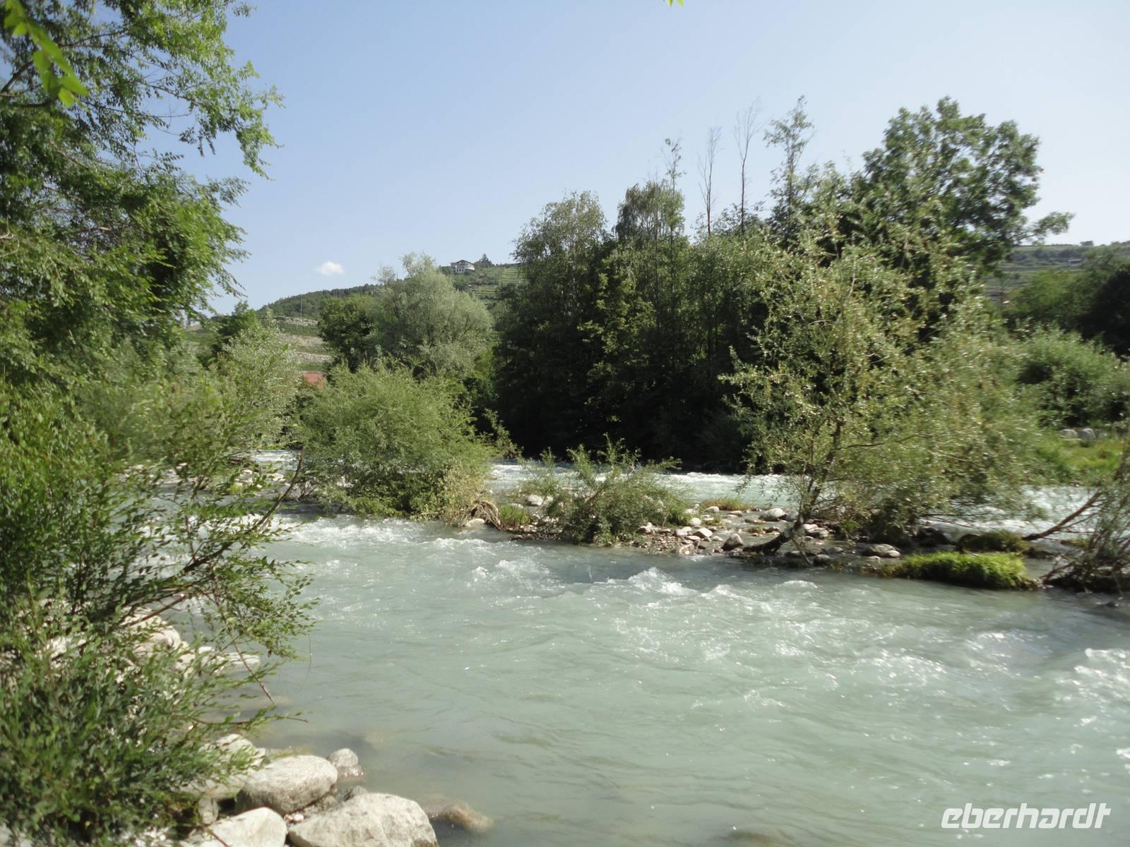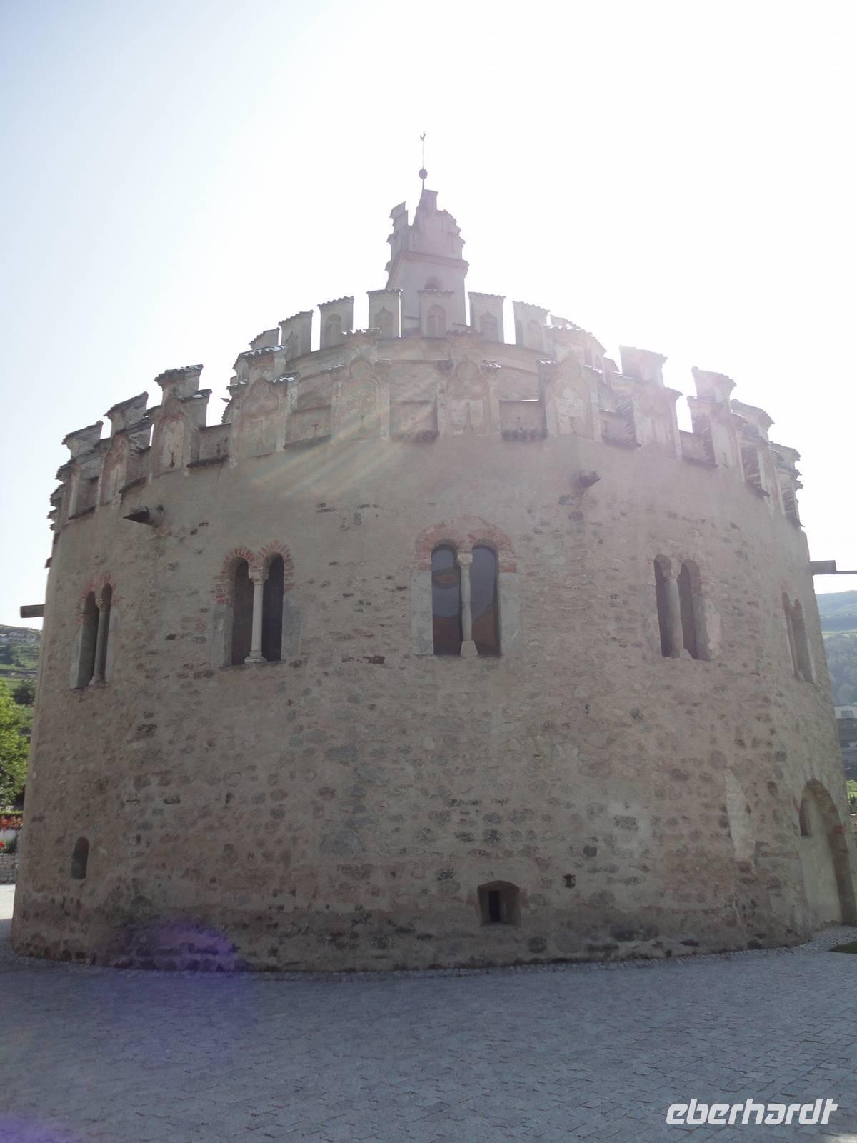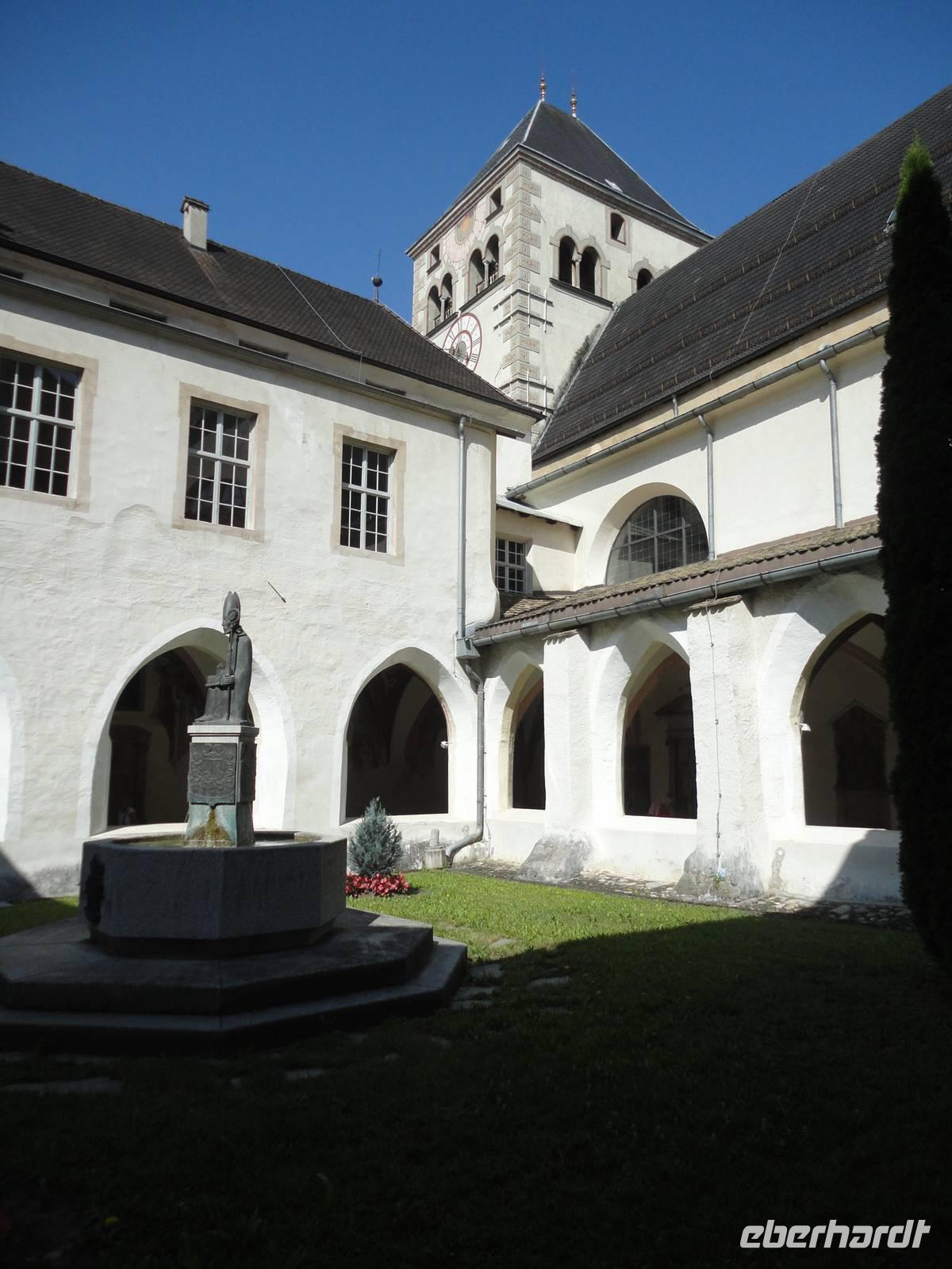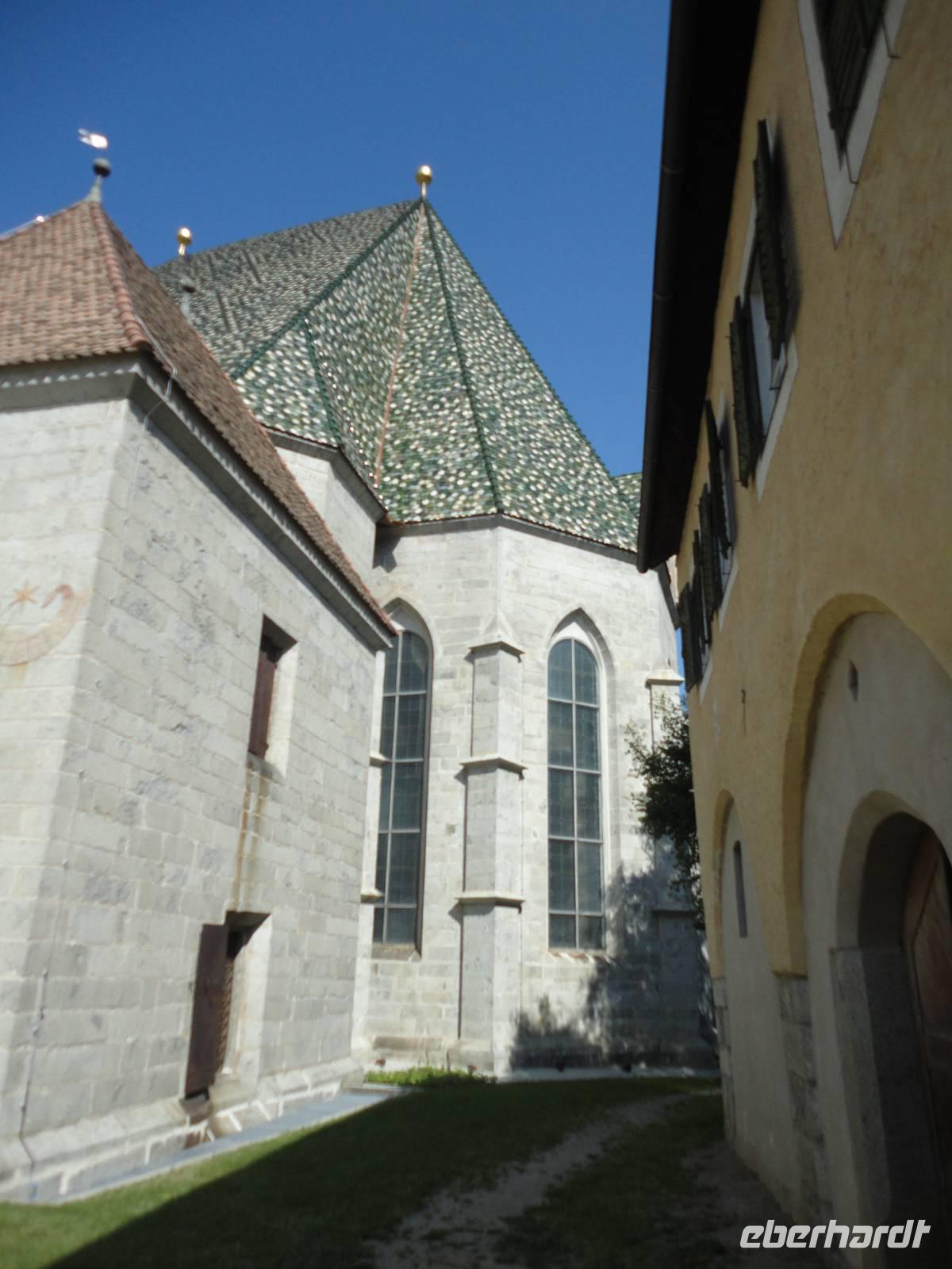 Unseren 2. Urlaubstag begannen wir entspannt gegen halb 8 beim Frühstück. Die Auswahl war erneut überwältigend, für manch einen zu viel am Morgen - wo das Köpfl noch ein wenig schläft. Aber nachdem wir auch unseren geliebten Kaffee oder Tee auf den Tischen erblickt hatten, stärkten wir uns mit den tollsten Leckerbissen. Vor allem das frische Obst bot einen herrlichen Anblick und hat genau so lecker geschmeckt, wie es aussah. Nachdem Johanna und Sieglinde - unsere örtlichen Reiseleiterinnen - gut und munter in Bruneck angekommen sind, machten wir uns voller Vorfreude auf den heutigen Tag gegen 09:00 Uhr Richtung Brixen auf. Unterwegs legten wir unseren ersten Stopp am Kloster Neustift ein. Die herrliche Landschaft, der reißende Eisack und die wunderschöne Freskenmalerei des Klosters stimmten uns prima ein auf die kommenden Tage. Zwischen 11:00 und 13:00 Uhr zeigte uns Johanna die herrliche Stadt Brixen. Auch hier beeindruckten uns wieder die wunderschönen Fresken, die Architektur und gemütliche Bauweise im Tirol. Das bombastische Wetter und das leckere tiroler Schmauserl war das i-Tüpfelchen auf einem gelungenen Vormittag. Nach der kurzen Weiterfahrt nach Mühlbach und einer kleinen „Zwangspause" für die Wanderer - da wir Radfahrer ja unsere Räder aus dem Eberhardt-Anhänger entladen mussten - starteten wir fröhlich in unsere Radtour. Man muss schon zugeben, einige Meter haben uns ganz schön gefordert, aber wir haben uns nicht immer vom steilen Anstieg überwältigen lassen.