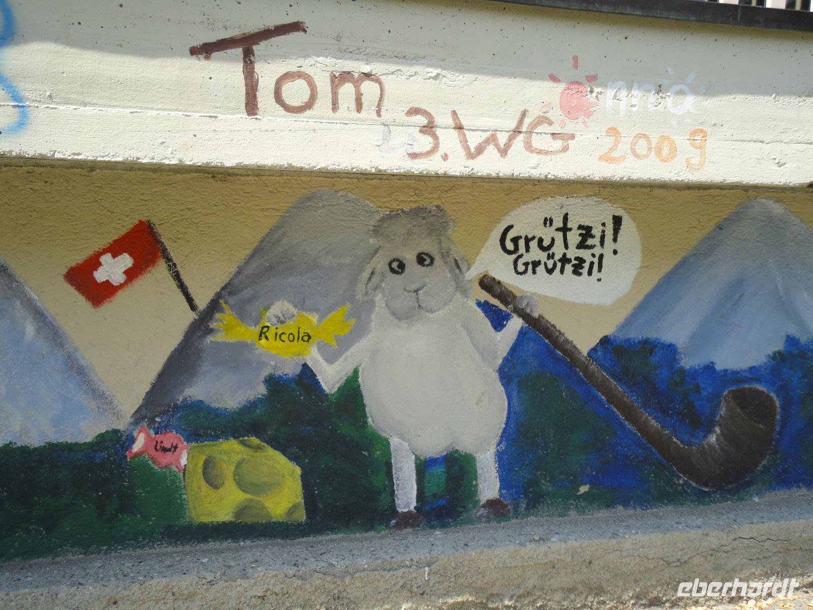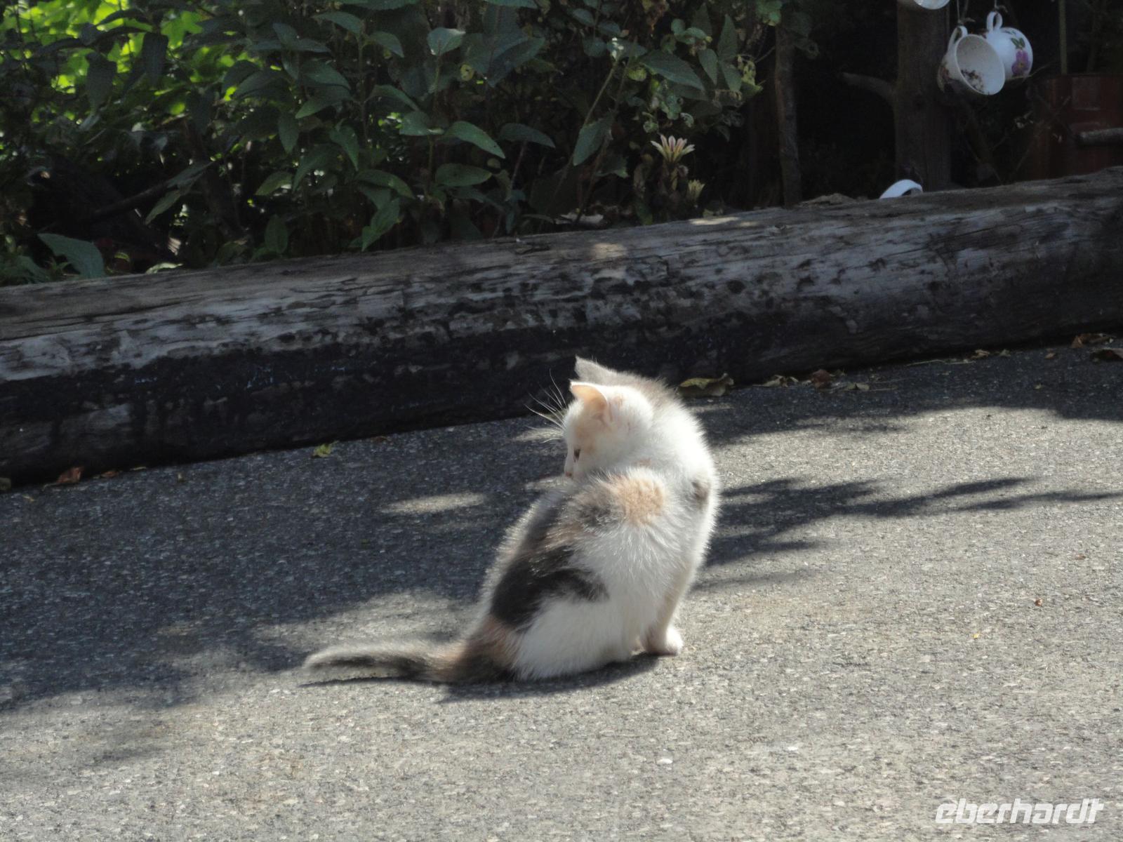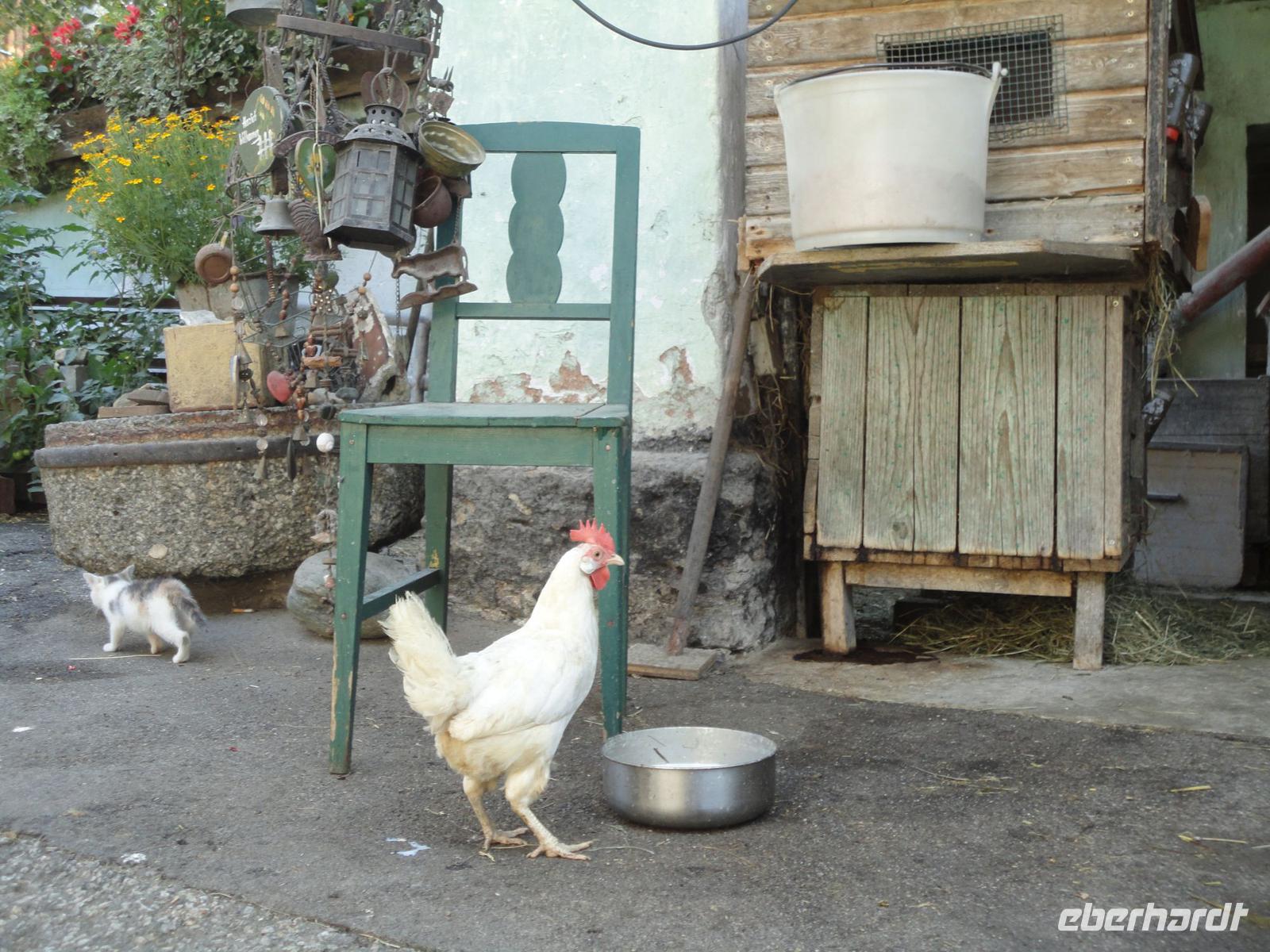 Kurz bevor uns der letzte Bus 18:10 Uhr zurückbringen sollte, boten uns kleine Zicklein und gefräßige Lamas noch witzige Augenblicke und kurze Schreckensmomente. Glücklicherweise wurden wir nicht bespuckt, obwohl wir uns sicher waren, dass eines der beiden Lamas genau dies im Sinn hatte. Der geübte Busfahrer brachte uns sicher durch die Serpentinen zum Parkplatz, wo wir freudig unseren Lutz erwarteten. Wenige Minuten später saßen wir bereits auf der Terrasse der Pension und erwarteten hungrig das Abendessen. Die Reste des üppigen Abendessens ließen wir uns für den morgigen Tag verpacken. Bei Rückblicken und lustigen Gesprächen ließen wir unseren schönen 6. Urlaubstag zufrieden ausklingen und begaben uns in unser Nachtstübl in der Pension Ratz im schönen Kirschentheuer.